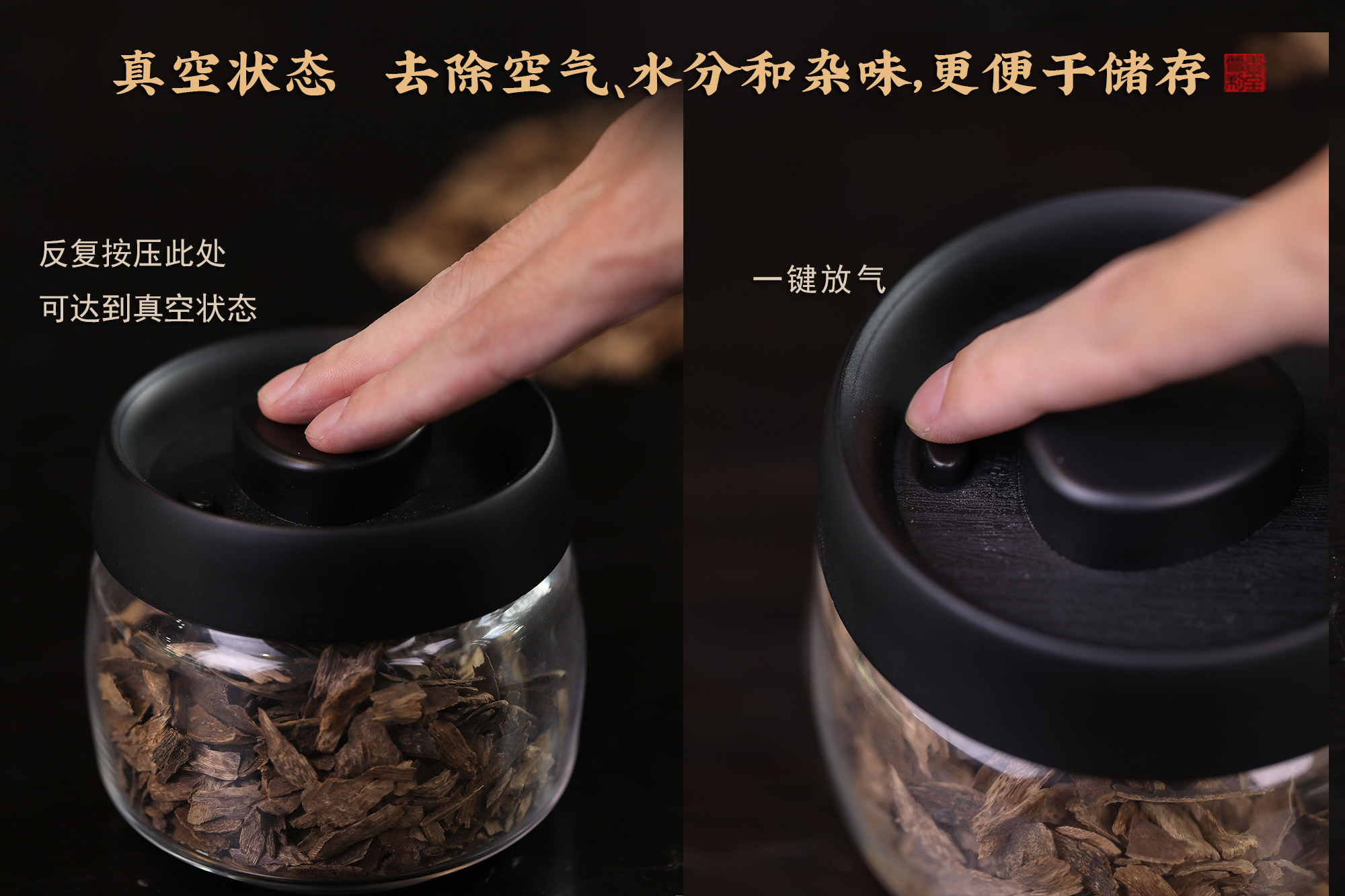 试用装的目的,是为了减少大家的尝试成本,因为很多朋友是第一次体验沉香茶。而大量装更适合香至尊老香友,或者体验过沉香煮水的香友。并且大量装做了更为人性化的设计:反复按压大量装的储存罐,罐体可以呈现真空状态,去除空气、水分和杂味,更便于储存。