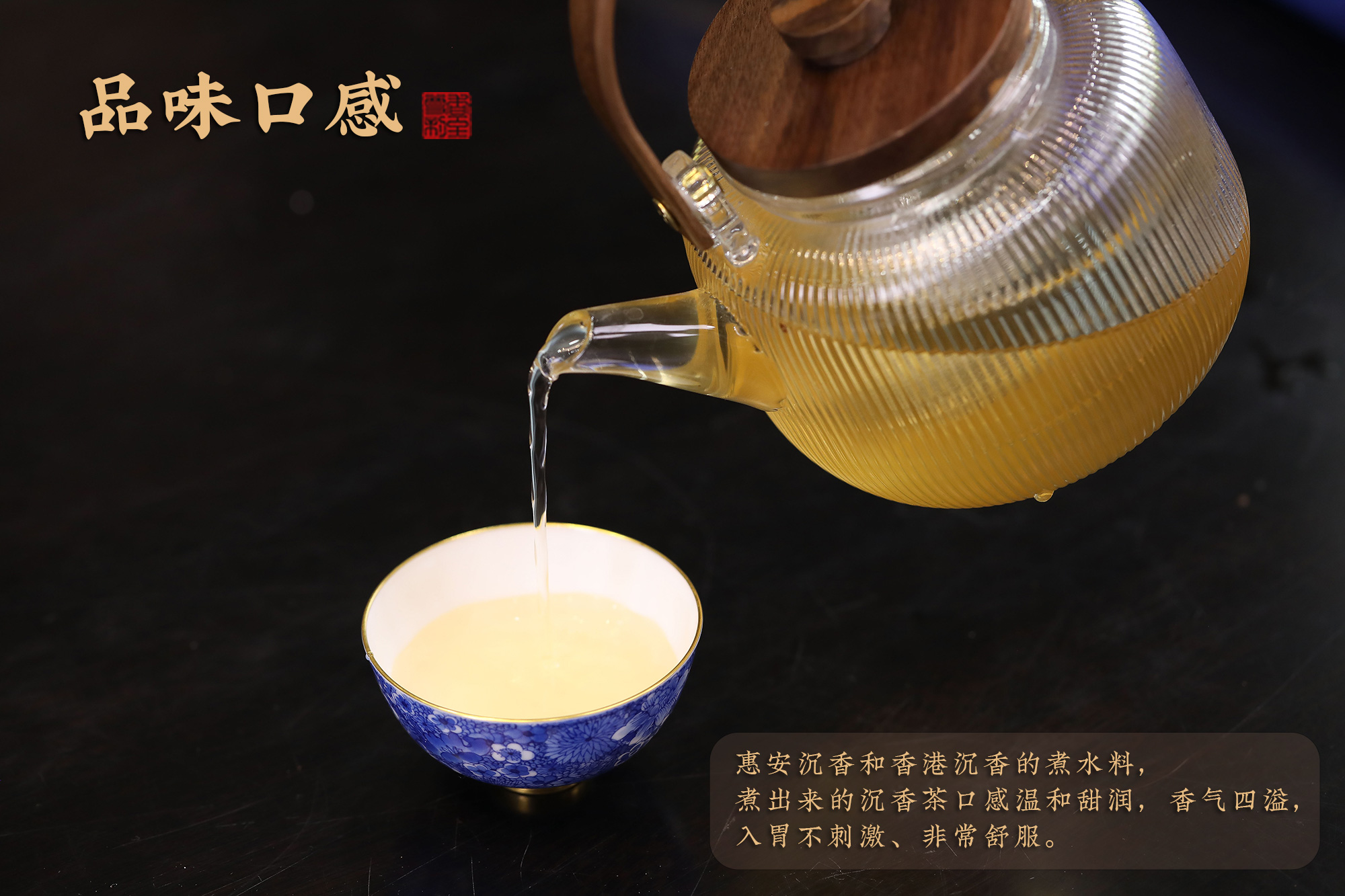 “温煦”里的惠安沉香和香港沉香的煮水料,煮出来的沉香茶口感温和甜润,香气四溢,入胃不刺激、非常舒服,这也正是产品名字“温煦”的由来。我们不把功效当做主要卖点,但长期喝这样的沉香茶,确实对我们身体的很多方面都有很好的调理保健作用,这是我和很多香友们的共同体验。