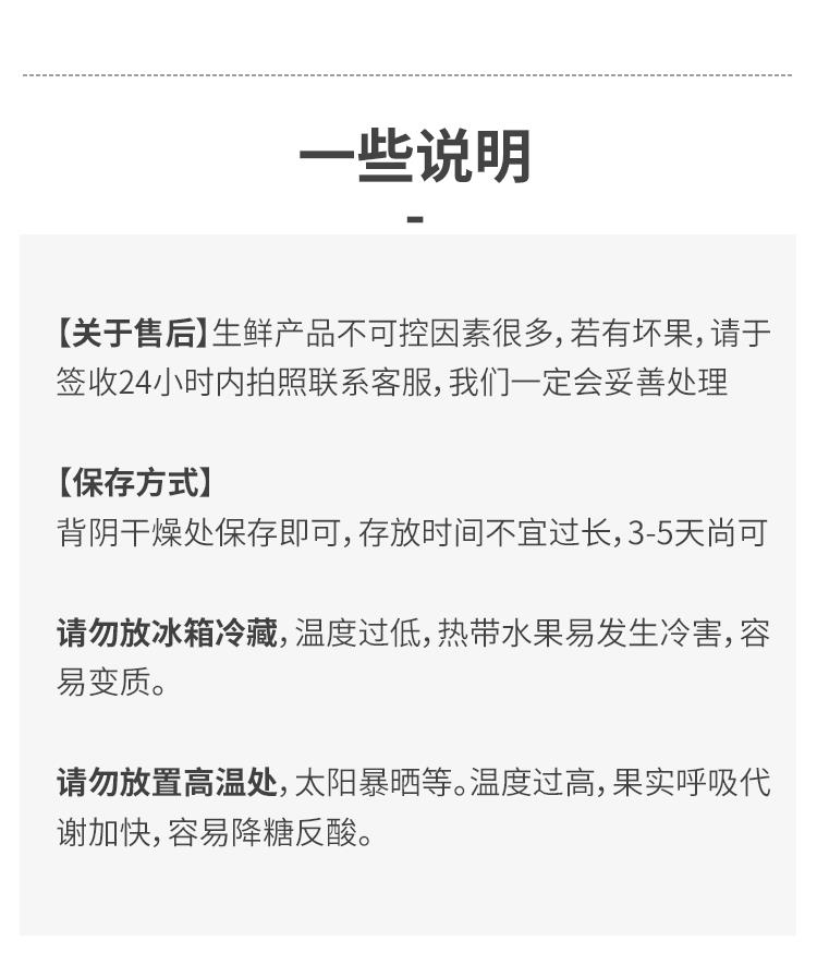 请勿放冰箱冷藏,温度过低,热带水果易发生冷害,容易变质。