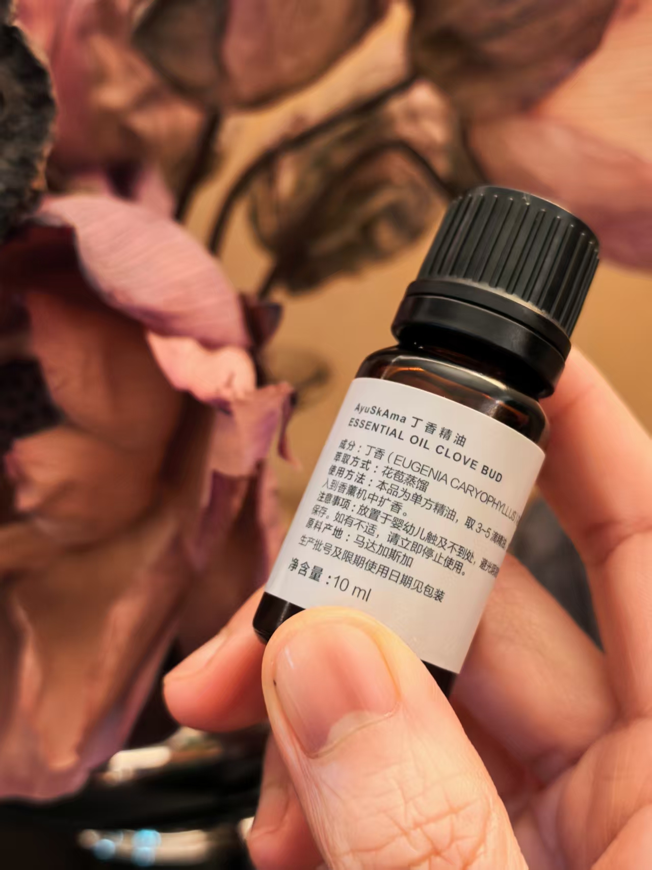 需要特别提醒的是,丁香花苞精油虽属于酚类精油中较温和的品类,但效力依旧强劲,使用时务必严守安全准则,才能让疗愈更安心。接触皮肤时必须稀释,浓度控制在1%-3%之间,避免刺激皮肤与黏膜;孕妇前中期、婴幼儿、癫痫患者需慎用或禁用,高血压、消化道溃疡患者应避免大面积、高浓度使用。同时严禁入眼,不可随意内服,每日使用总量不超过10滴,避免长期高剂量使用带来的健康风险哦!
