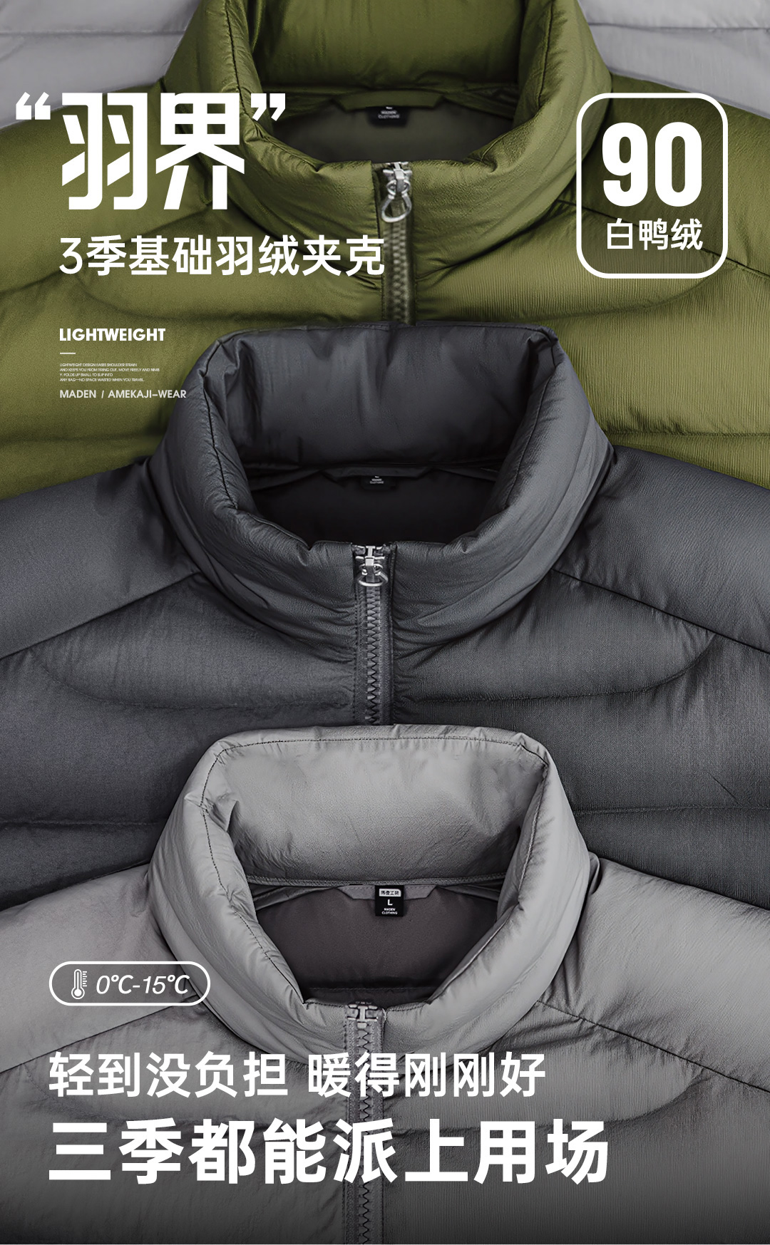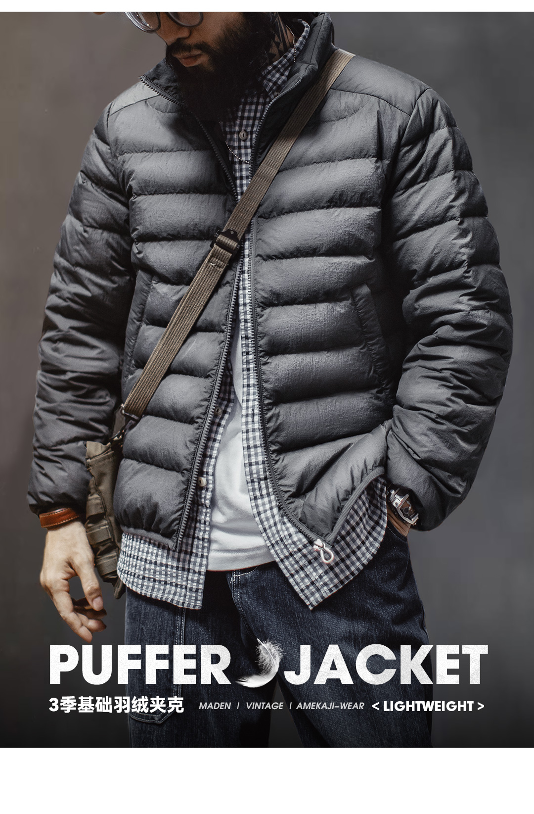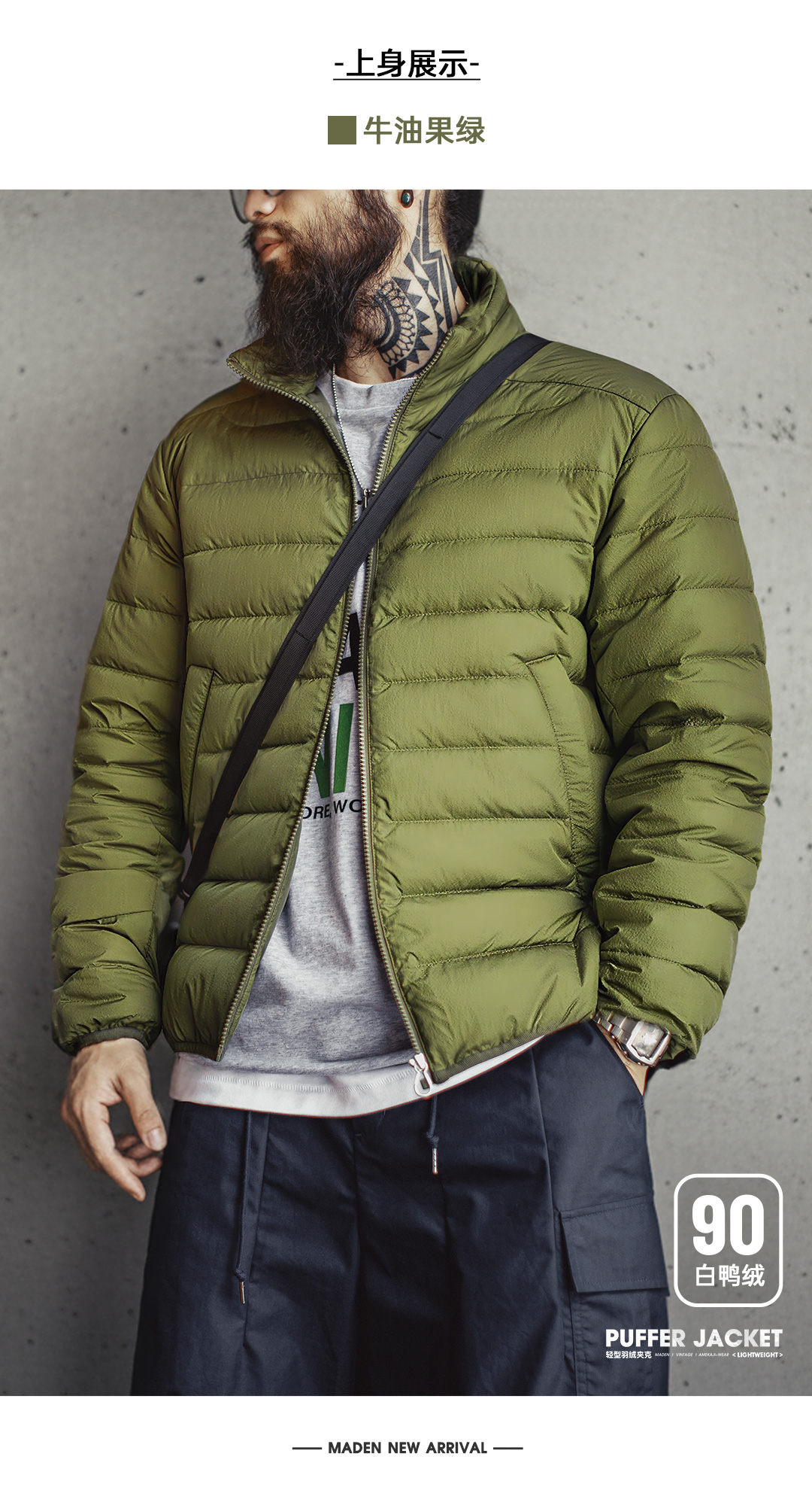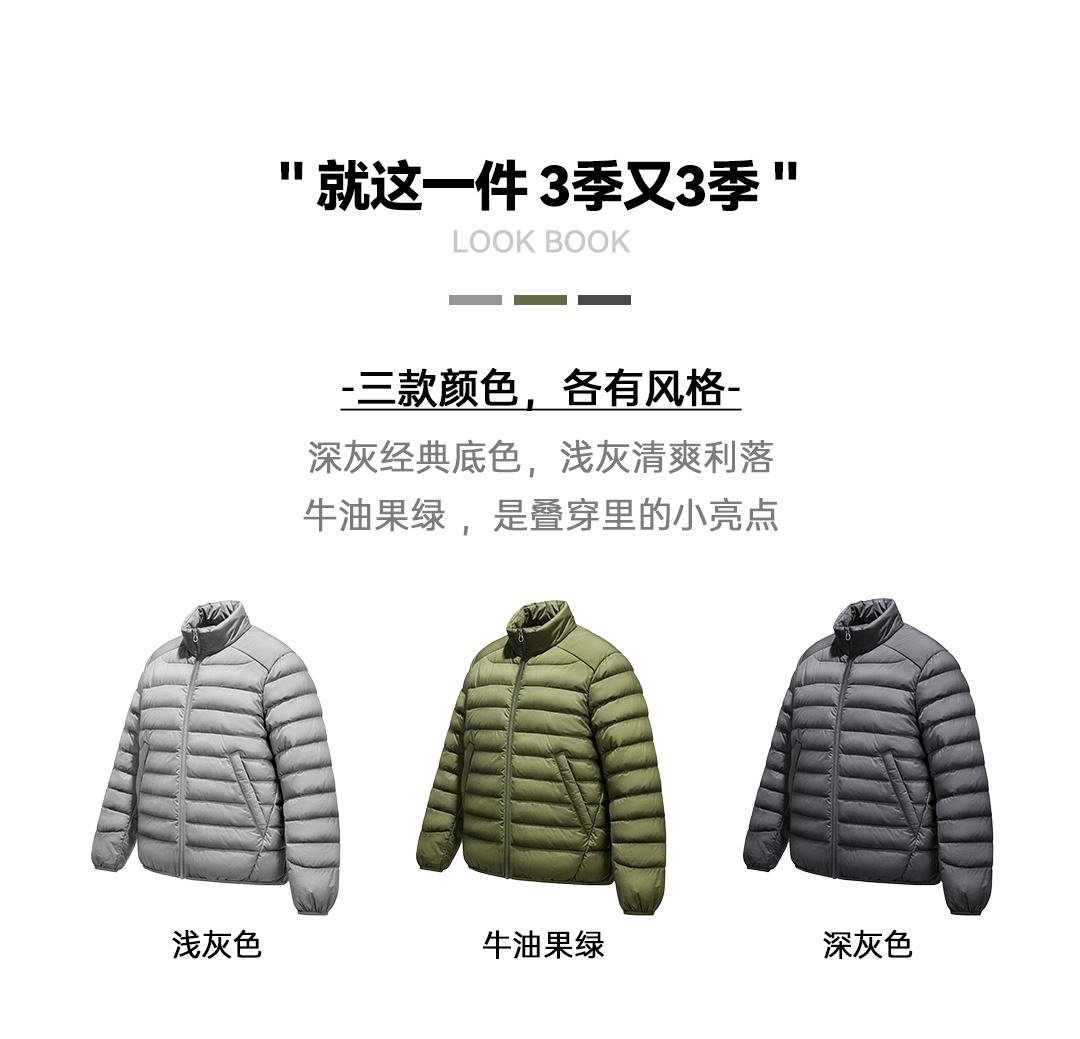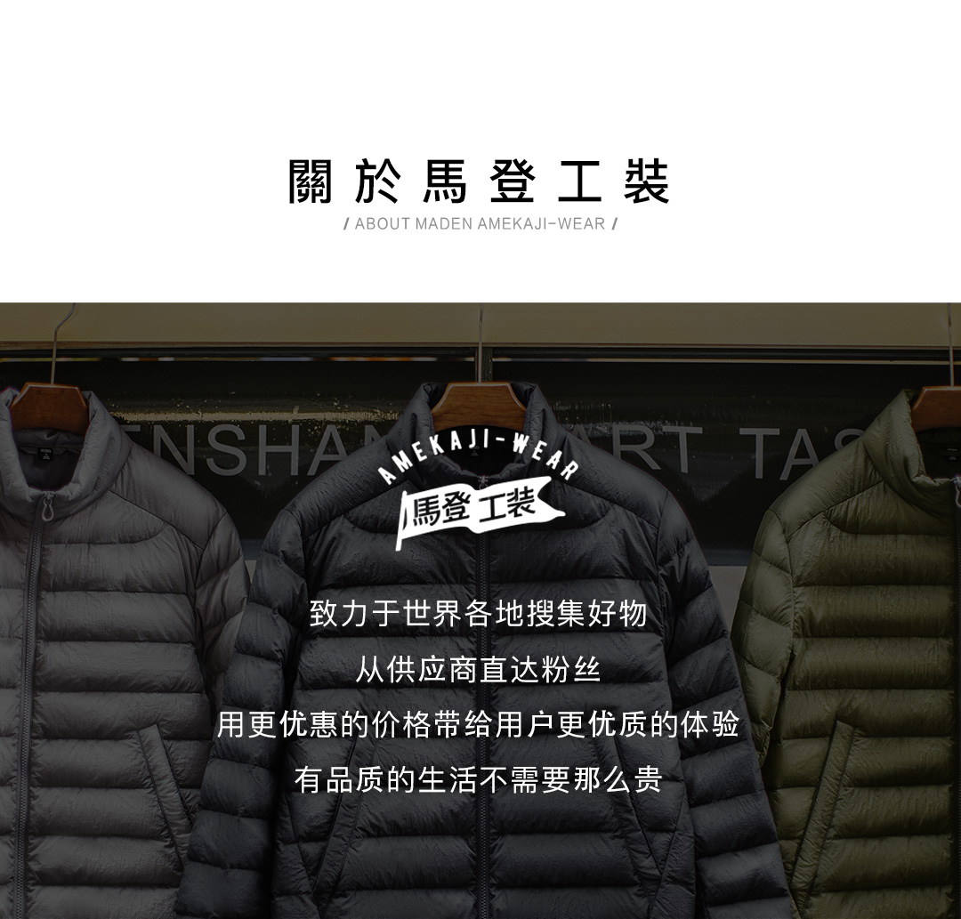 马登工装美式超轻薄排骨白鸭绒羽绒服夹克外套内搭短款内胆男秋冬