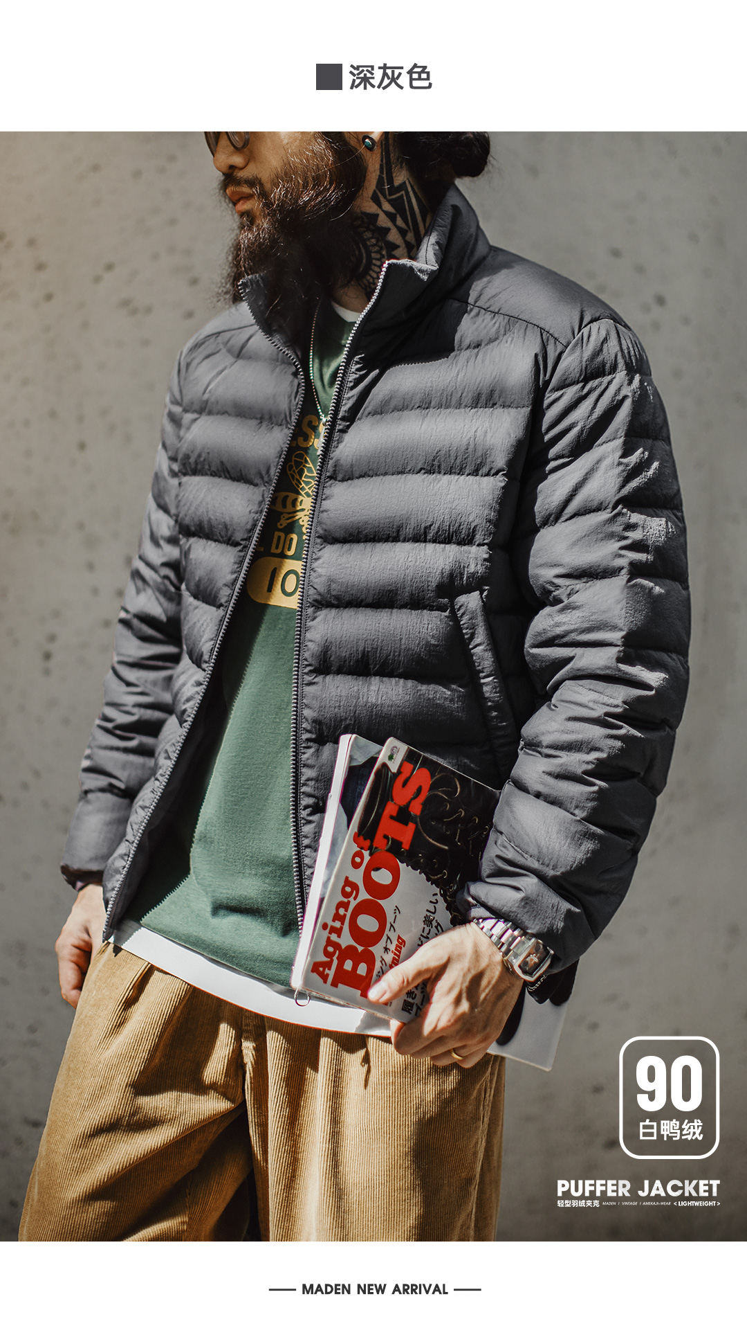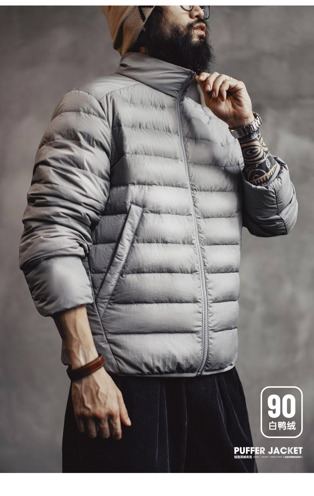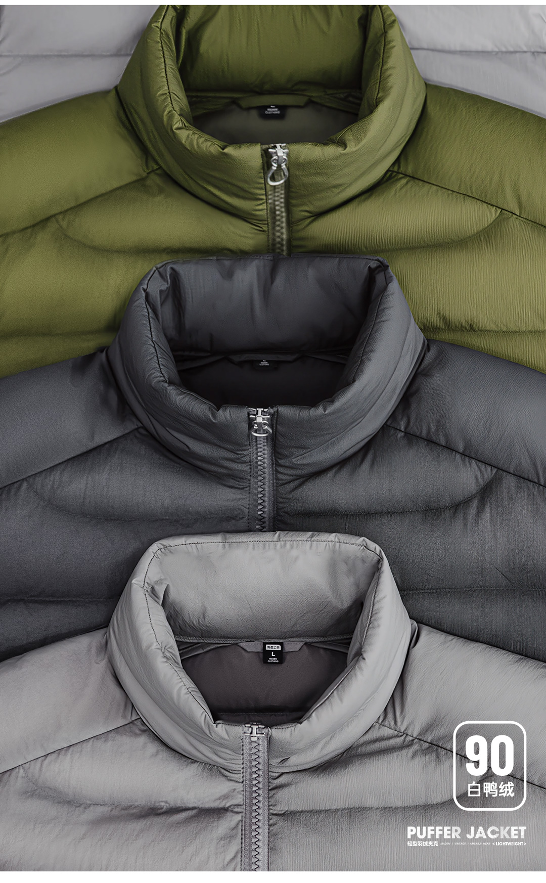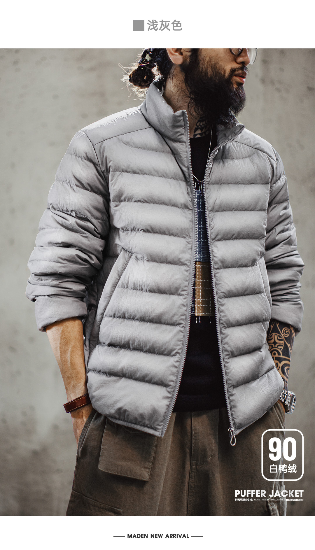 马登工装美式超轻薄排骨白鸭绒羽绒服夹克外套内搭短款内胆男秋冬
