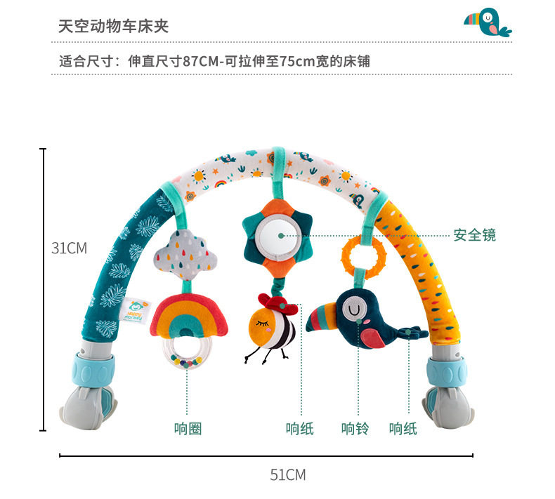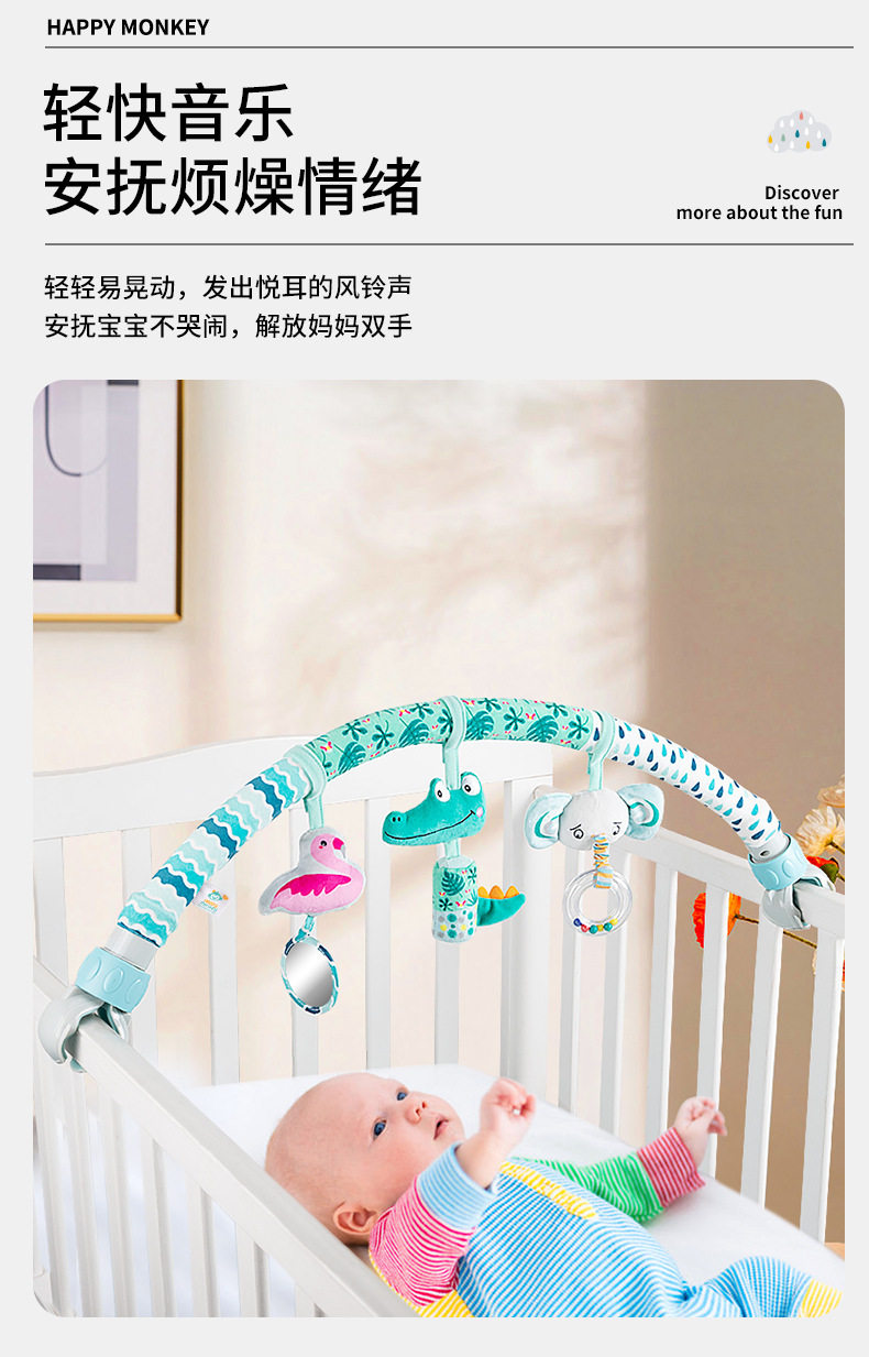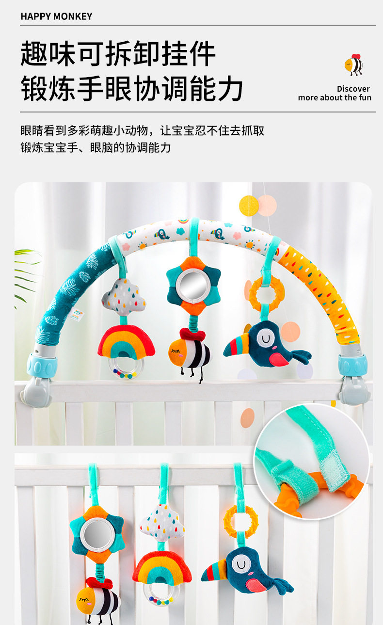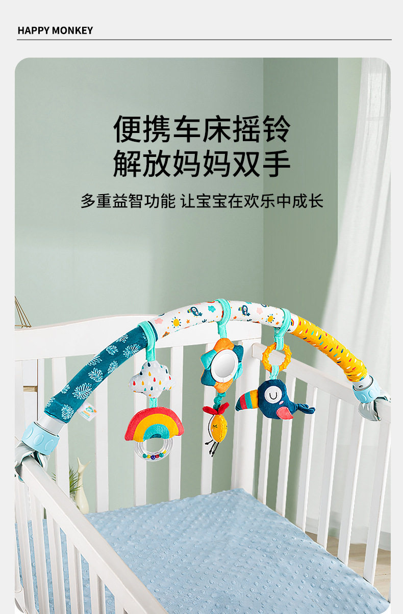 Happy monkey婴儿悬挂式床铃摇铃新生儿床夹车夹挂饰宝宝安抚玩具