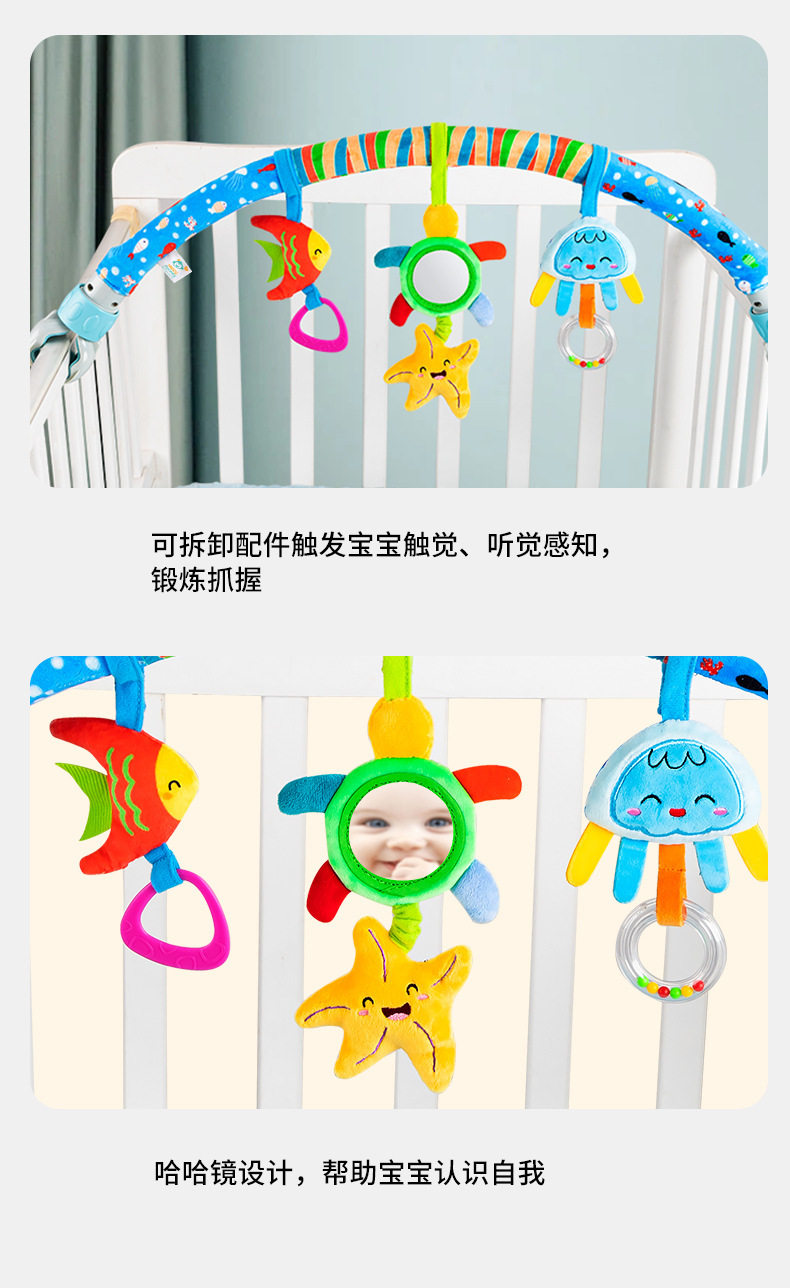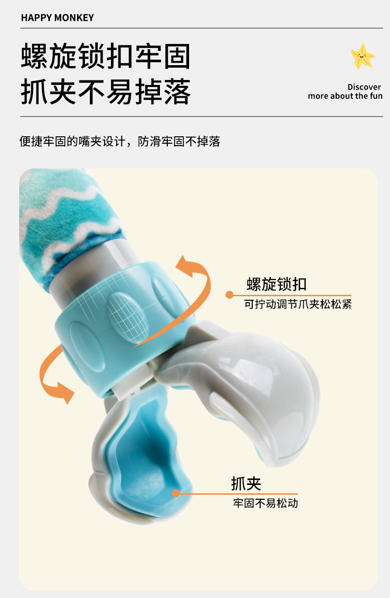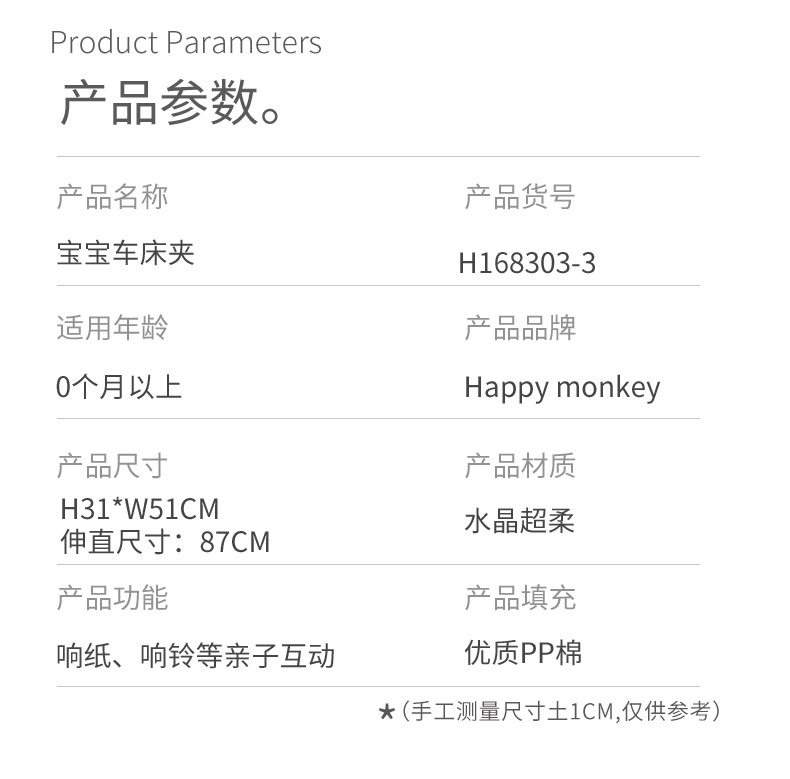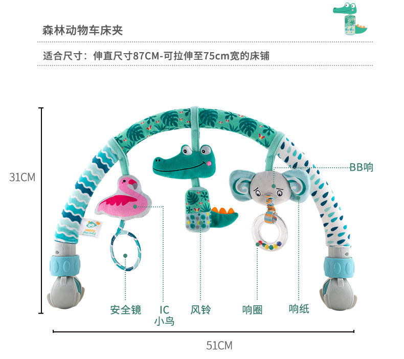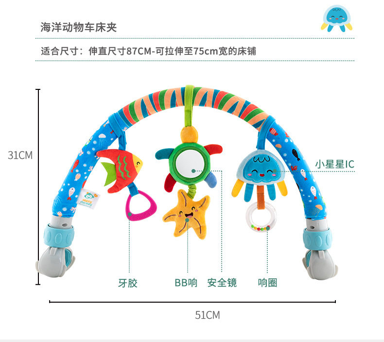 Happy monkey婴儿悬挂式床铃摇铃新生儿床夹车夹挂饰宝宝安抚玩具