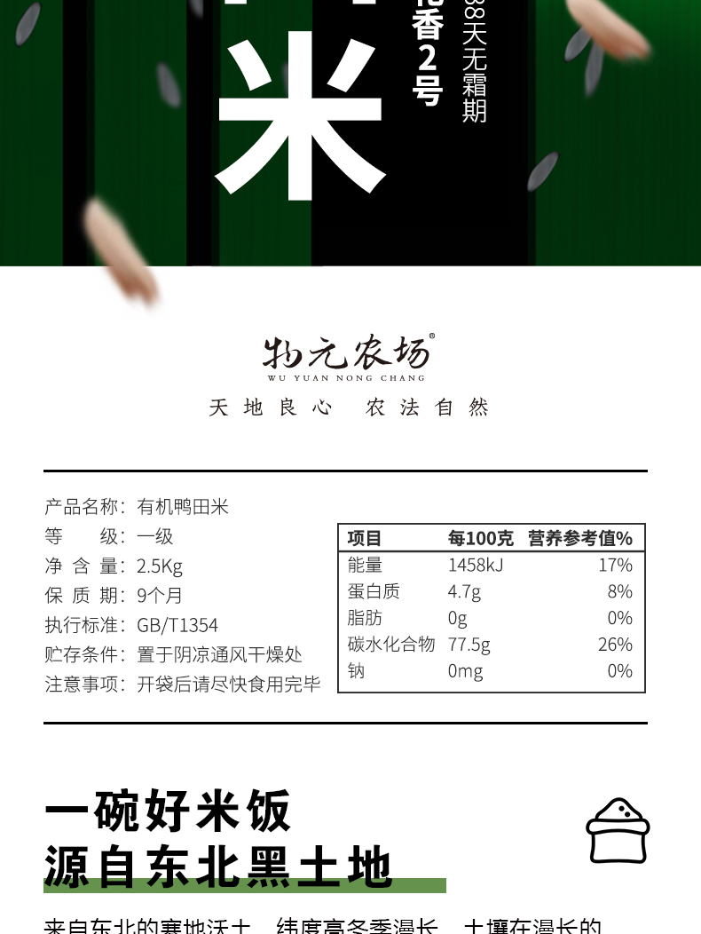 双有机鸭田米|新米现磨脱壳|精品稻花香2号|5斤物元农场大米