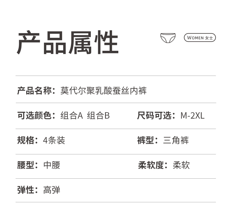 【4条装】雅黛俪莫代尔女士内裤透气舒适含商蚕丝裆底三角裤头