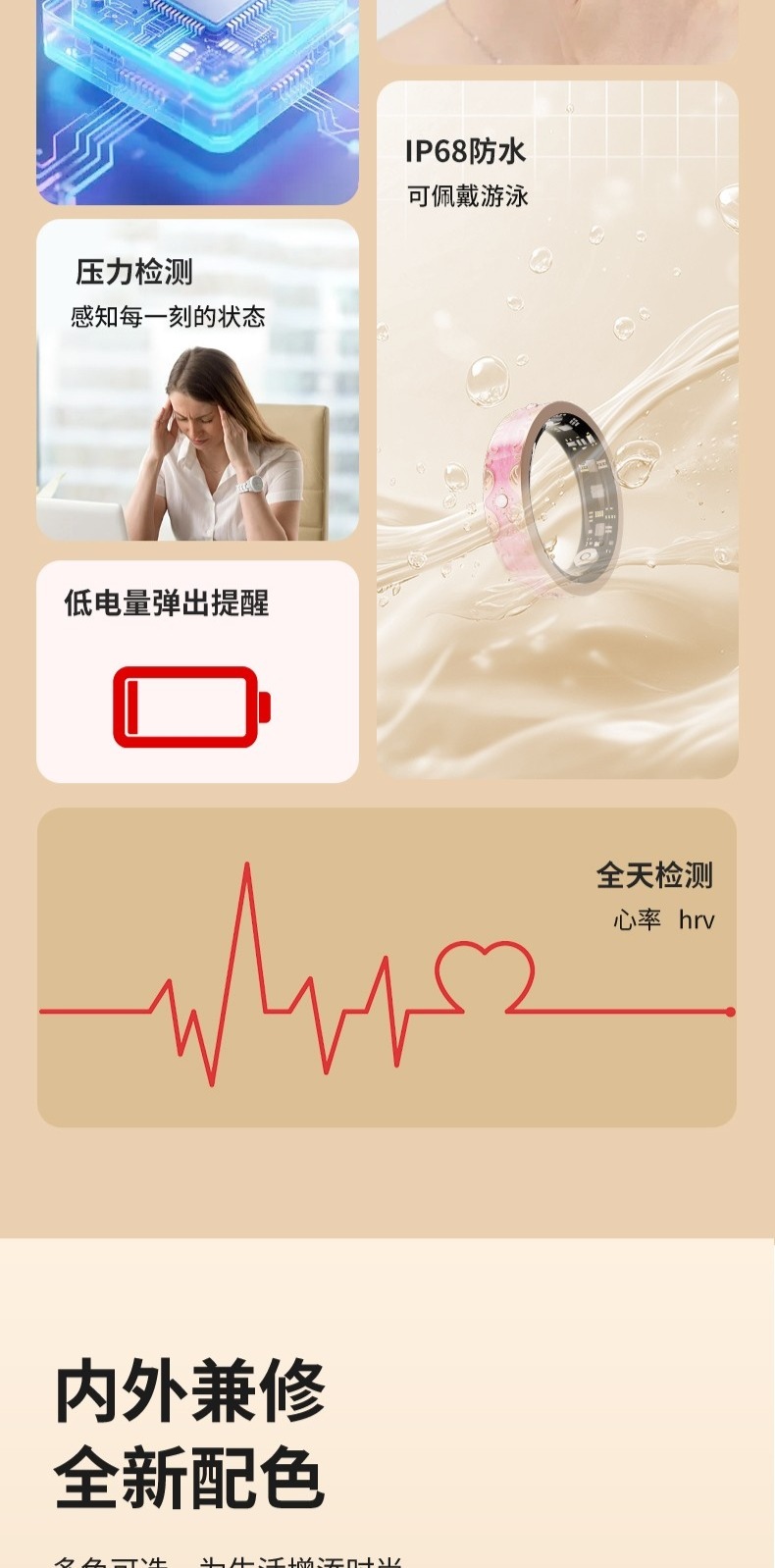 【新品首发】EnergyMo智能监测戒指 彩色款 佩戴无负担 自动监测睡眠 心率监测血氧血压 健康管理