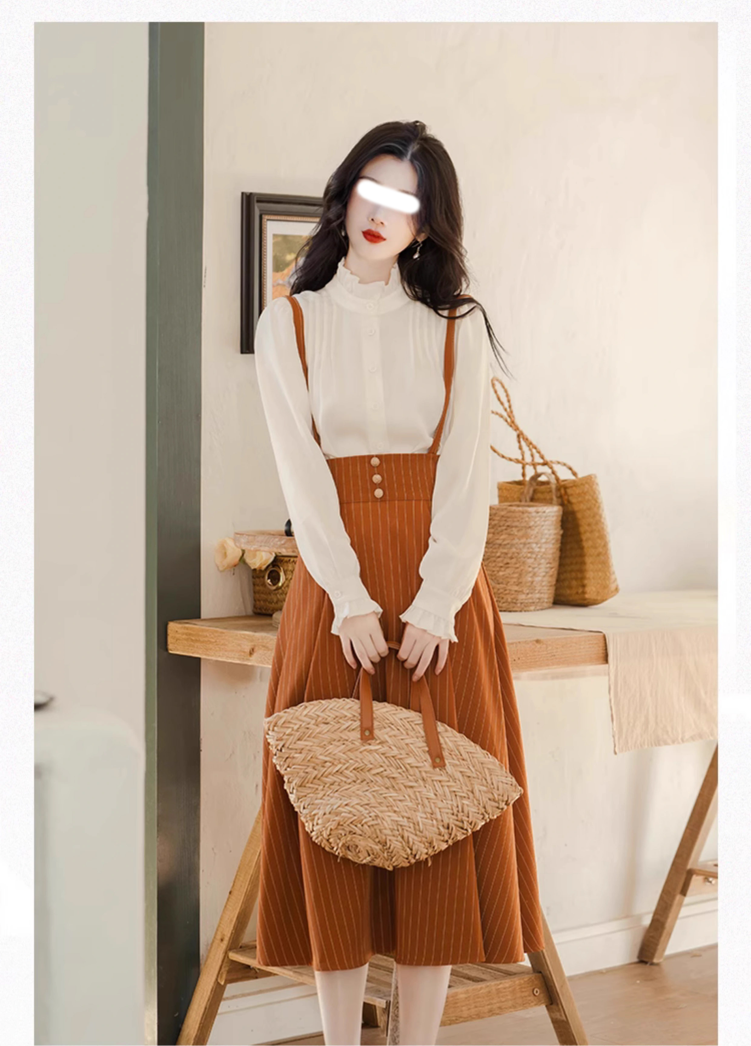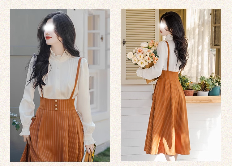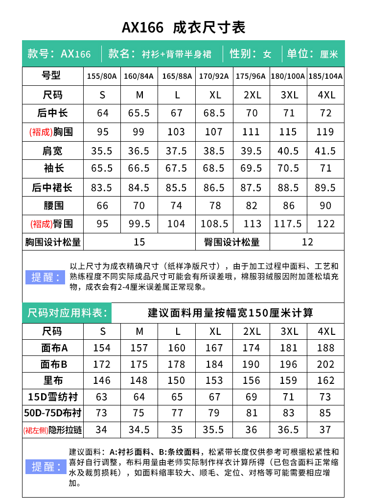 裁缝学苑AX166 新款法式背带半身裙纸样衬衫上衣套装女装版型打版