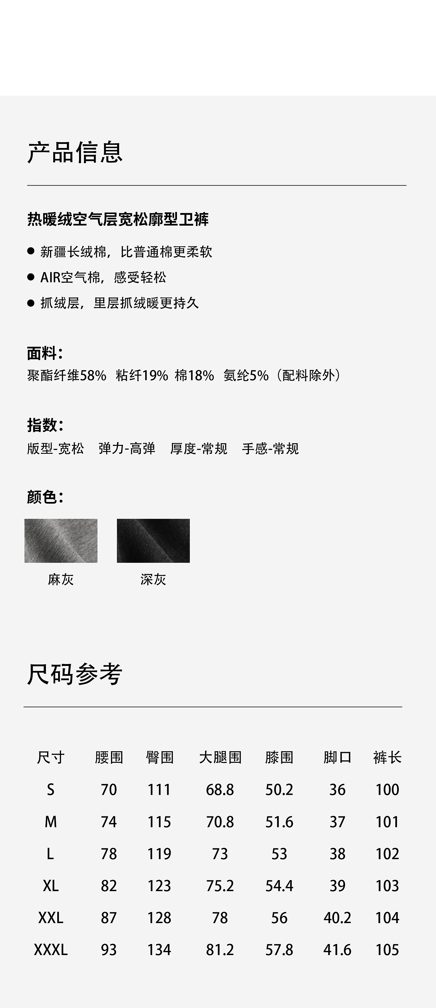 棉仓366818010-热暖绒空气层宽松廓型卫裤