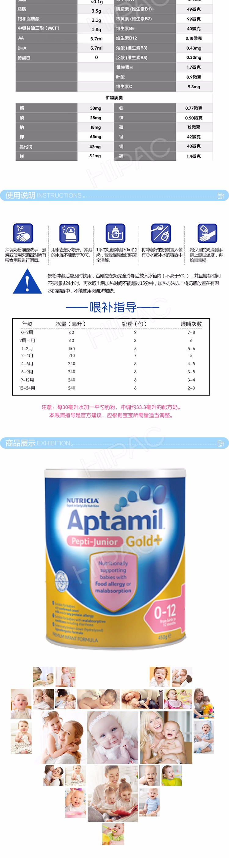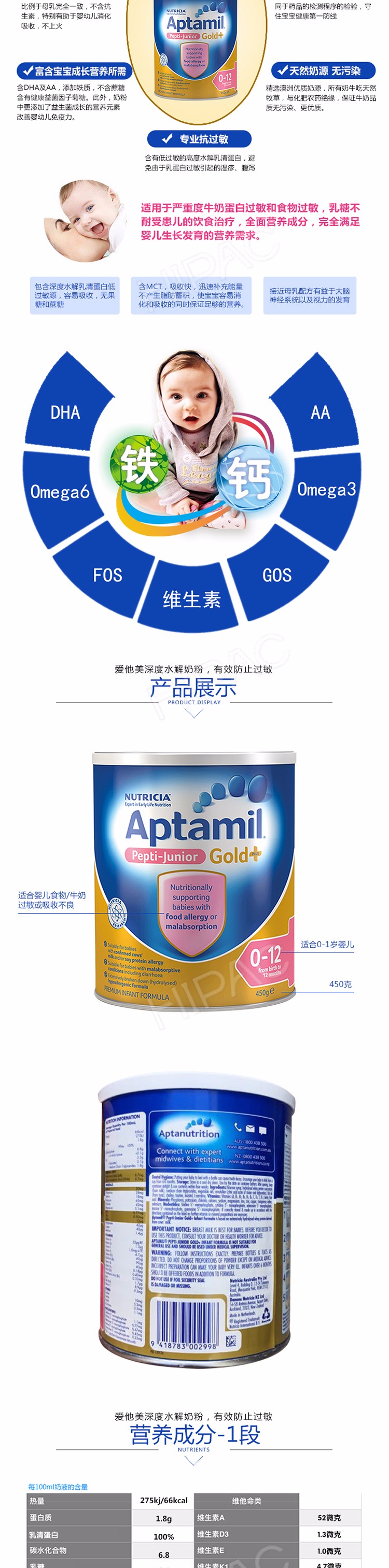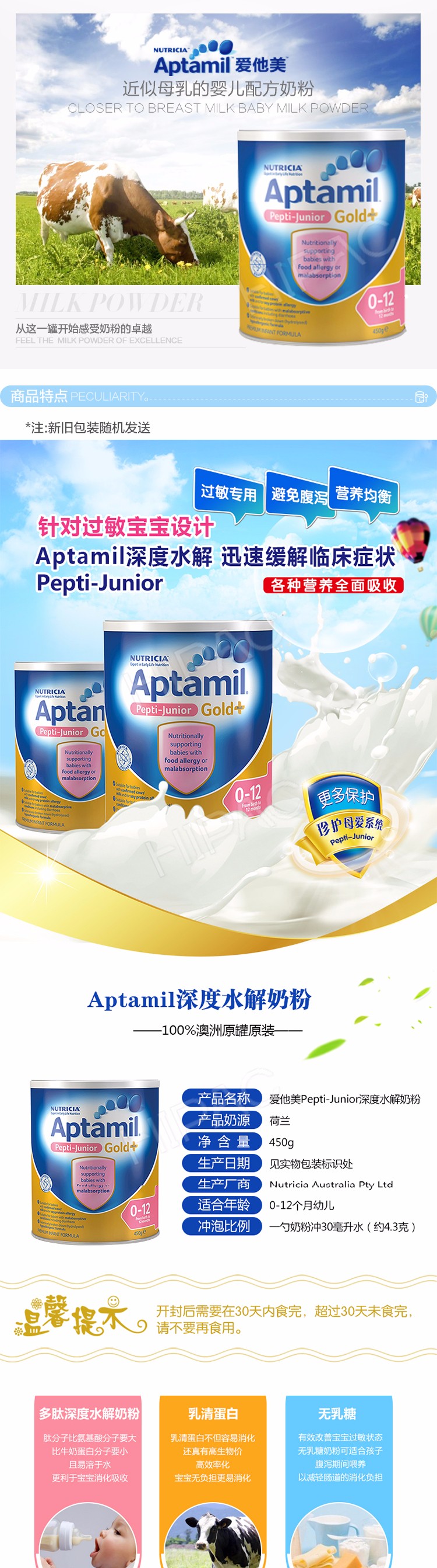 【保税区包邮直发】澳洲 爱他美深度水解奶粉PEPTI 450g