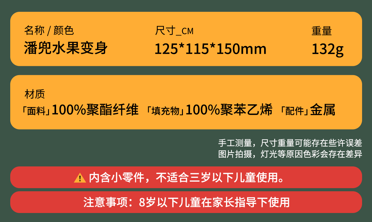 熊猫屋PANDAHOUSE 潘兜水果变身毛绒公仔 送纸袋
