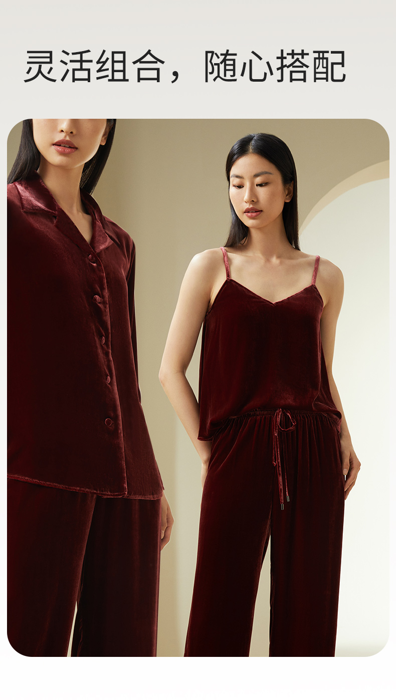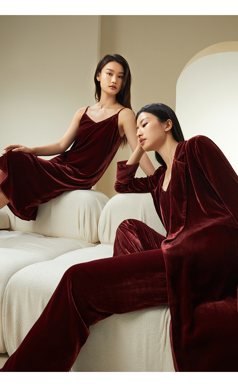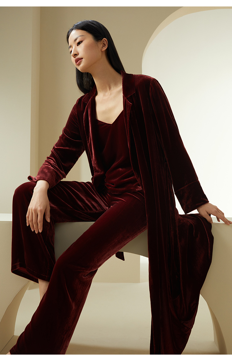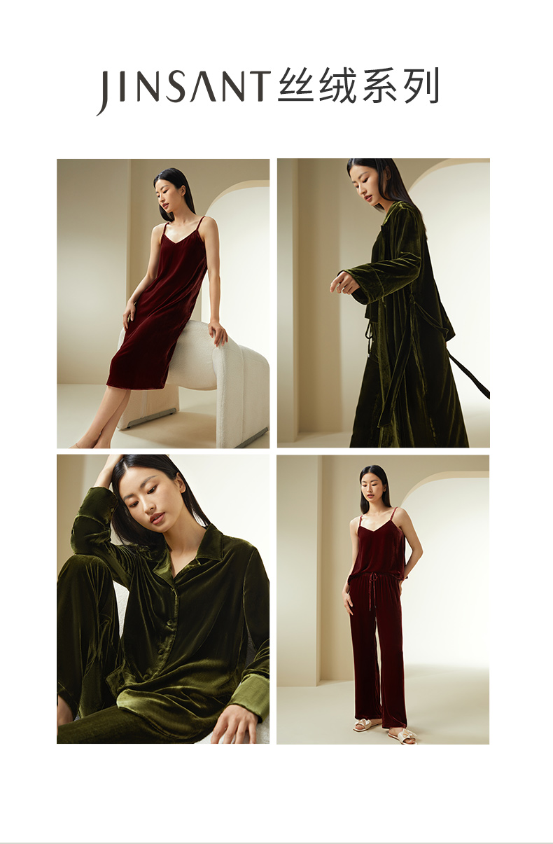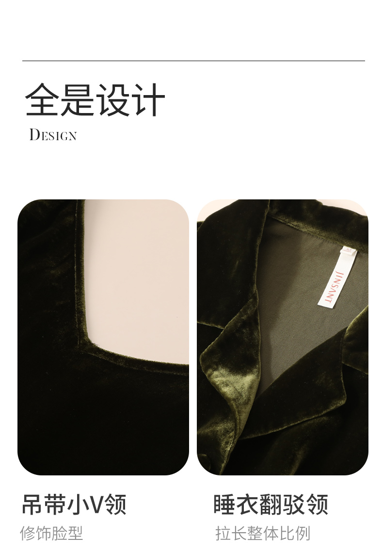 【自带高光桑蚕丝丝绒】金三塔简约时尚客外穿真丝绒家居服套女睡衣(限价款) YSFDD701