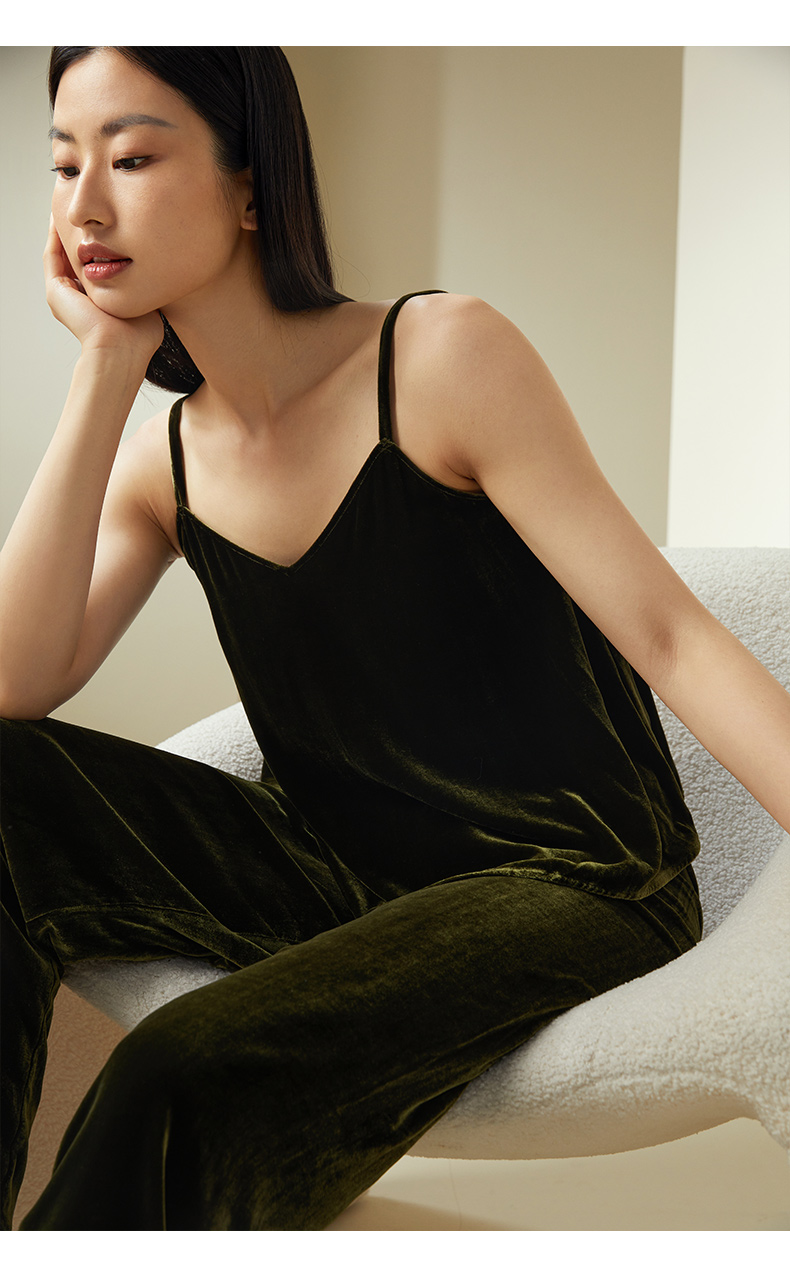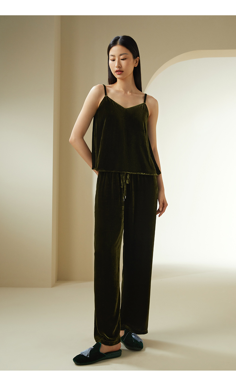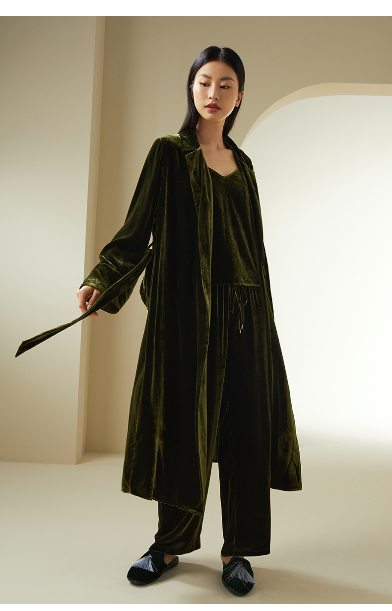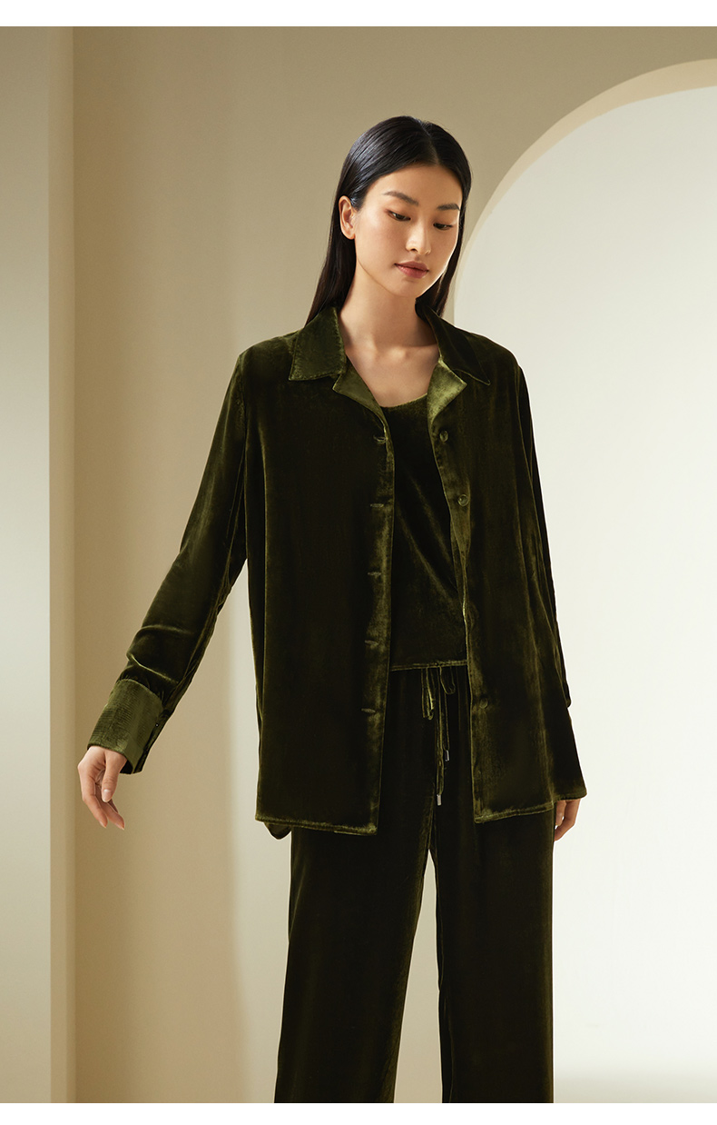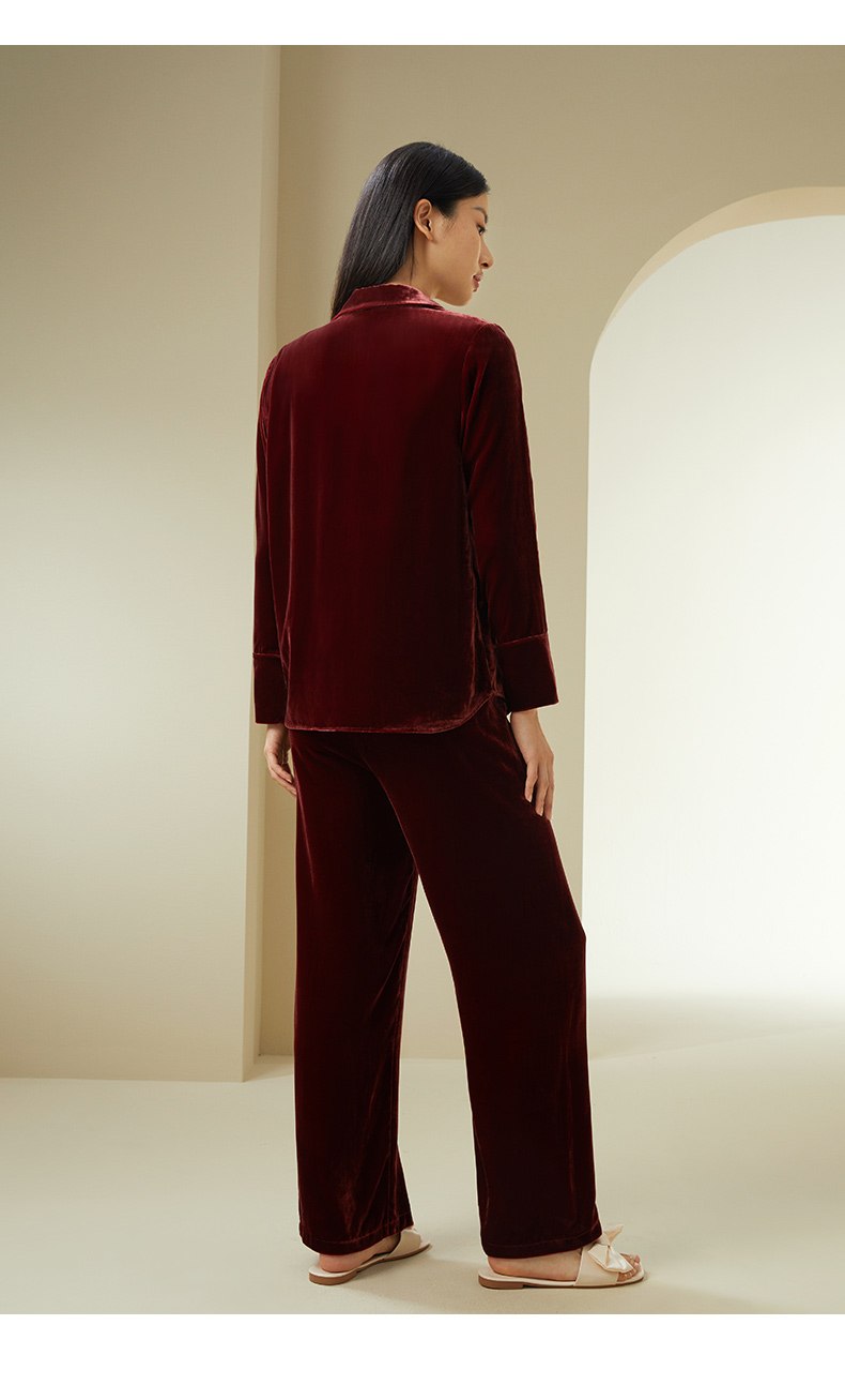 【自带高光桑蚕丝丝绒】金三塔简约时尚客外穿真丝绒家居服套女睡衣(限价款) YSFDD701