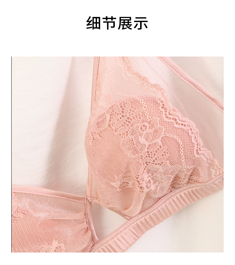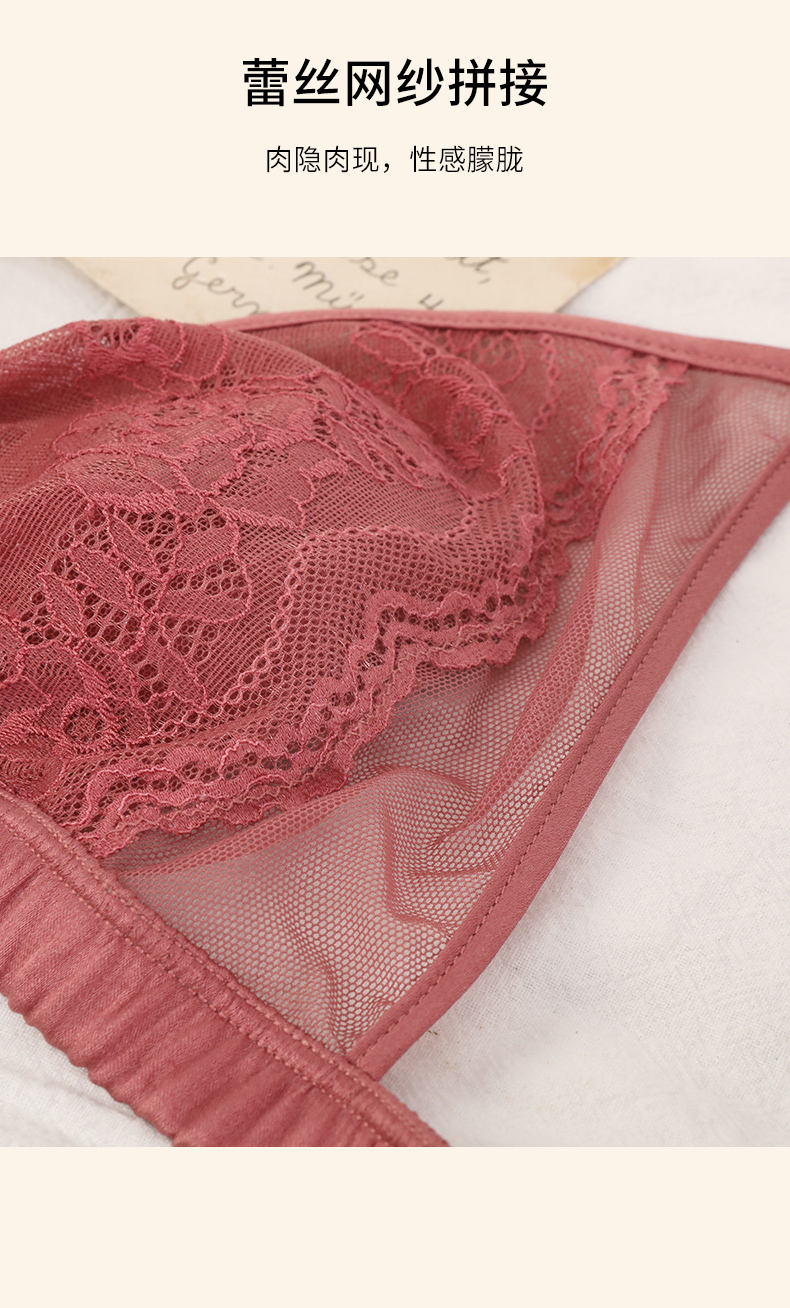 金三塔浪漫摇曳法式蕾丝三角杯内衣女性感镂空鸡心真丝文胸套装 NZFBD399