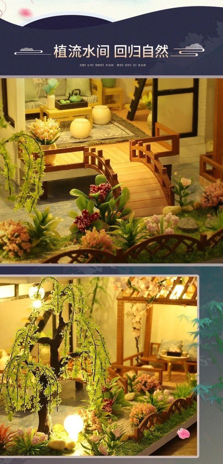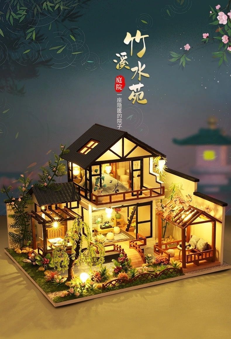 diy小屋国风中式庭院手工制作送闺蜜生日礼物创意玩具情人节礼物