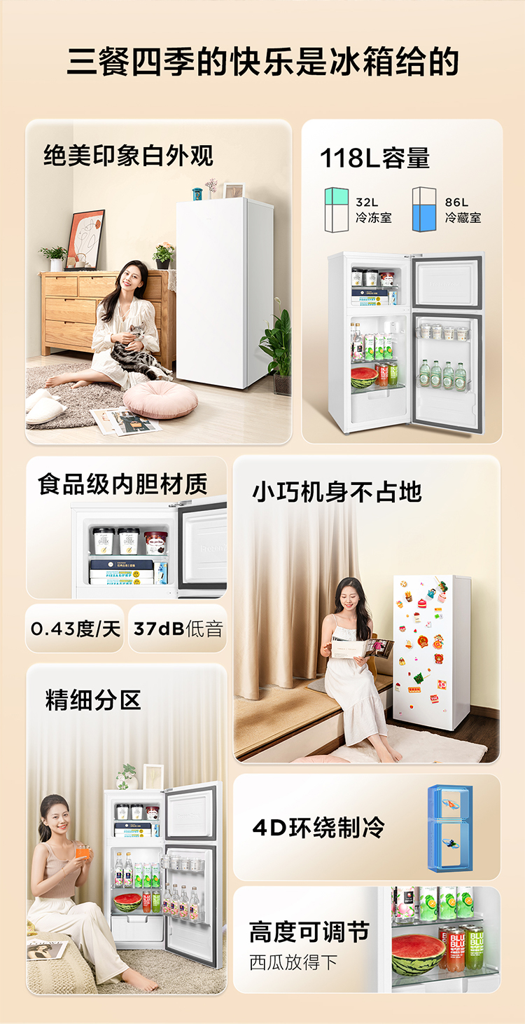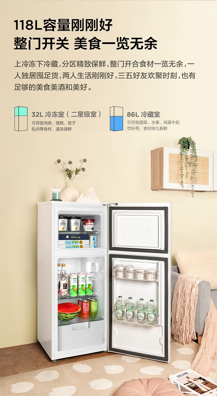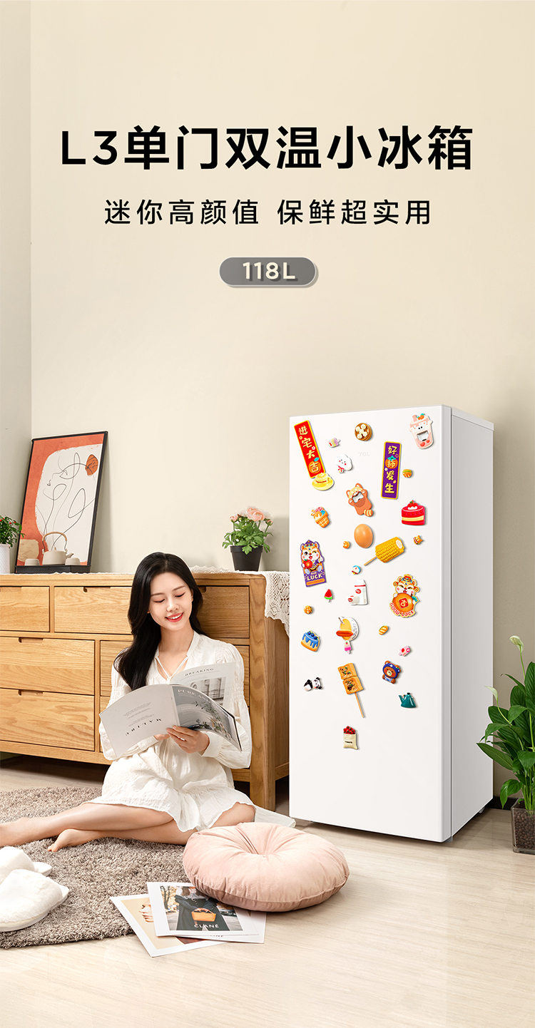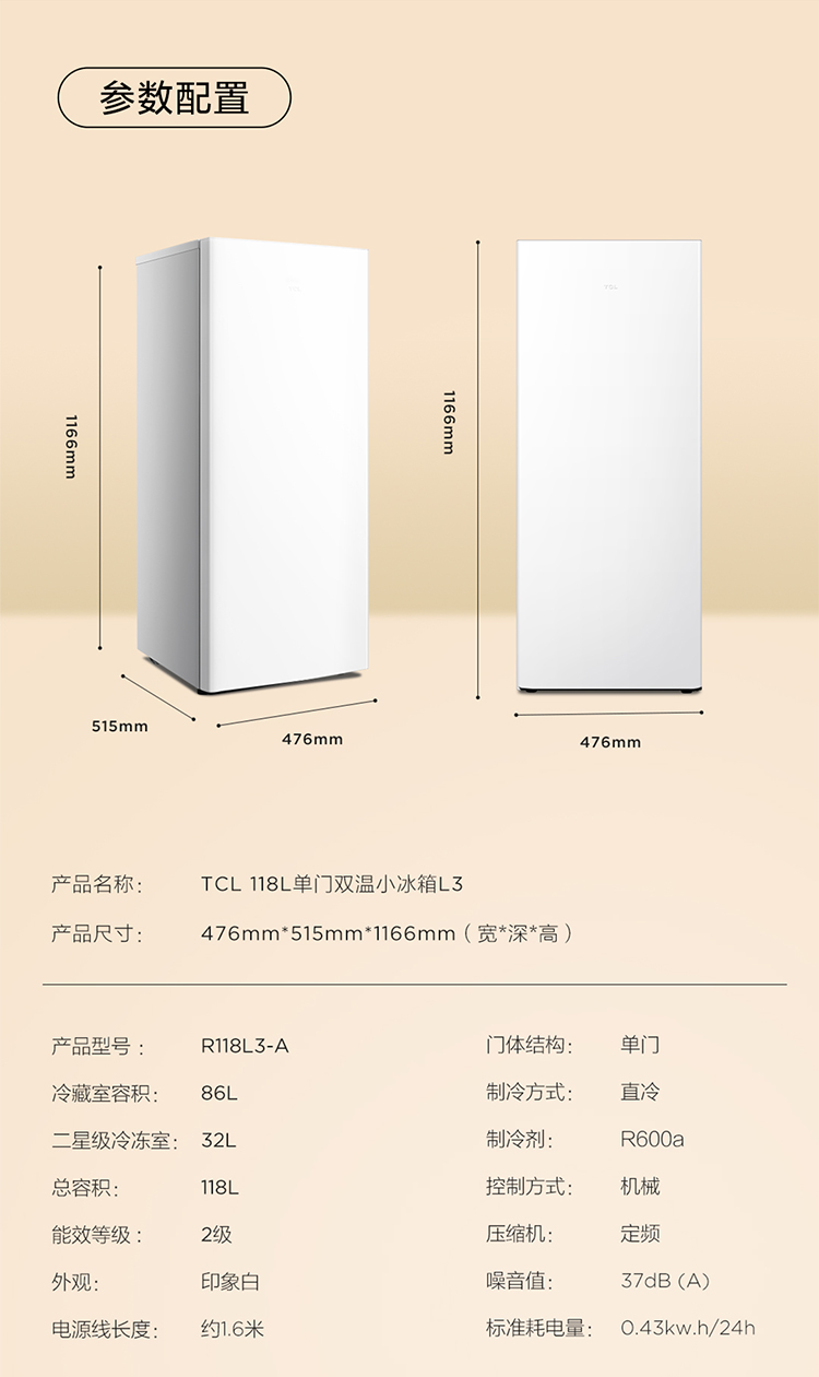 【TCL冰箱】TCL 118升L3 单门双温家用白色小冰箱节能低噪租房电冰箱 R118L3-A