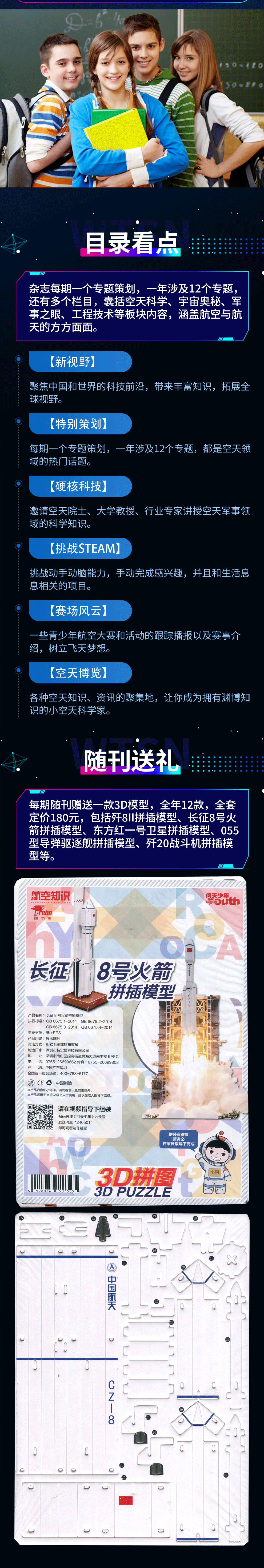 【杂志】问天少年杂志2026年刊12期订阅,青少年航空航天军事科普,赠12个拼图模型+随机徽章1个