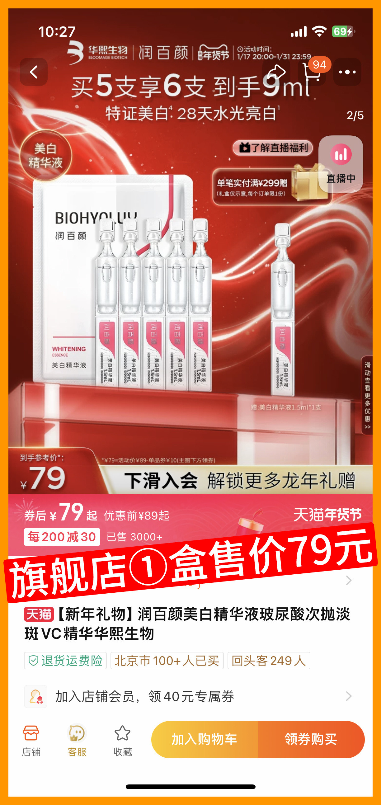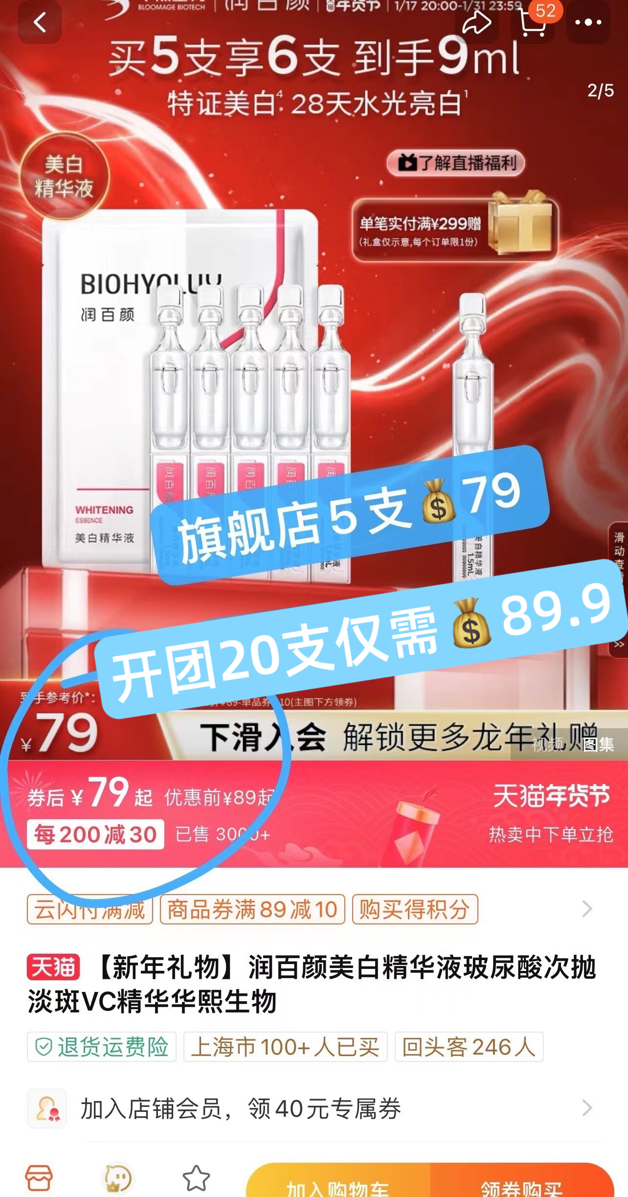 润百颜美白次抛精华液,1.5ml*5支/袋,89.9元到手4袋(共计20支)
