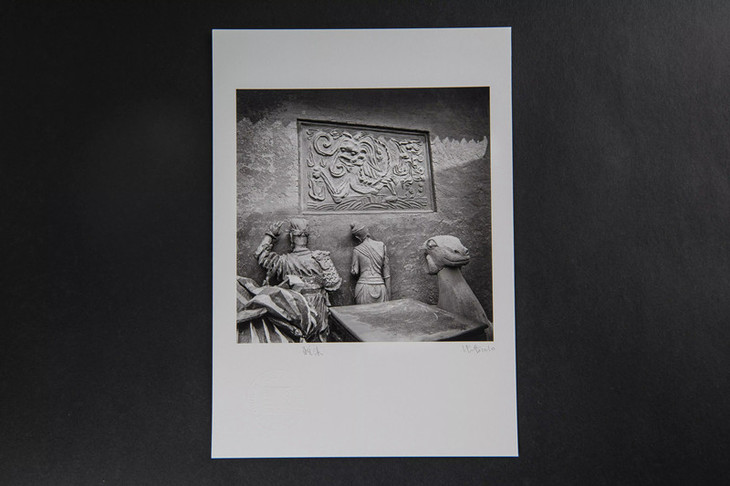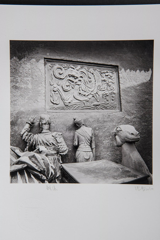 此作品是60名家作品中的其中之一,创作于2010年。本作品出自著名摄影师张晋,这是他的代表作之一,他的影像一向素净、简洁、有份难得的雅致,看似静默却透着力量,画面气质迥异非常。画面中的雕塑背对镜头,静默着,看似无声无息、却又让人感觉暗潮涌动。他认为"曾经涌现过的文明会以一种秘密的方式传递到当地人的信念里",影像宁静而富有大历史里蕴涵的人文诗意。