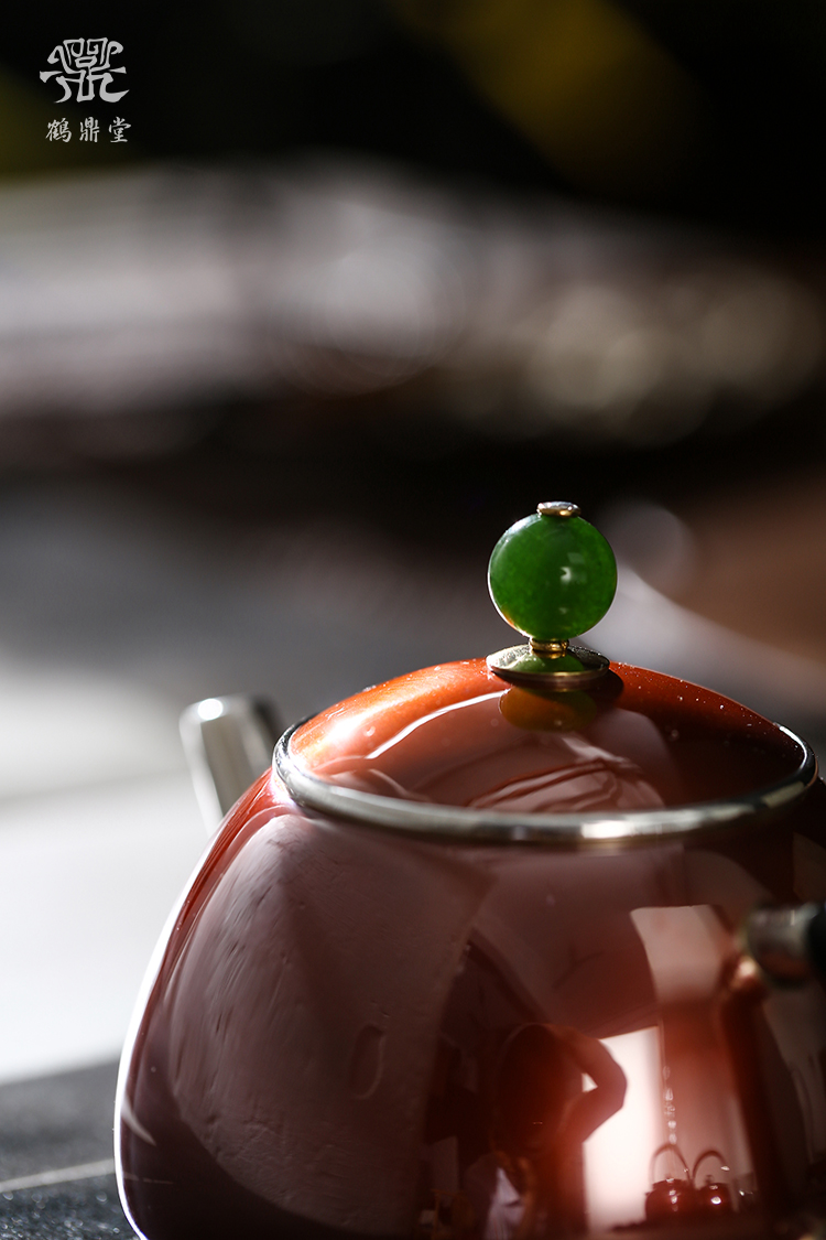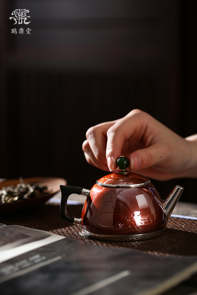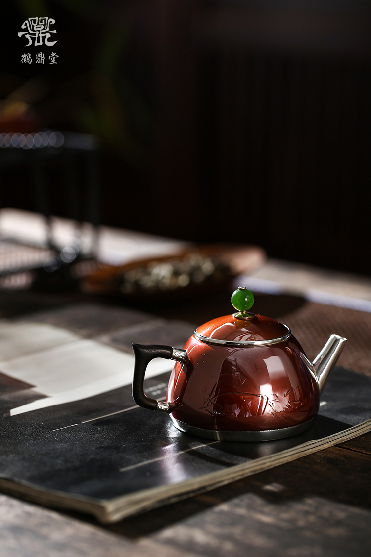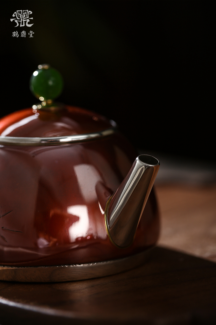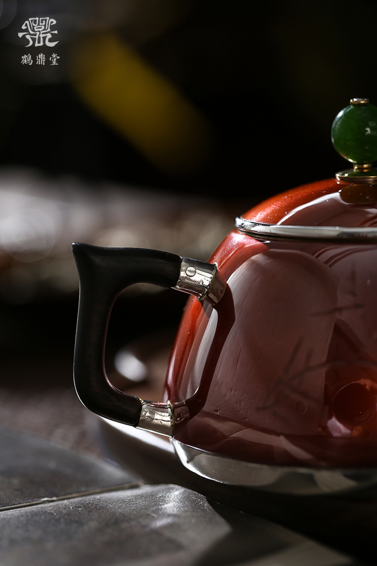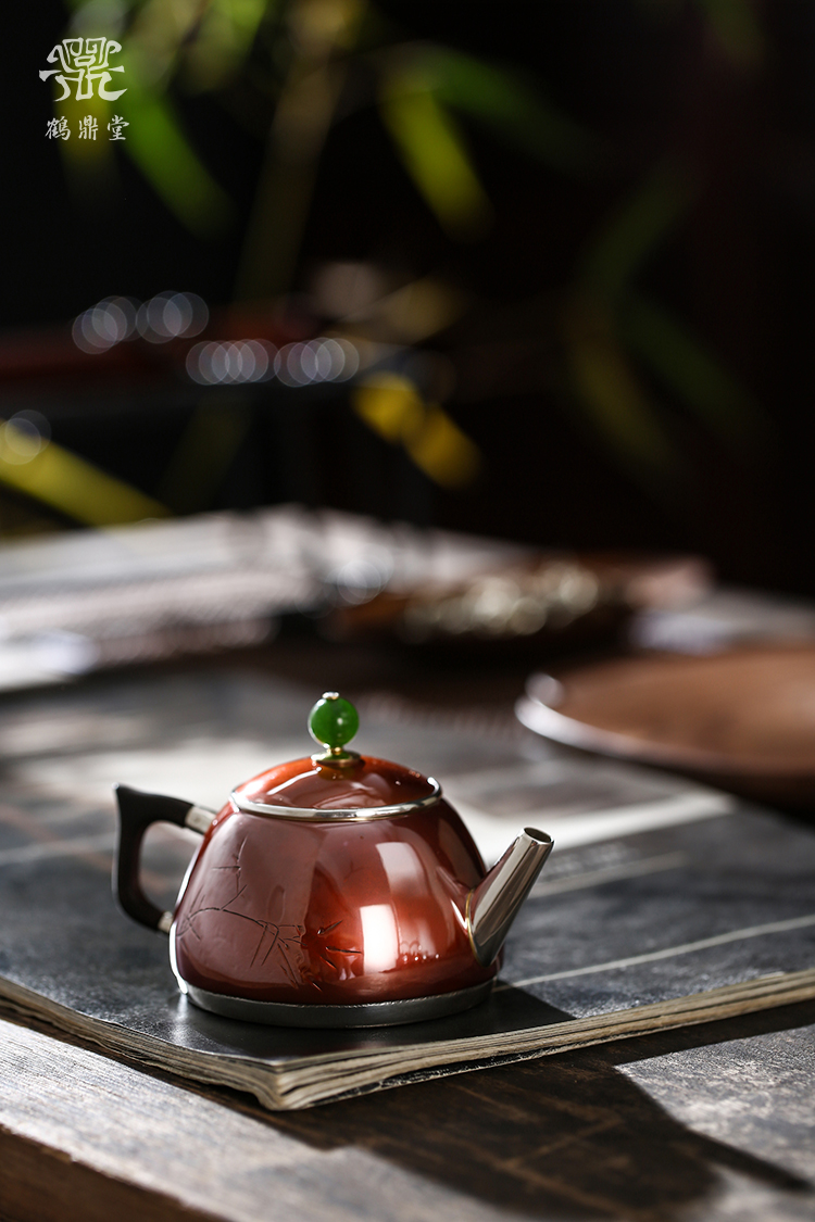 鹤鼎堂银壶于飞系列星言急须錾刻枝叶扶疏(铜包银)(缺货)