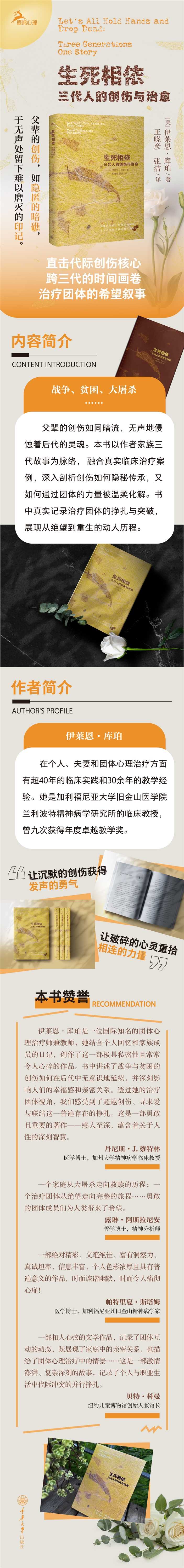 战争、贫困、大屠杀父辈的创伤如同暗流,无声地侵蚀着后代的灵魂。本书以作者家族三代故事为脉络,融合45年临床治疗案例,深入剖析创伤如何隐秘传承,又如何通过团体的力量被温柔化解。书中真实记录治疗团体的挣扎与突破,展现从绝望到重生的动人历程。