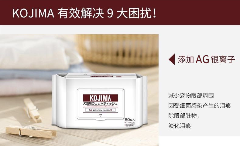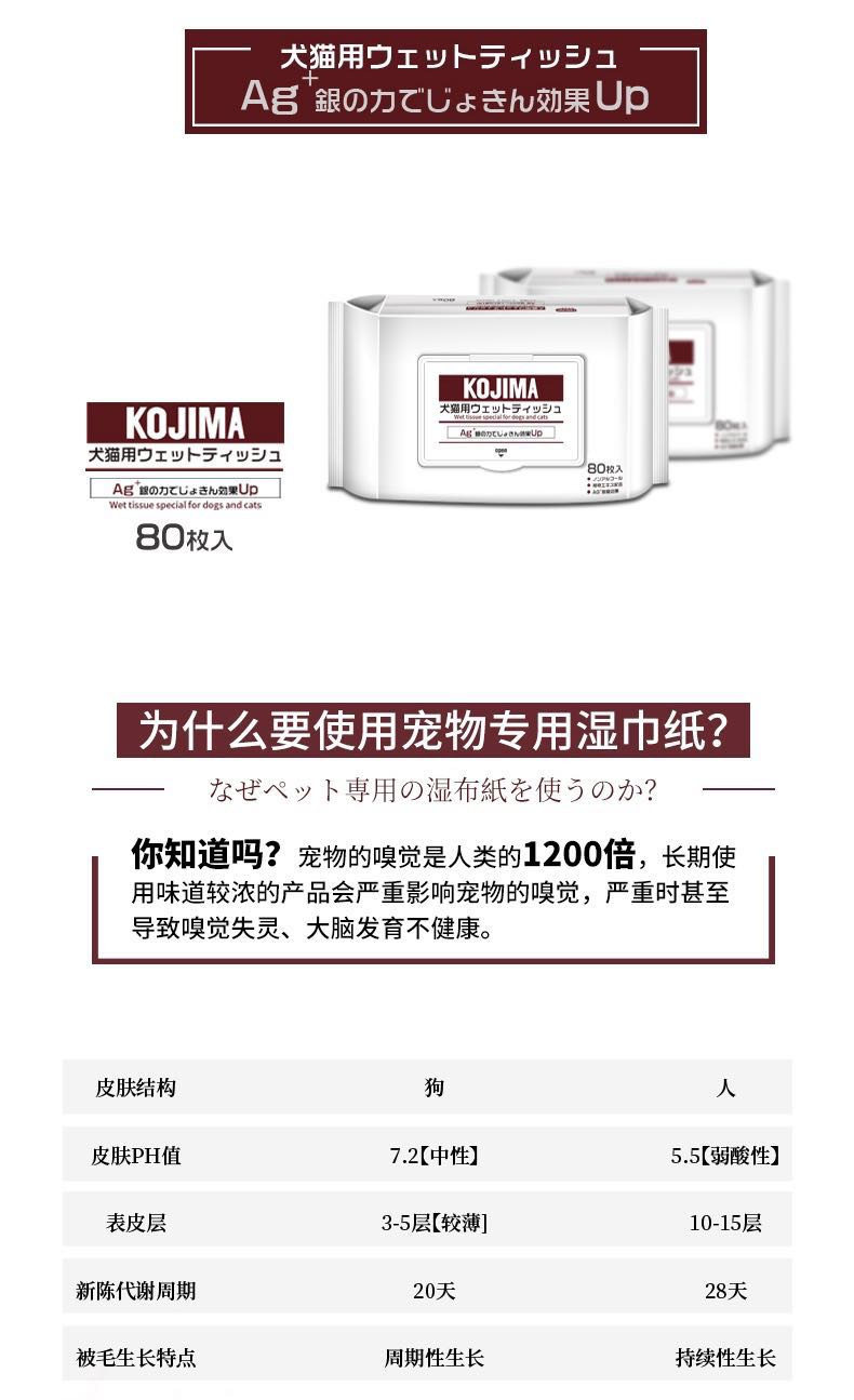 KOJIMA宠物湿巾狗狗猫咪泰迪英短专用擦屁屁耳朵脚去泪痕清洁80片
