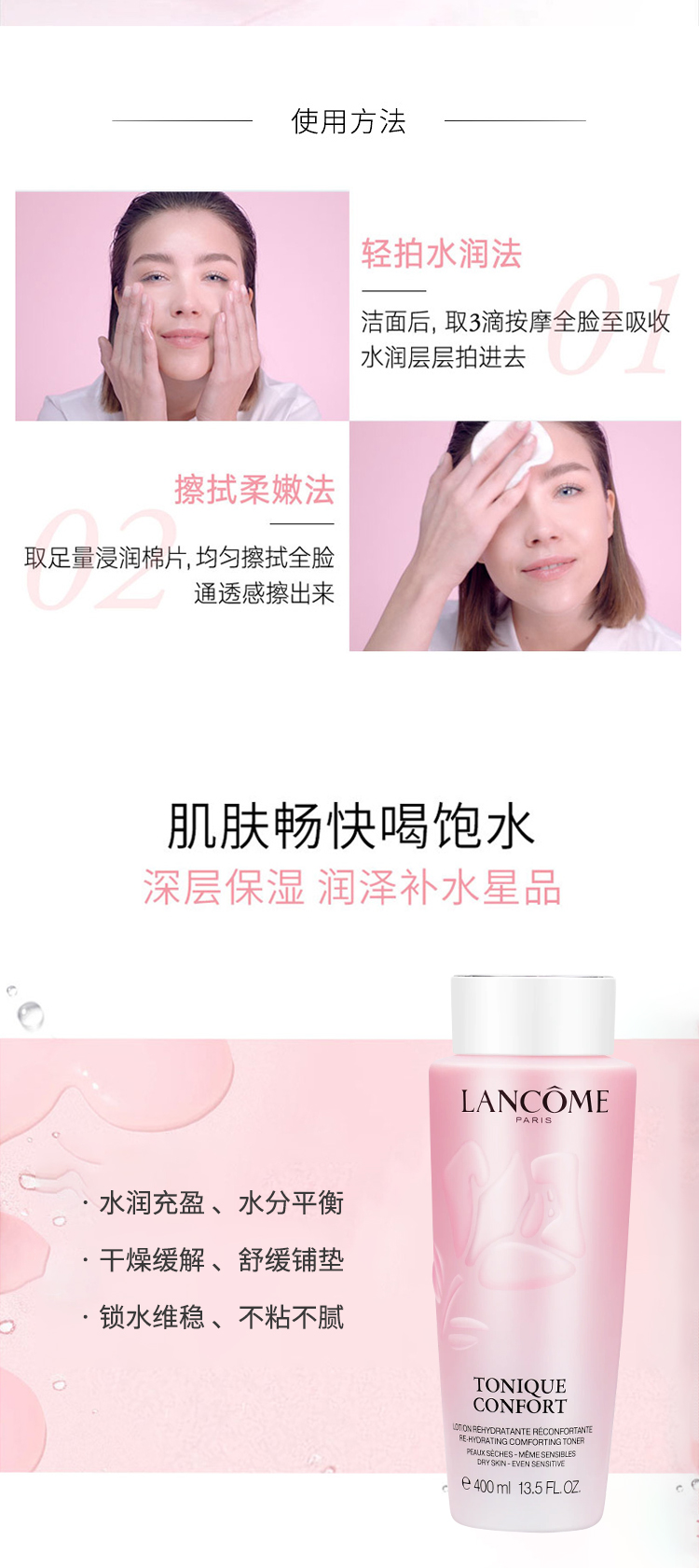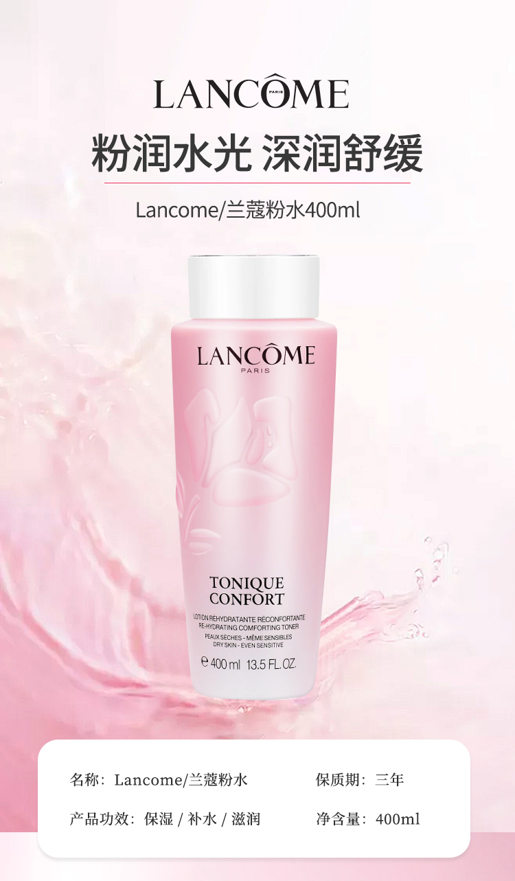 【超模君精选福利!限量100单 每个ID限购两单!】兰蔻粉水400ml 保湿补水舒缓褪红修护 爽肤柔肤水