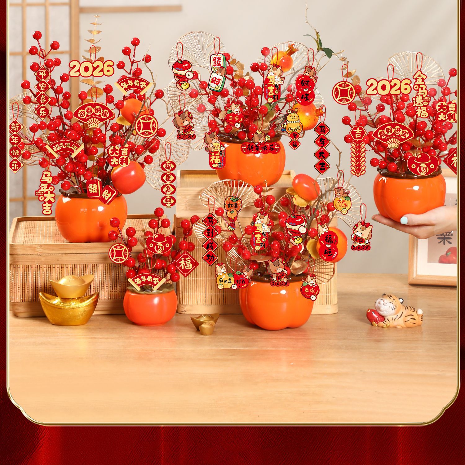 2026马年新款新年发财果装饰品客厅桌面柿柿如意柿子摆件春节用品