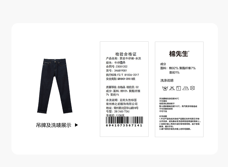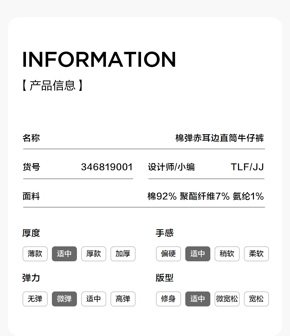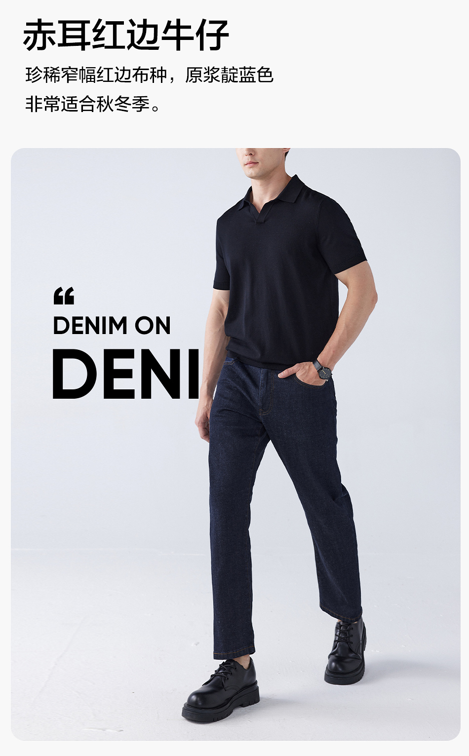 棉仓346819001-棉弹赤耳边直筒牛仔裤