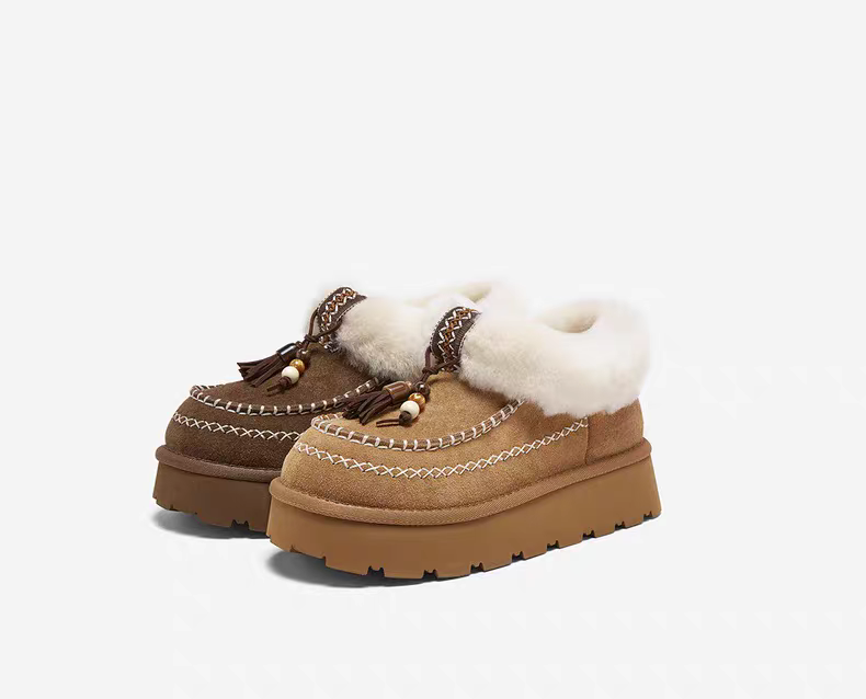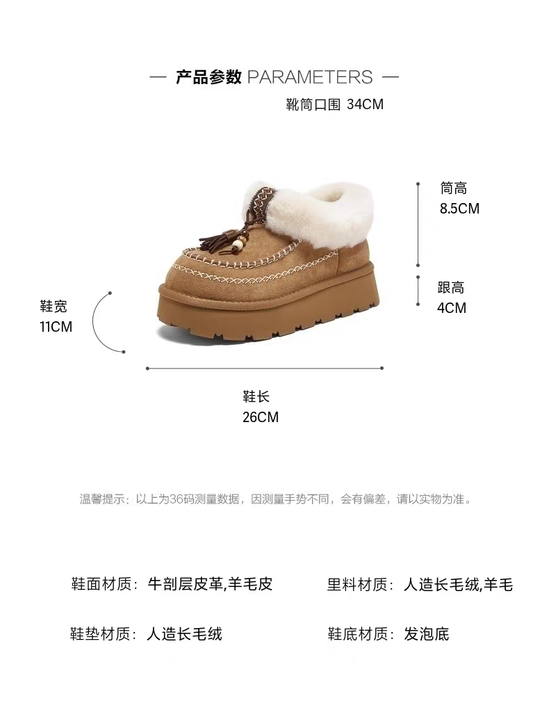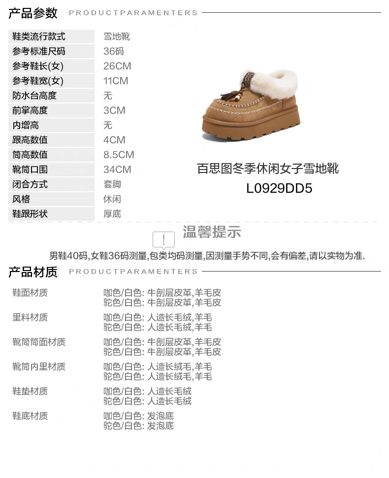 【云粉节】BF楼百思图2025冬季新款厚底雪地靴棉鞋加绒保暖女毛毛短靴L0929DD5吊牌价899,现价450