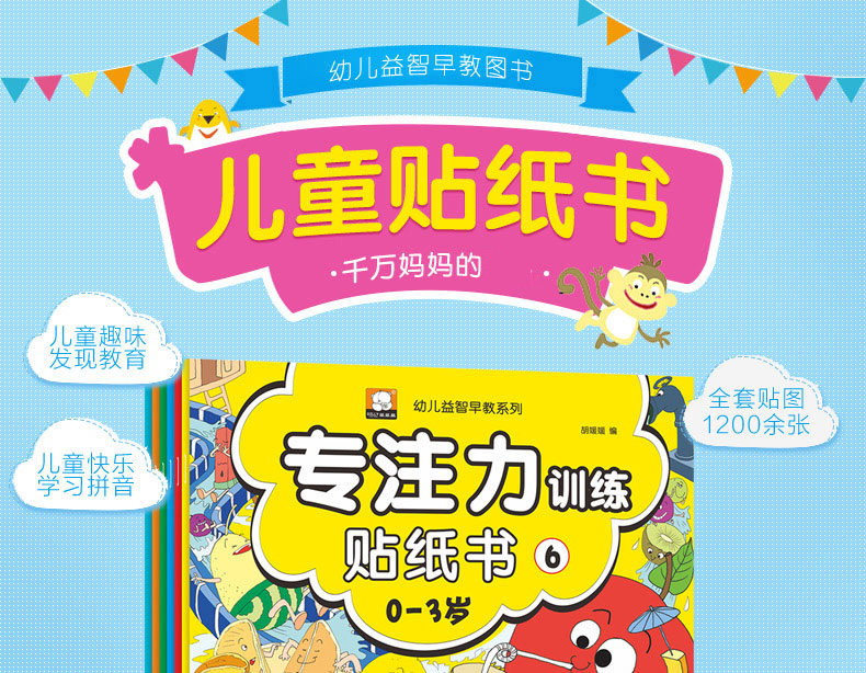 【掌柜推荐】宝宝贴纸书0-3岁专注力训练6册 绘本0-3岁适合一两三五六周岁孩子看的启蒙益智早教故事书 小孩到两岁三岁宝宝图书1-2岁的幼儿书本