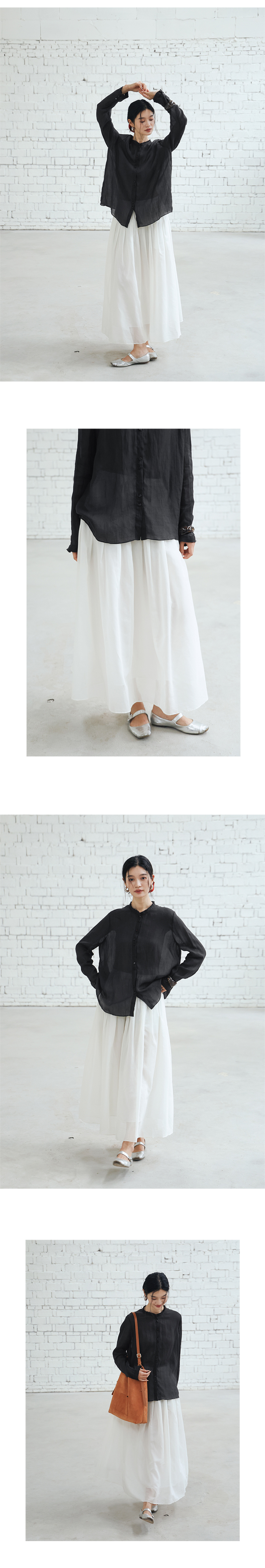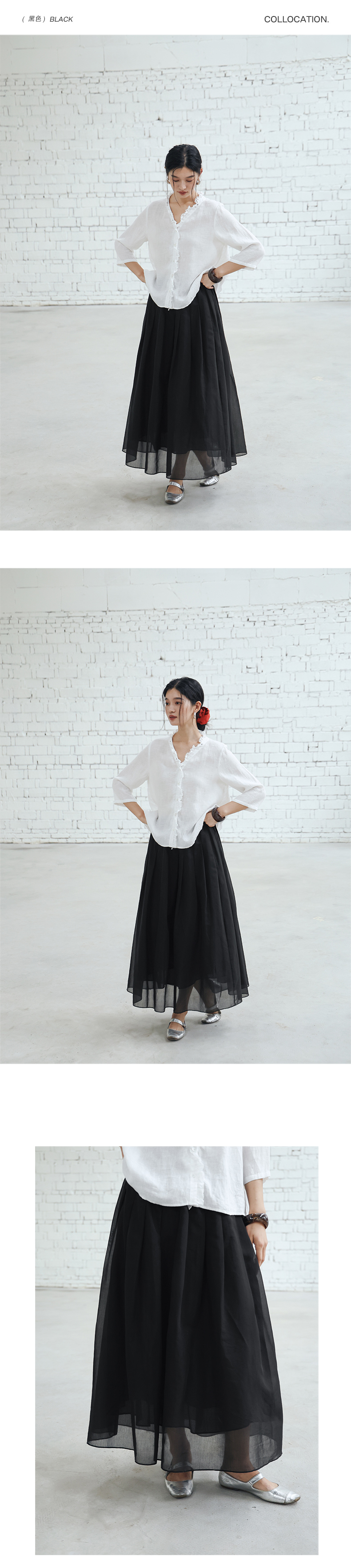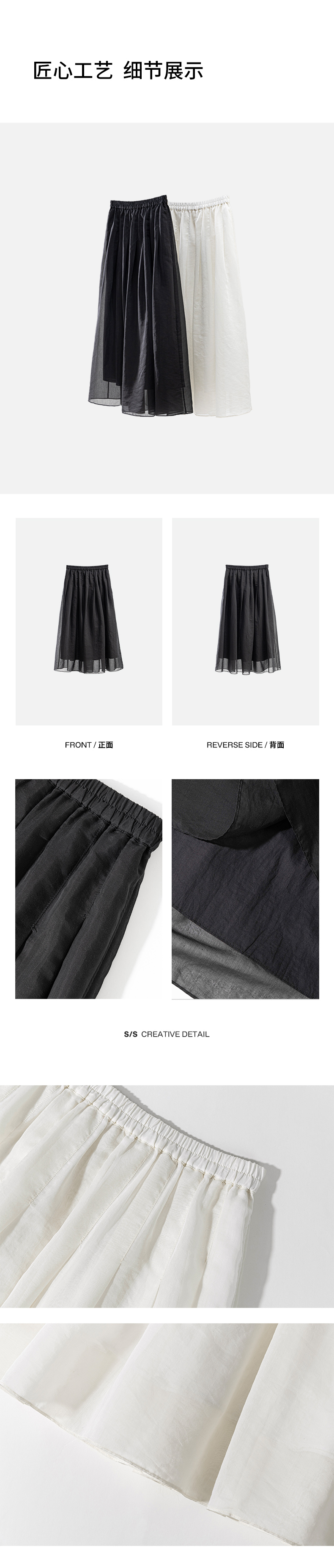 绽放453朵/【黑白灰系列·白日焰火】桑蚕丝棉压褶半身裙旅行长裙