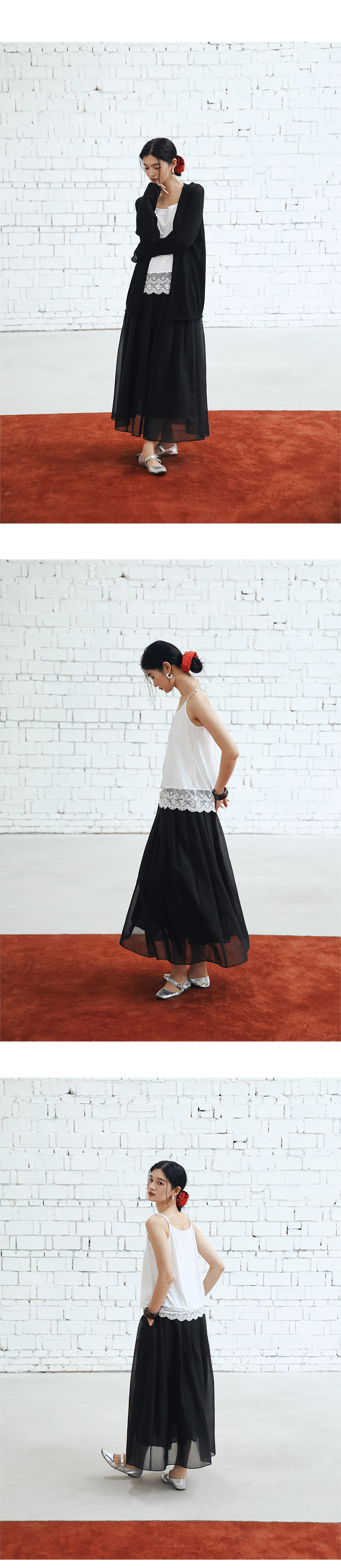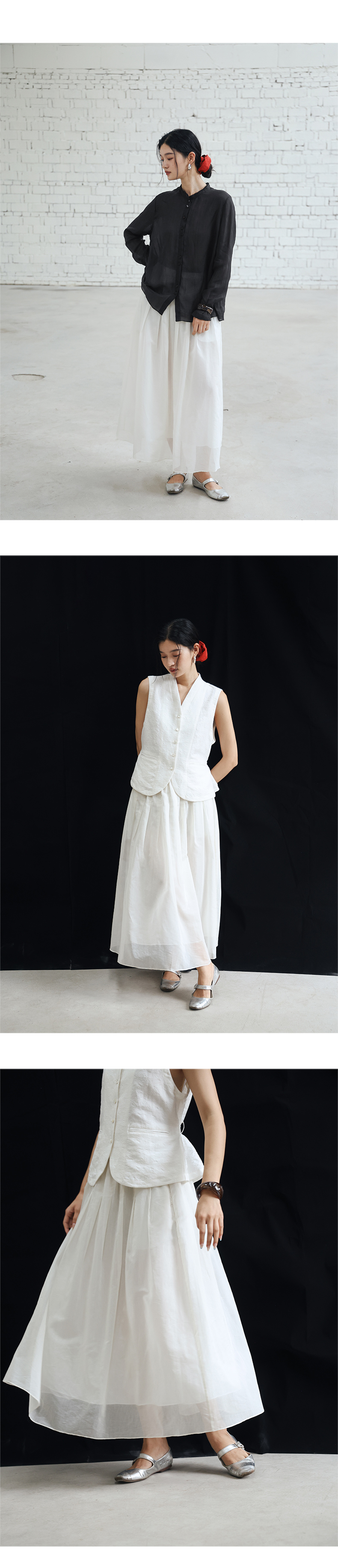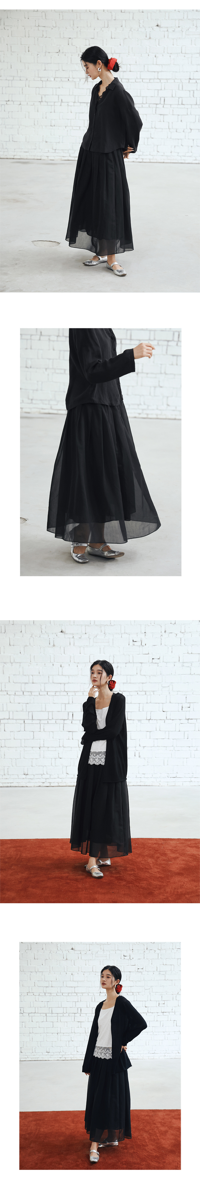 绽放453朵/【黑白灰系列·白日焰火】桑蚕丝棉压褶半身裙旅行长裙