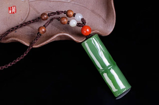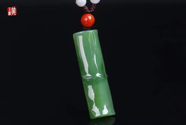 和田玉碧玉【节节高升】吊坠 配精美编制挂绳