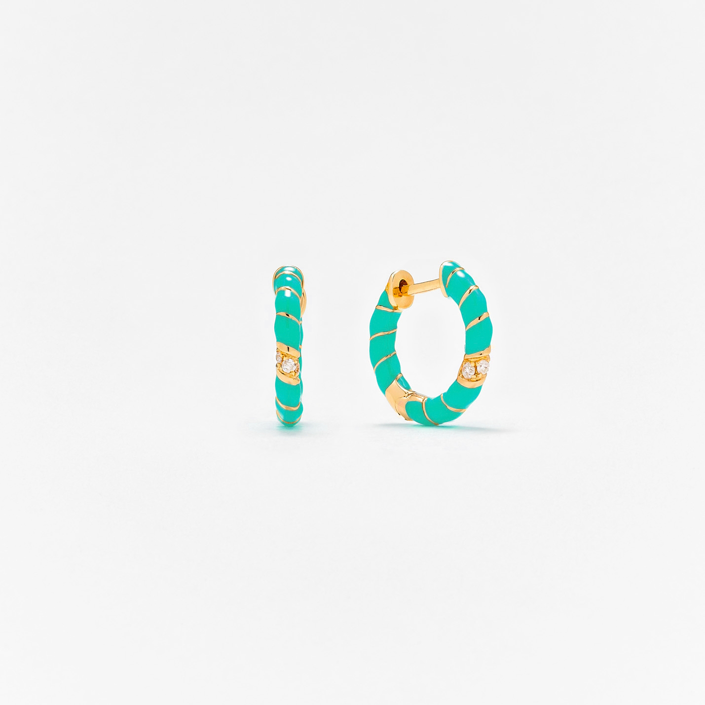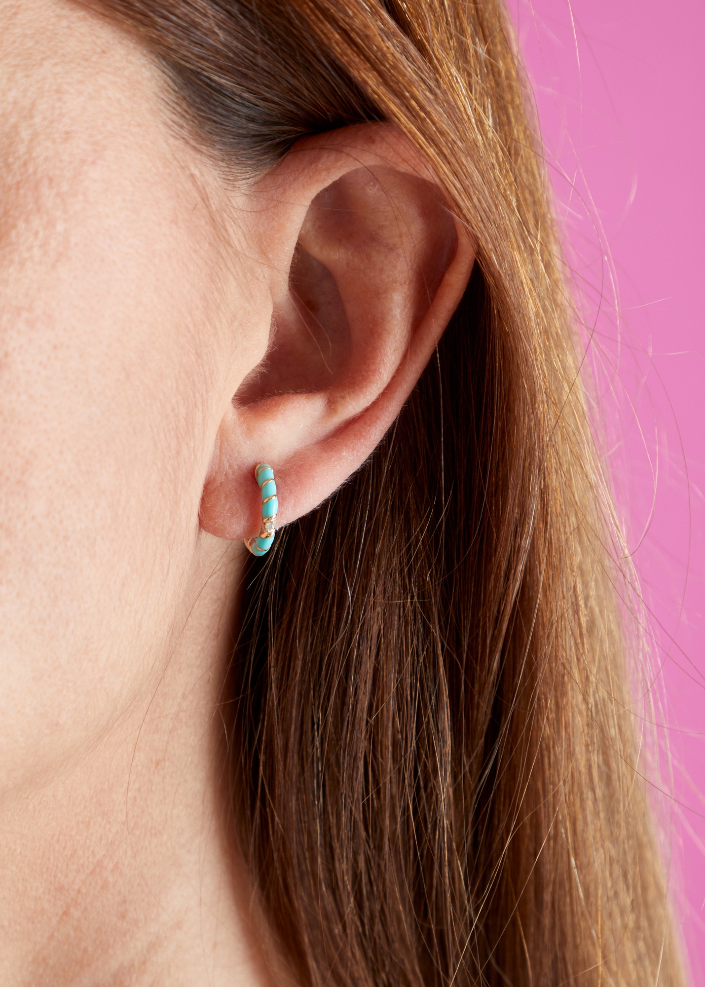 订购10周到|Yvonne Leon-Les Torsades-9K黄金 珐琅 钻石 麻花 耳环(松石蓝色)[法国设计师]