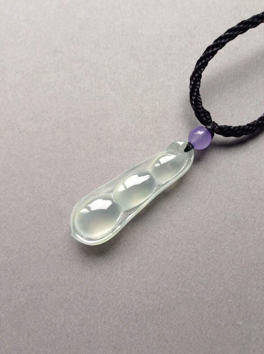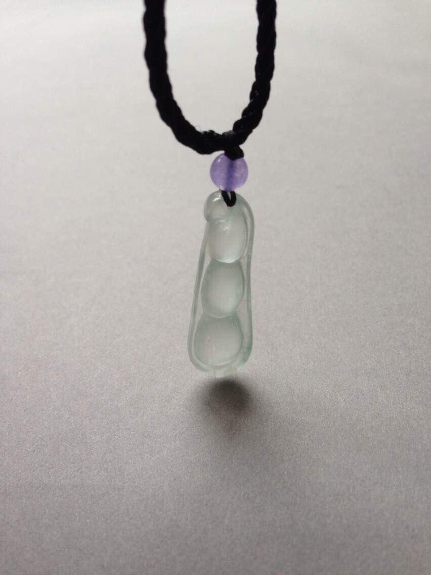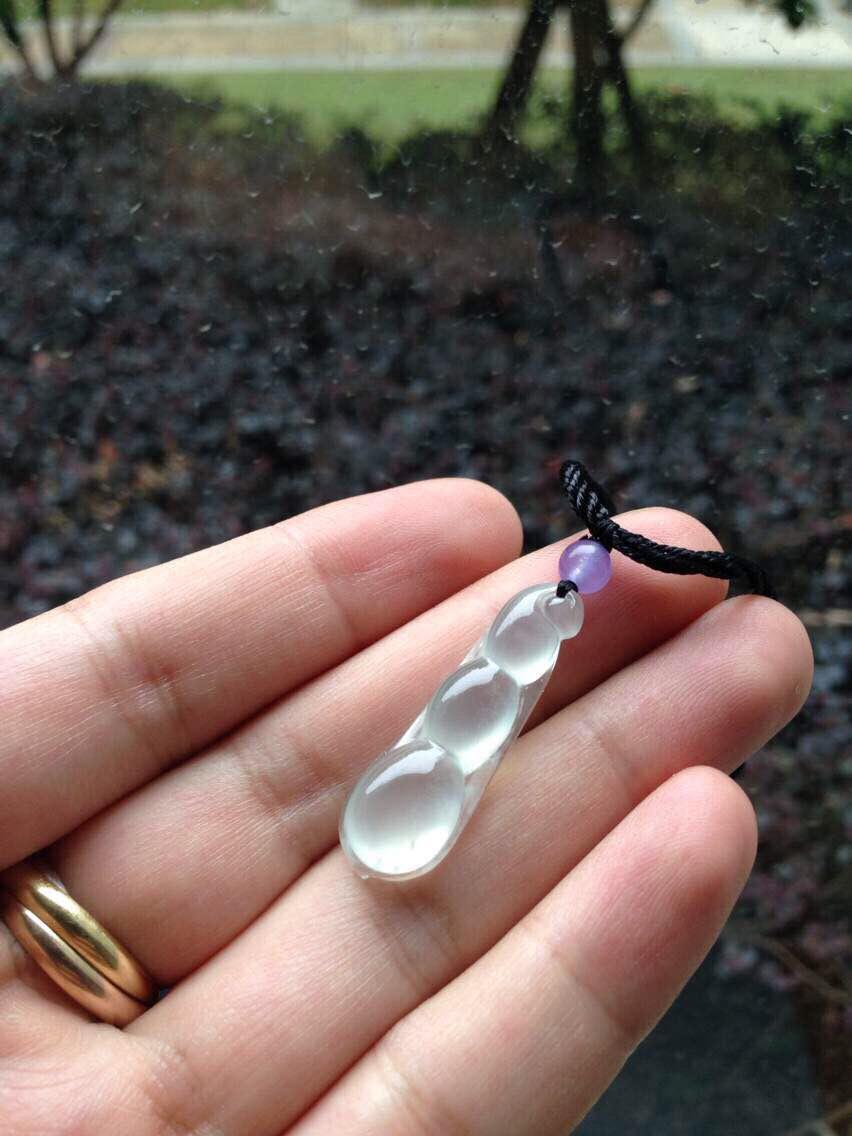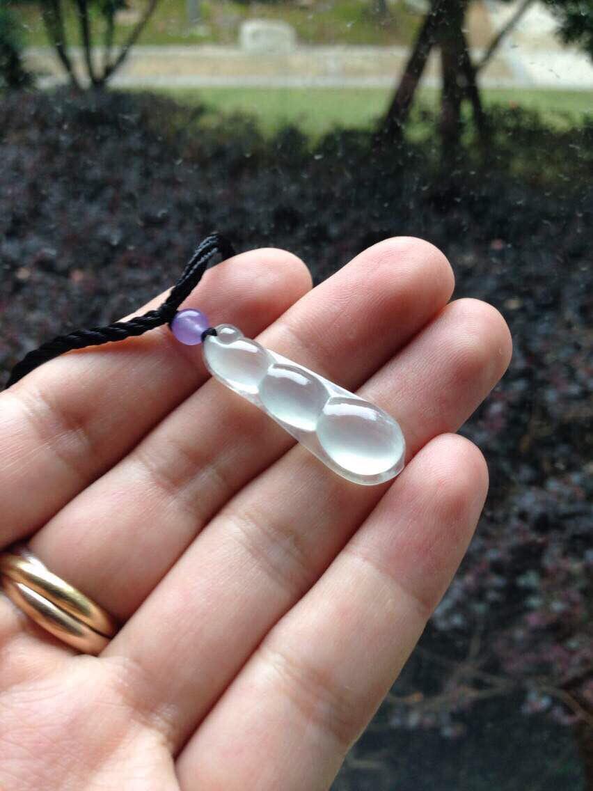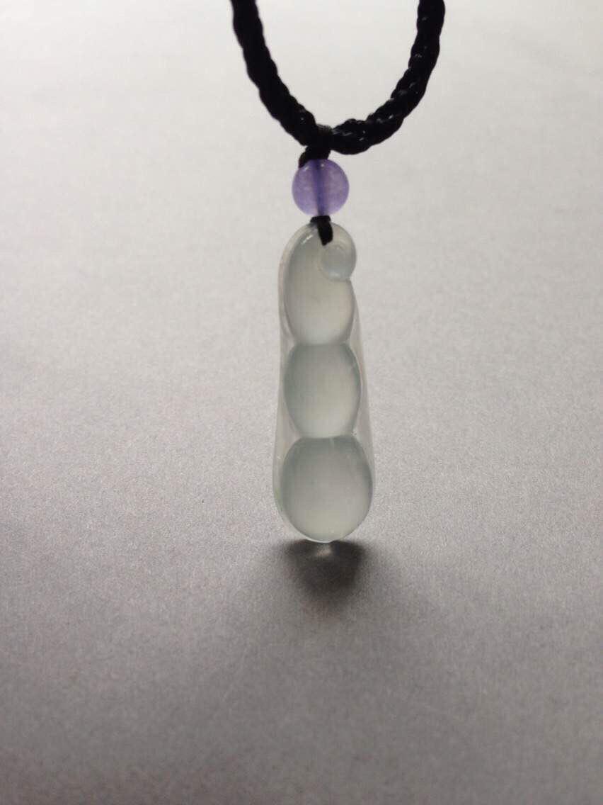 玻璃种福豆,四季平安,32.3*10.4*5.9mm。亮度棒极,阳光下闪到爆,种水贼好,寒气逼人,尺寸饱满,豆粒颗颗动人心魄,底部一颗棉里面隐着点暗纹,不影响。让人无法拒绝的高货,实物超级漂亮,随便五位数的东西,我们才四位数,性价比绝了