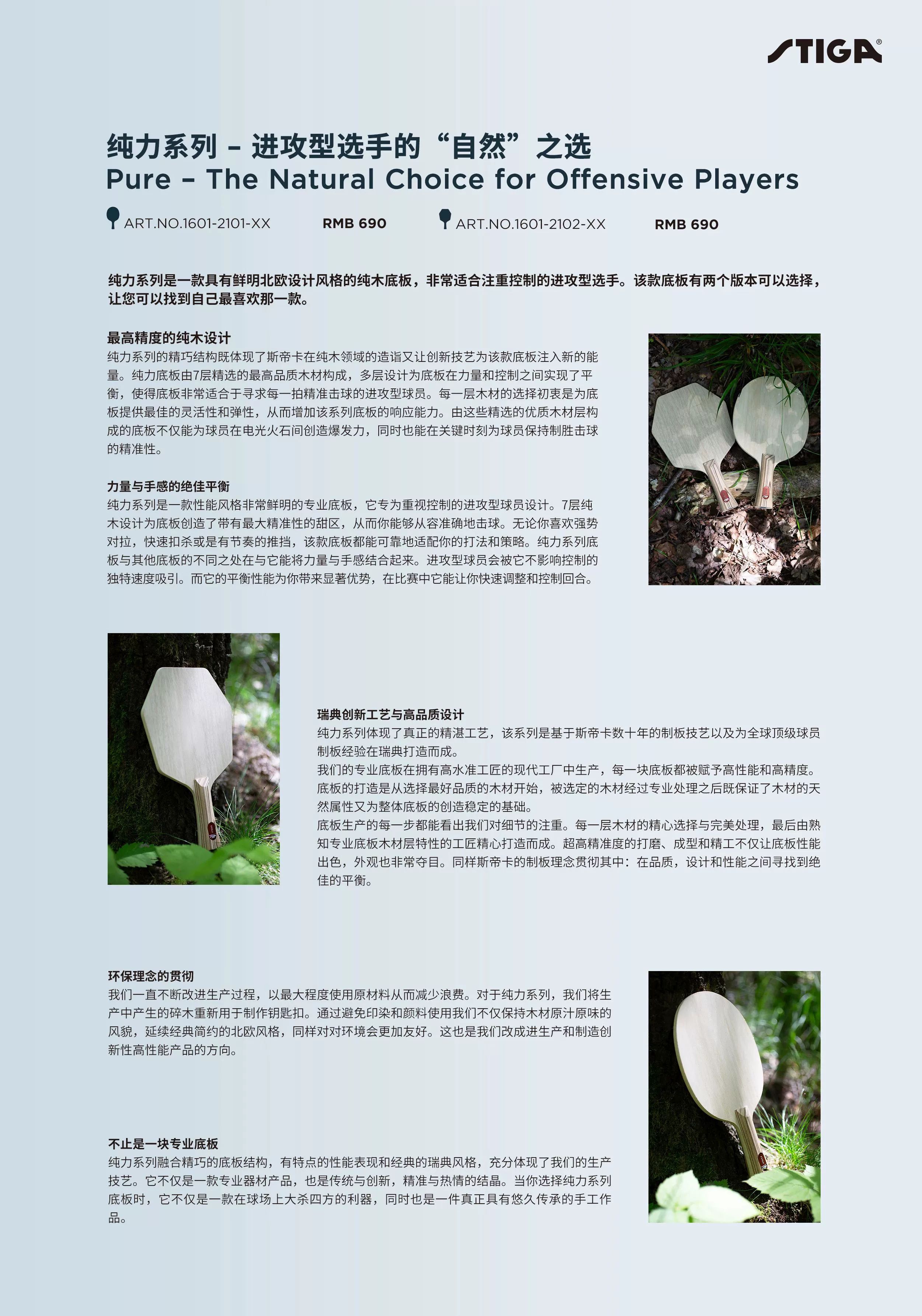 STIGA斯帝卡 Pure 纯力 七层纯木 乒乓球板 国球汇
