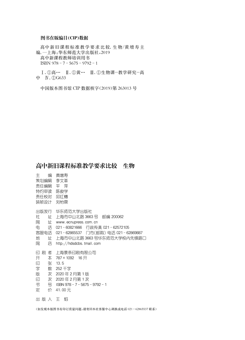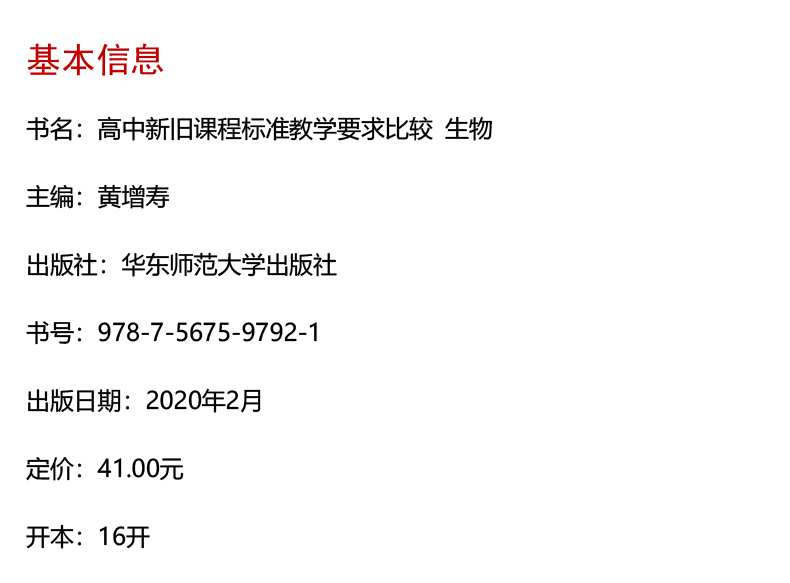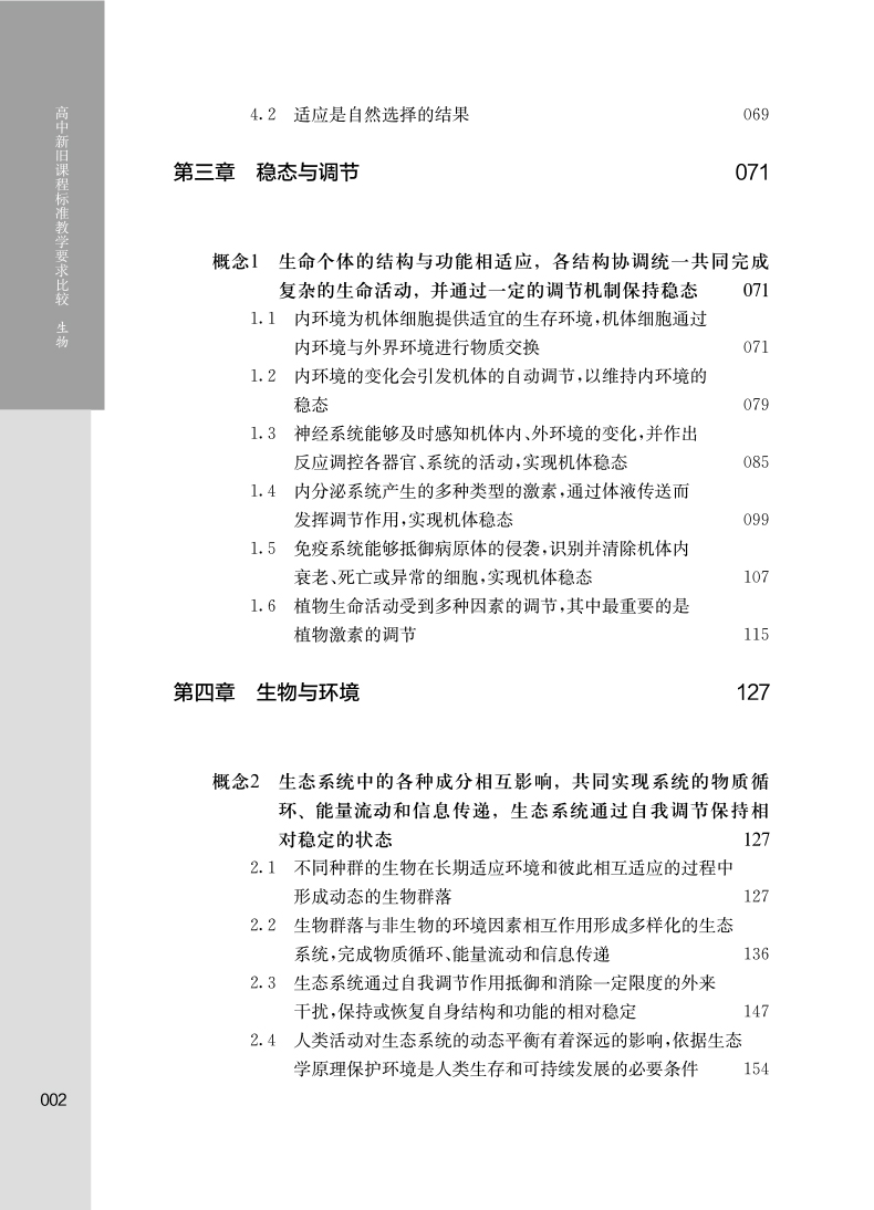 高中新旧课程标准教学要求比较 生物 高中新课程教师培训用书