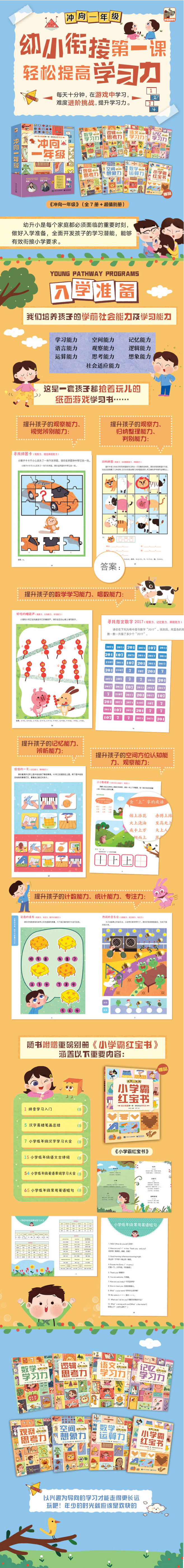 冲向一年级(全7册,含附件1册)赠 小学霸红宝书 6岁+ 激发孩子学习潜能