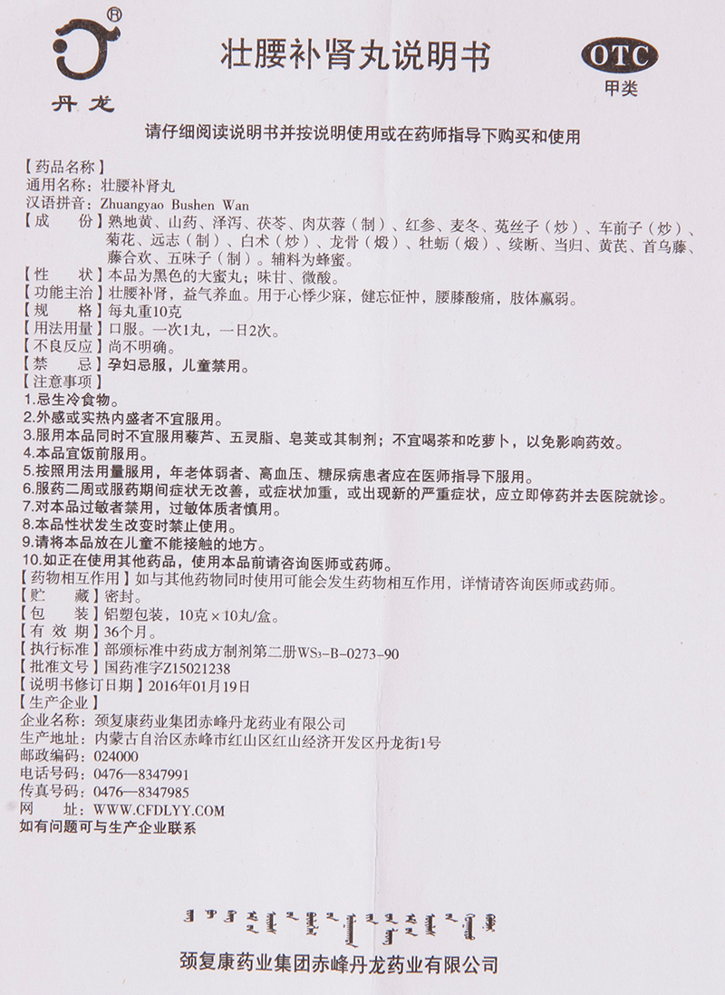 丹龙壮腰补肾丸10丸益气养血心悸少寐健忘腰膝酸痛四肢身体瘦弱