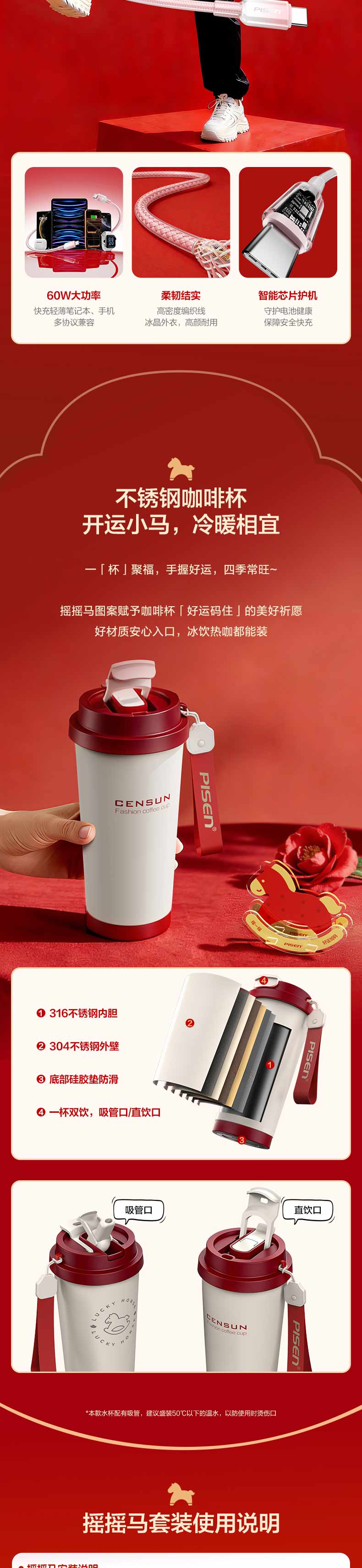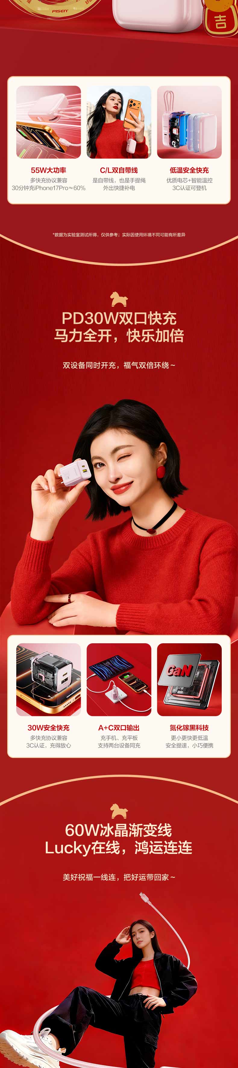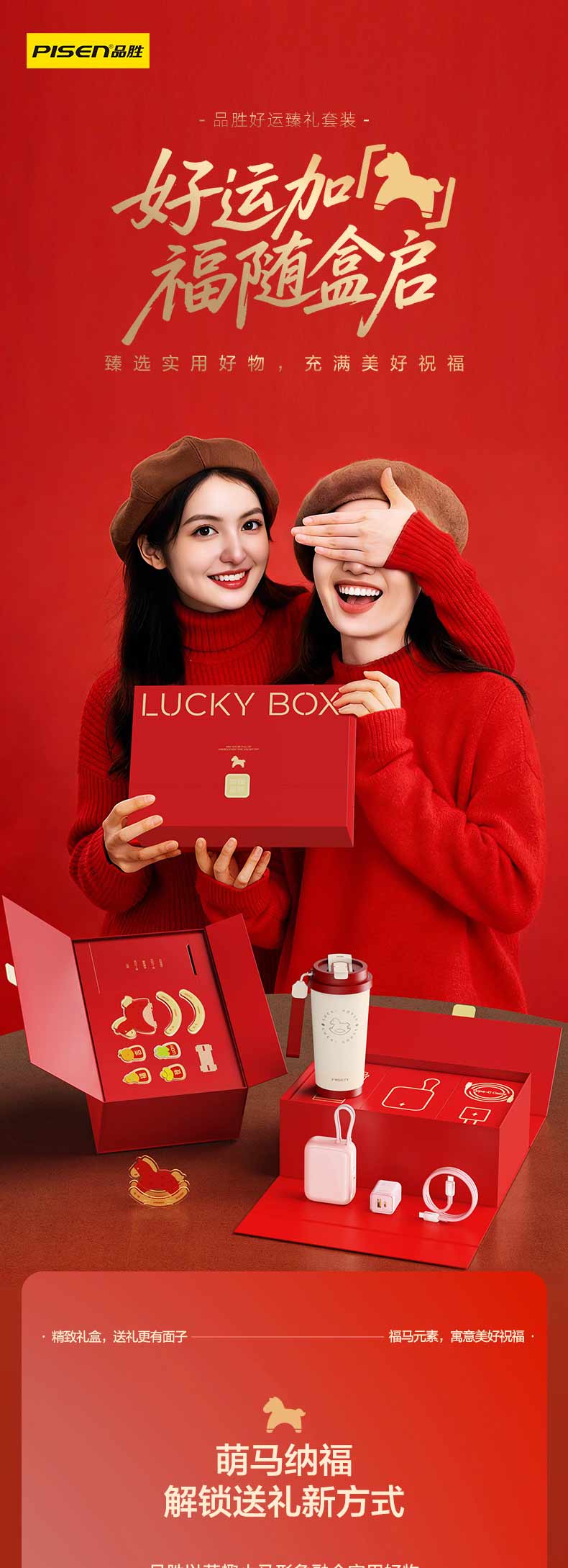 品胜 新年礼盒套装 送礼 数码礼包 55W双自带线充电宝+马年水杯+PD30W充电器套装