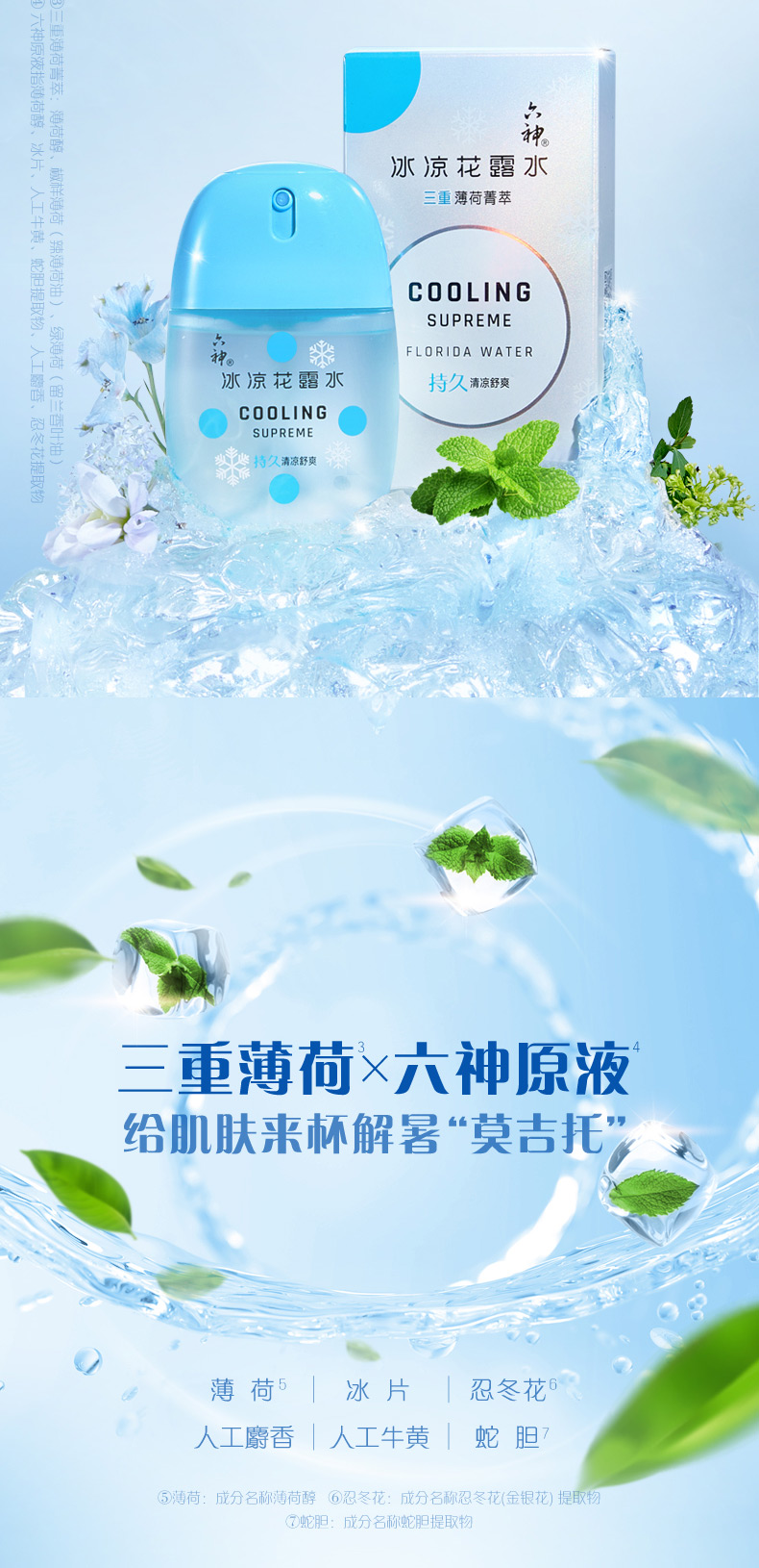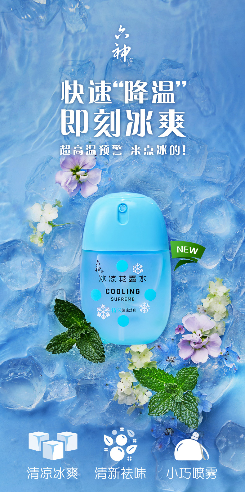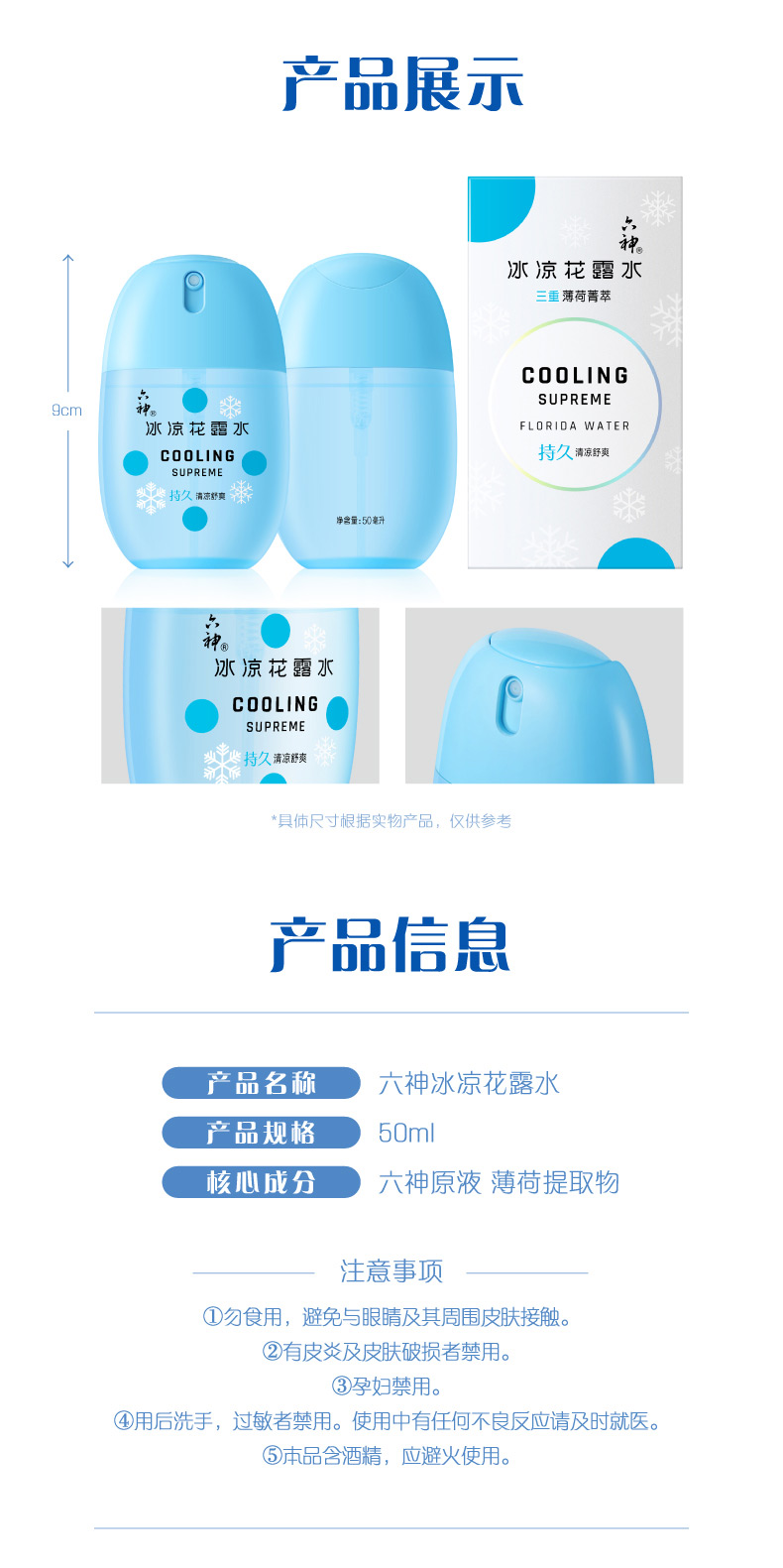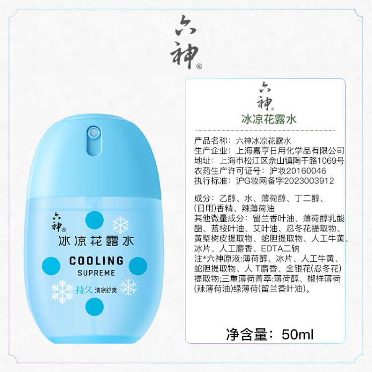 六神冰凉花露水冰凉蛋50ml*1瓶小巧盒装 便携装