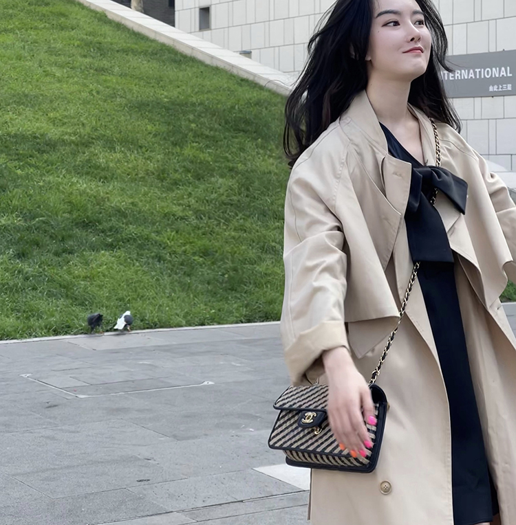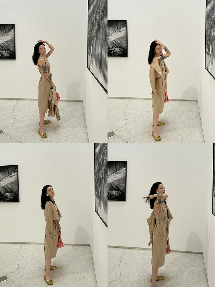 黑标新王佳芝优雅小立领风衣连衣裙和外套