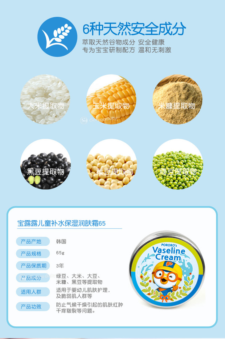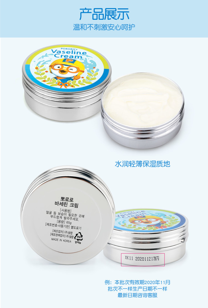 【一般贸易】韩国进口pororo小企鹅宝露露啵乐乐四季新生儿儿童面霜补水保湿宝宝滋润肤霜65g