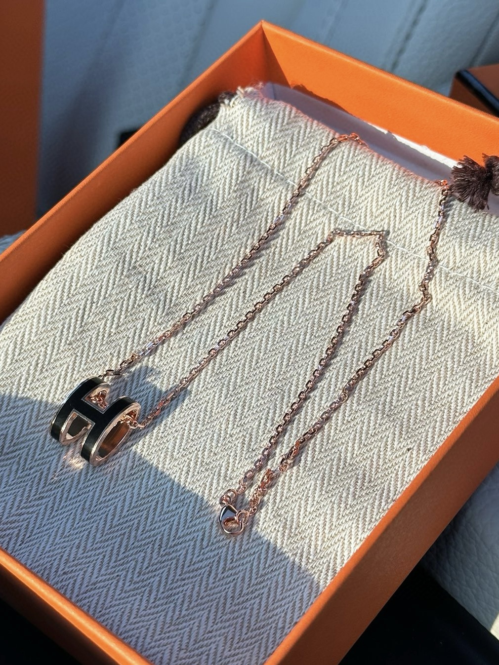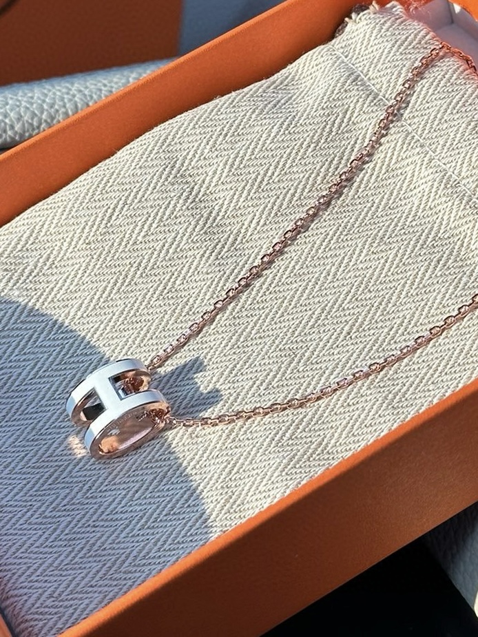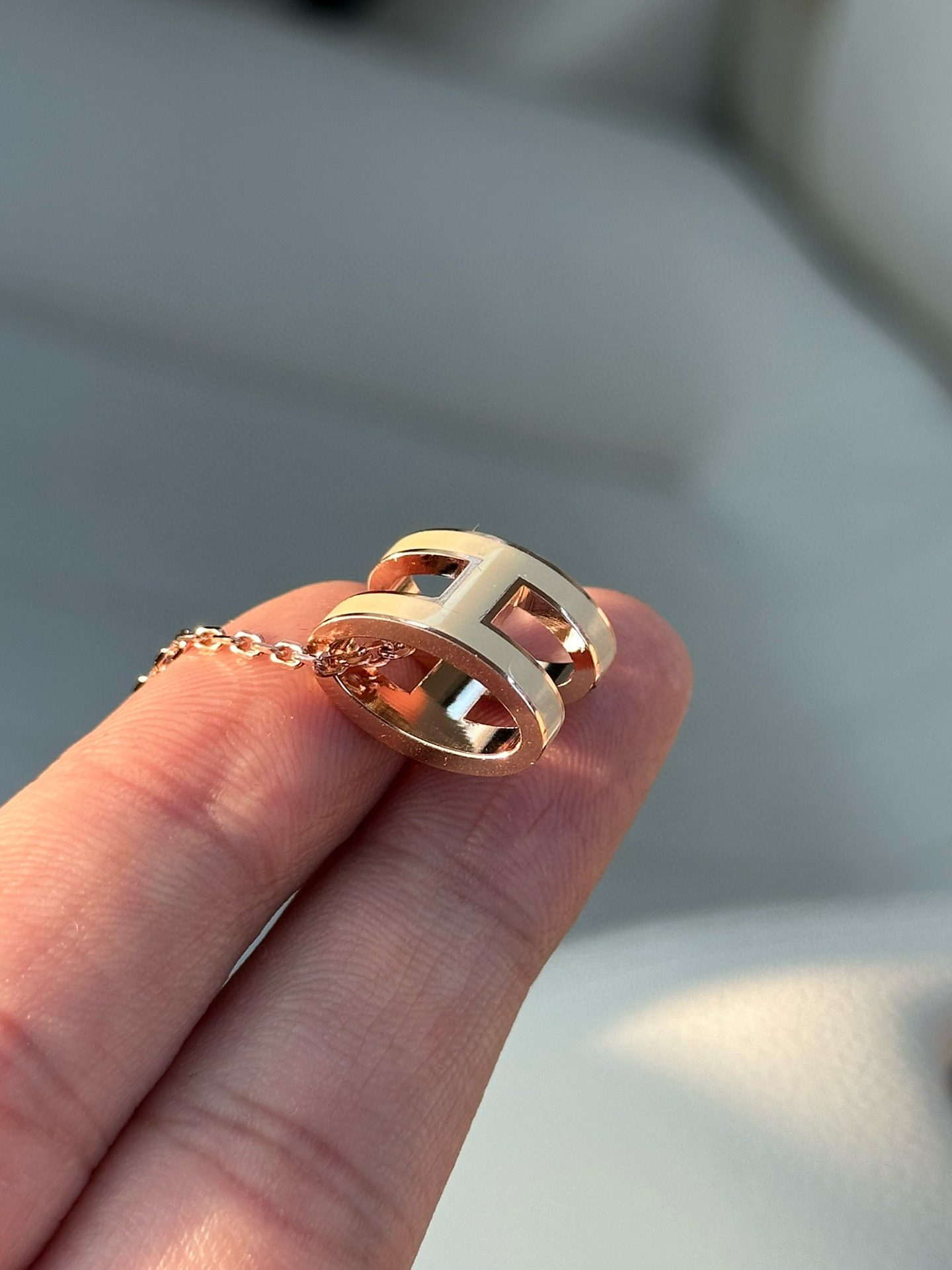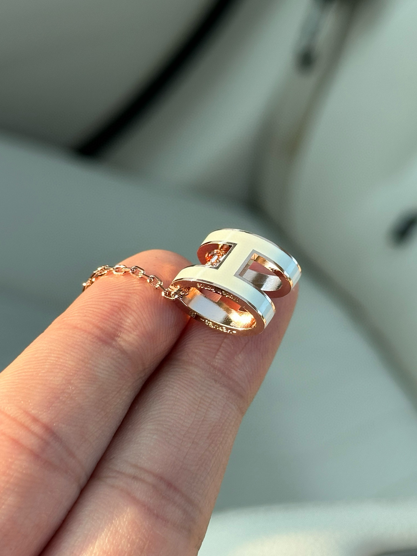 ‼️大马家珐琅弧形H项链,专柜在售3千➕现货!2017版的把原来的钢铁丝项圈换成了链子,相对来说更有垂坠感,玫瑰金色链子非常高级!所对应的H珐琅外围包边也是同色系!