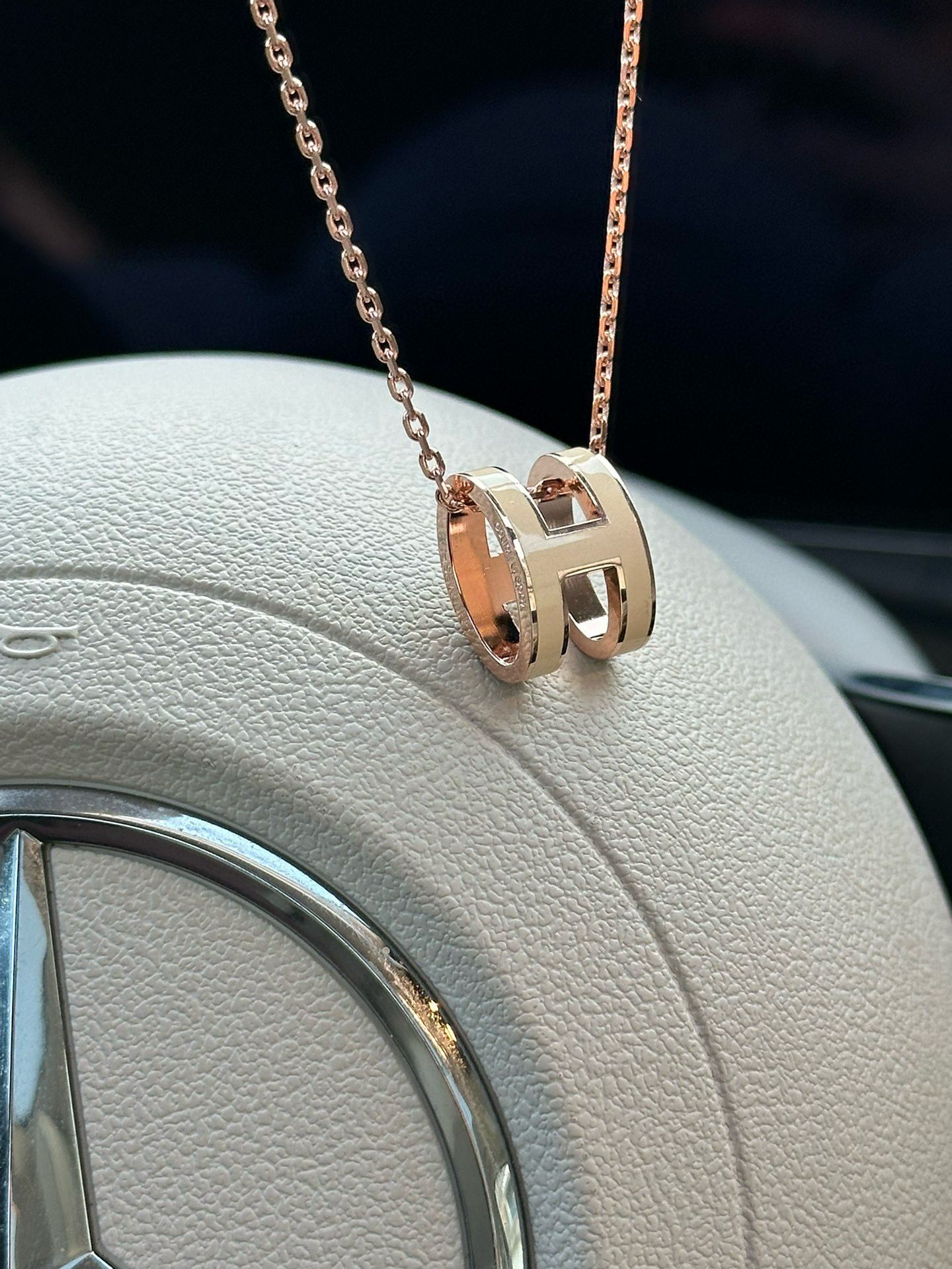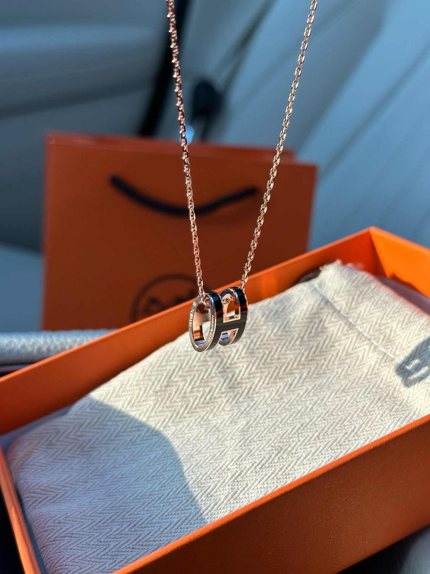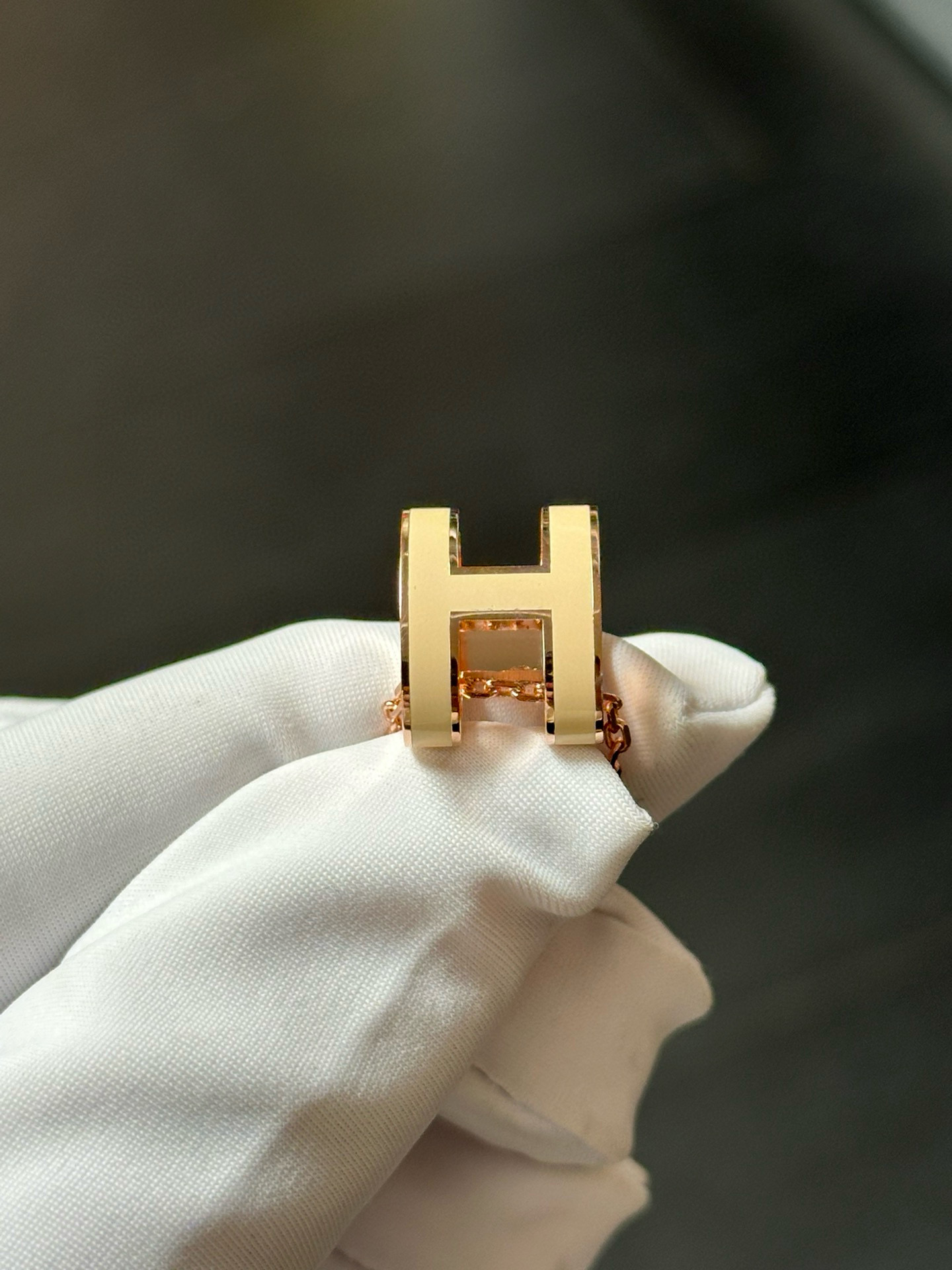 ‼️大马家珐琅弧形H项链,专柜在售3千➕现货!2017版的把原来的钢铁丝项圈换成了链子,相对来说更有垂坠感,玫瑰金色链子非常高级!所对应的H珐琅外围包边也是同色系!