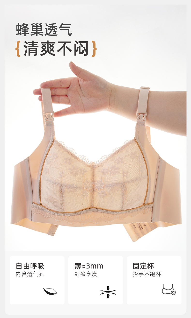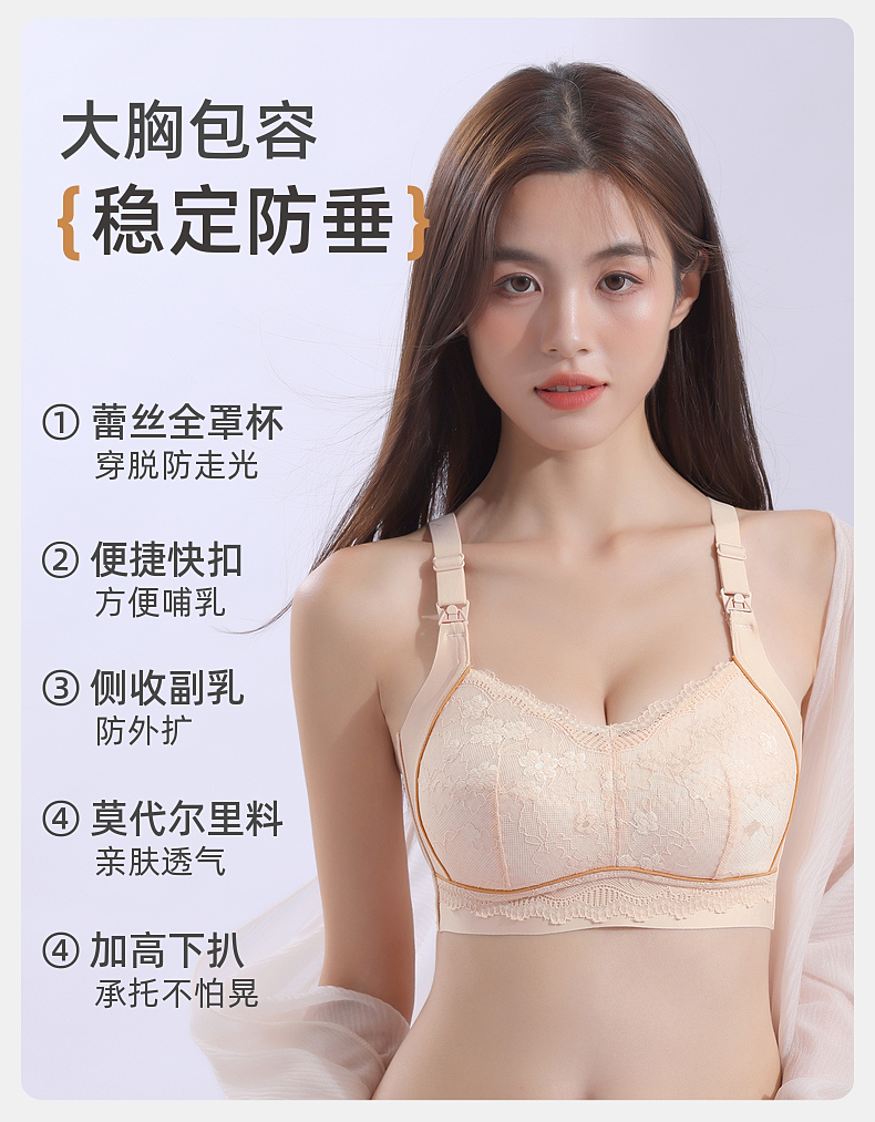 雅黛俪哺乳文胸内衣女夏季薄款大码聚拢防下垂收副乳产后喂奶胸罩