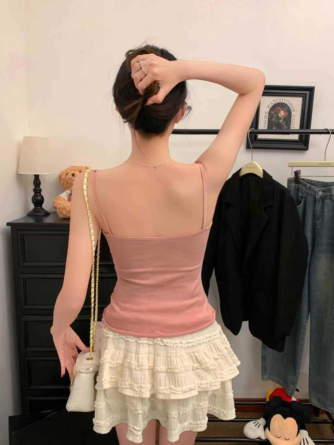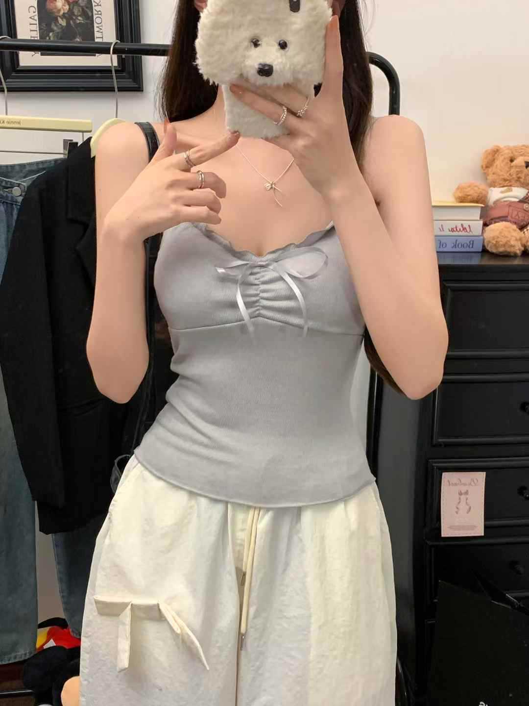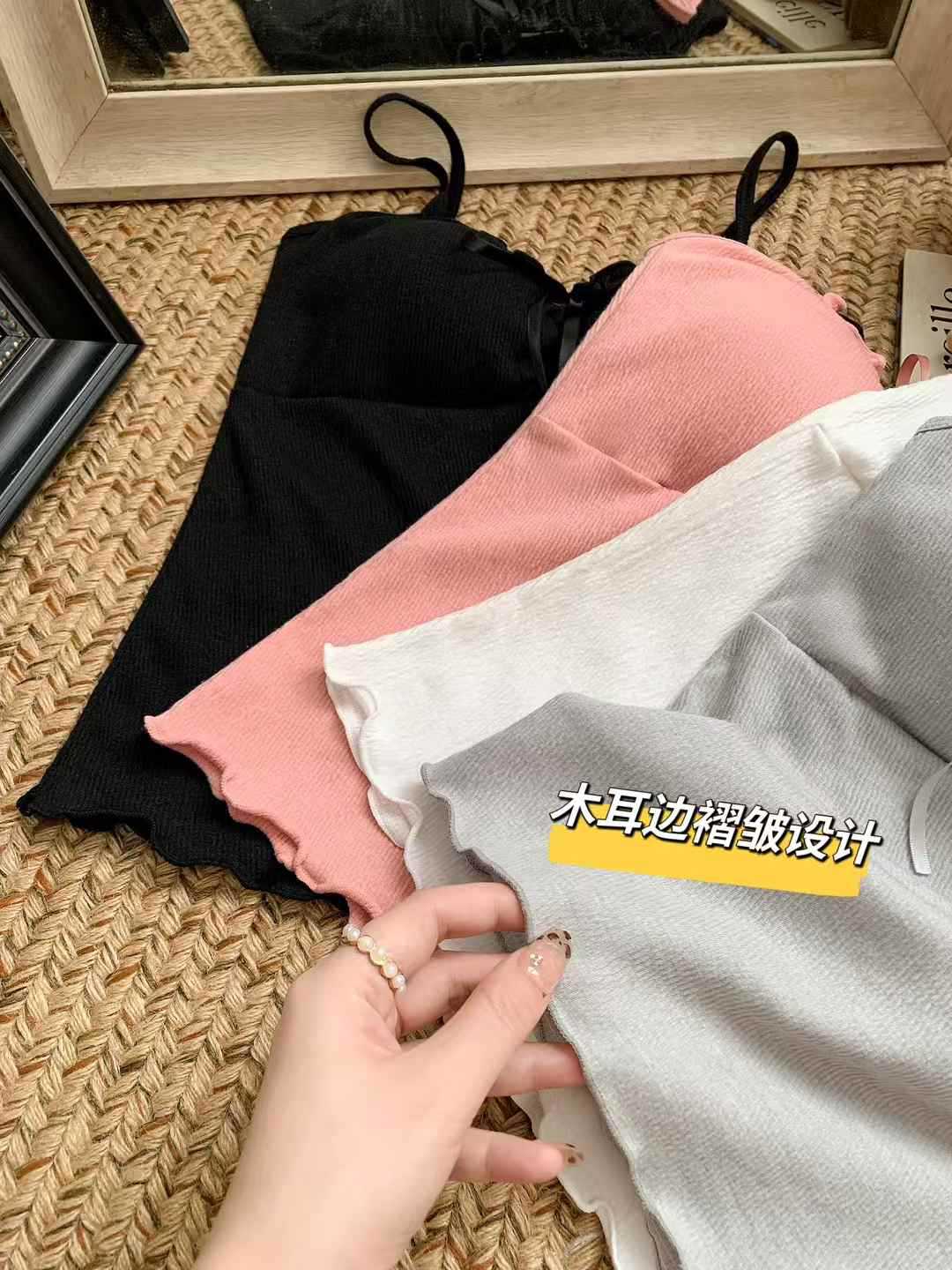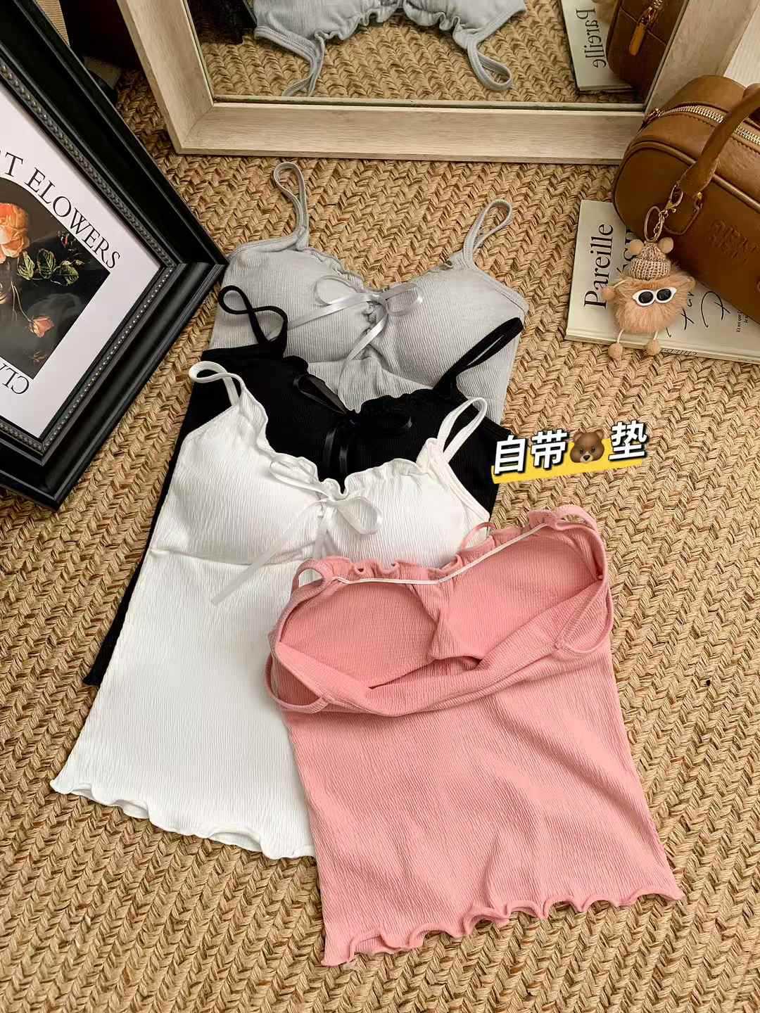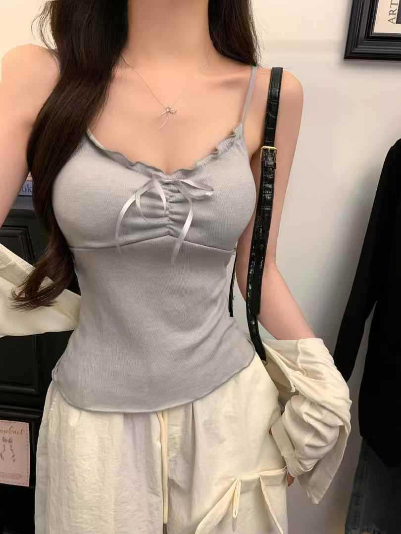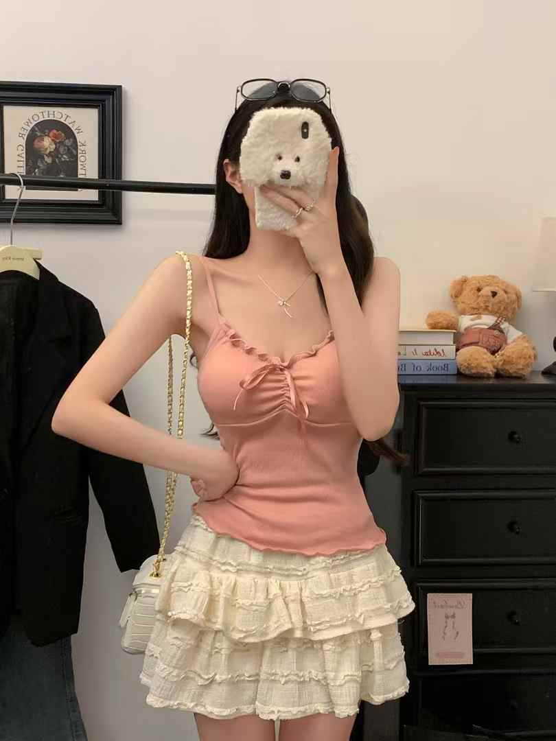 【纯欲天花板❗️蝴蝶结吊带背心】木耳边领口 + 胸前蝴蝶结设计,温柔又性感,轻松拿捏甜欲少女感,显瘦收腰完美勾勒腰腹线条,视觉上显瘦又显高,小背心女修身内衣百搭抹胸美背L