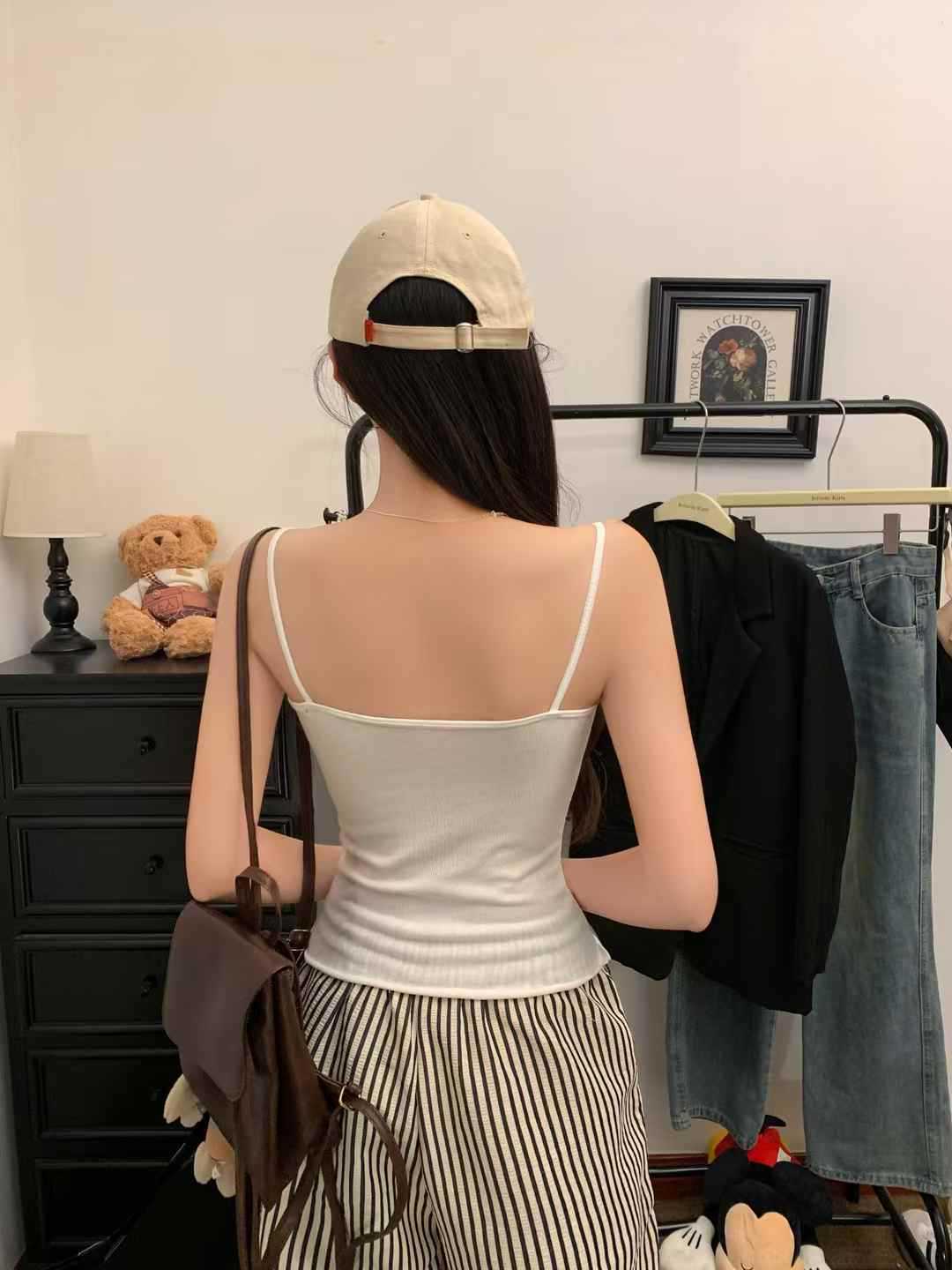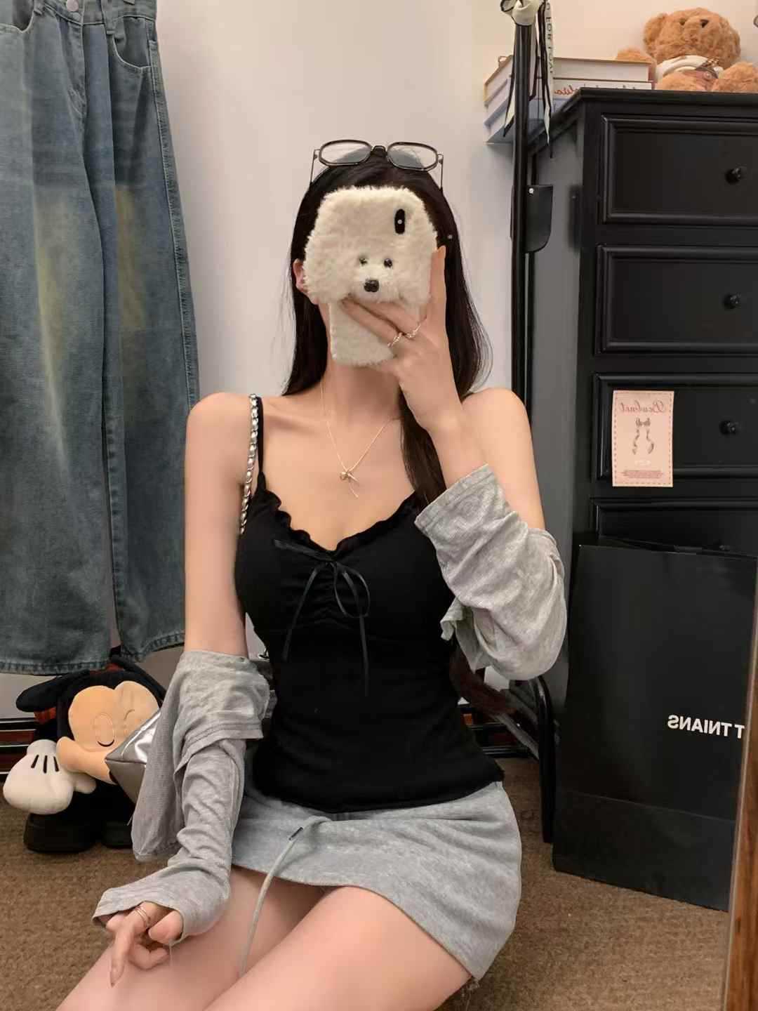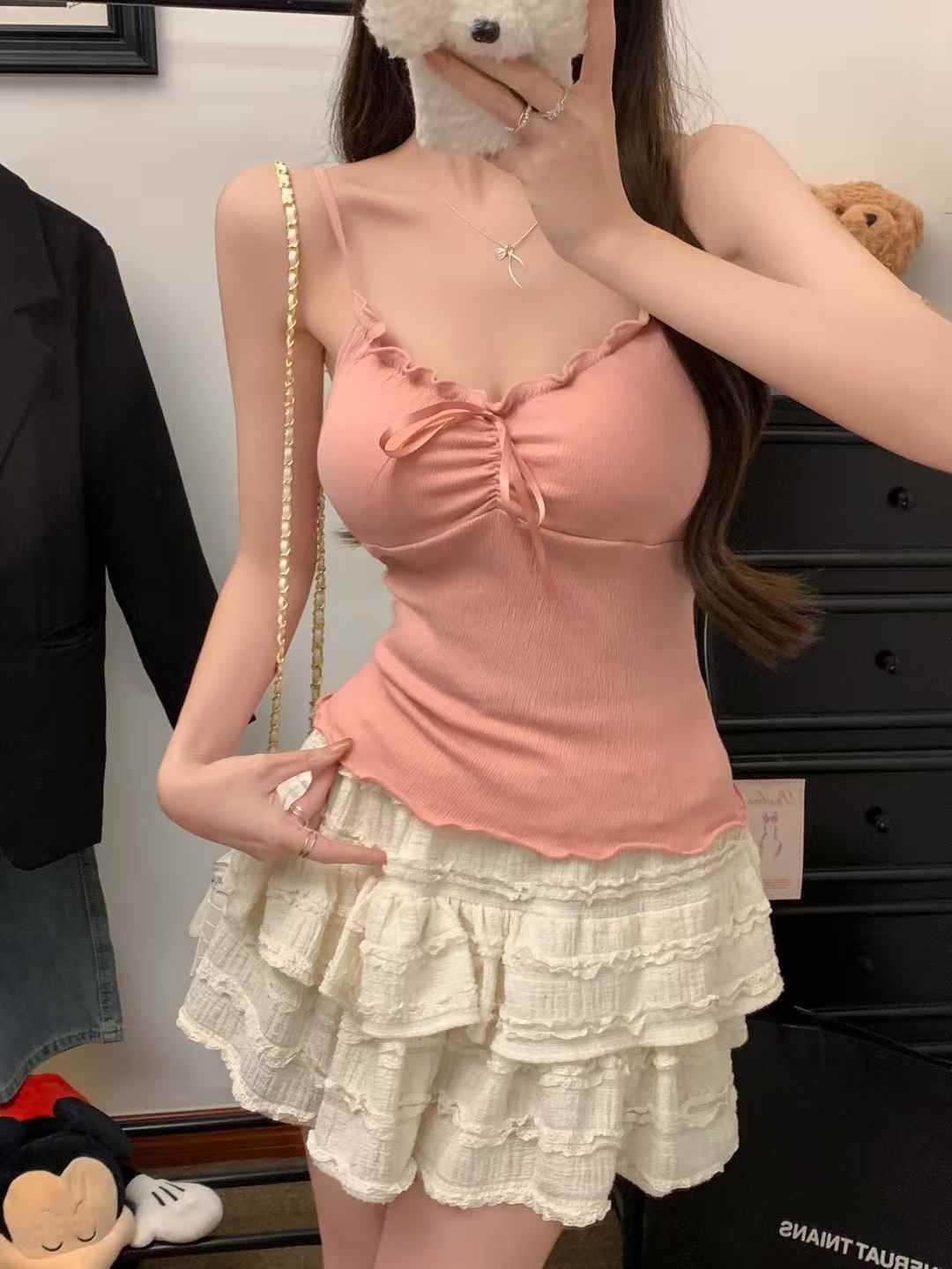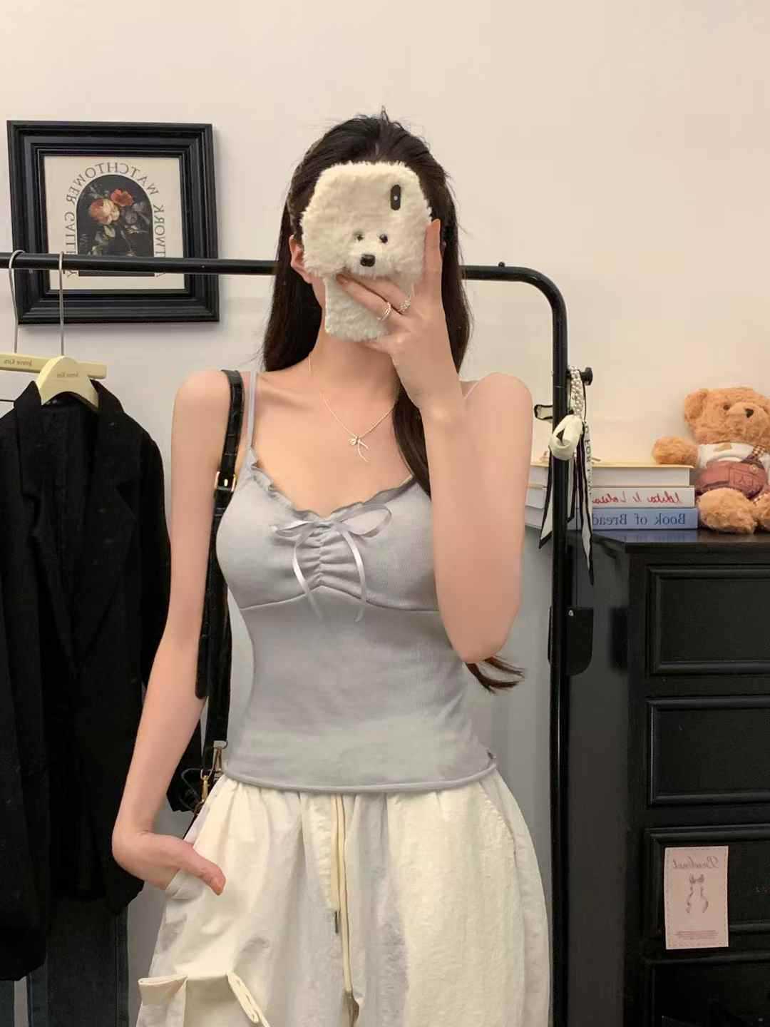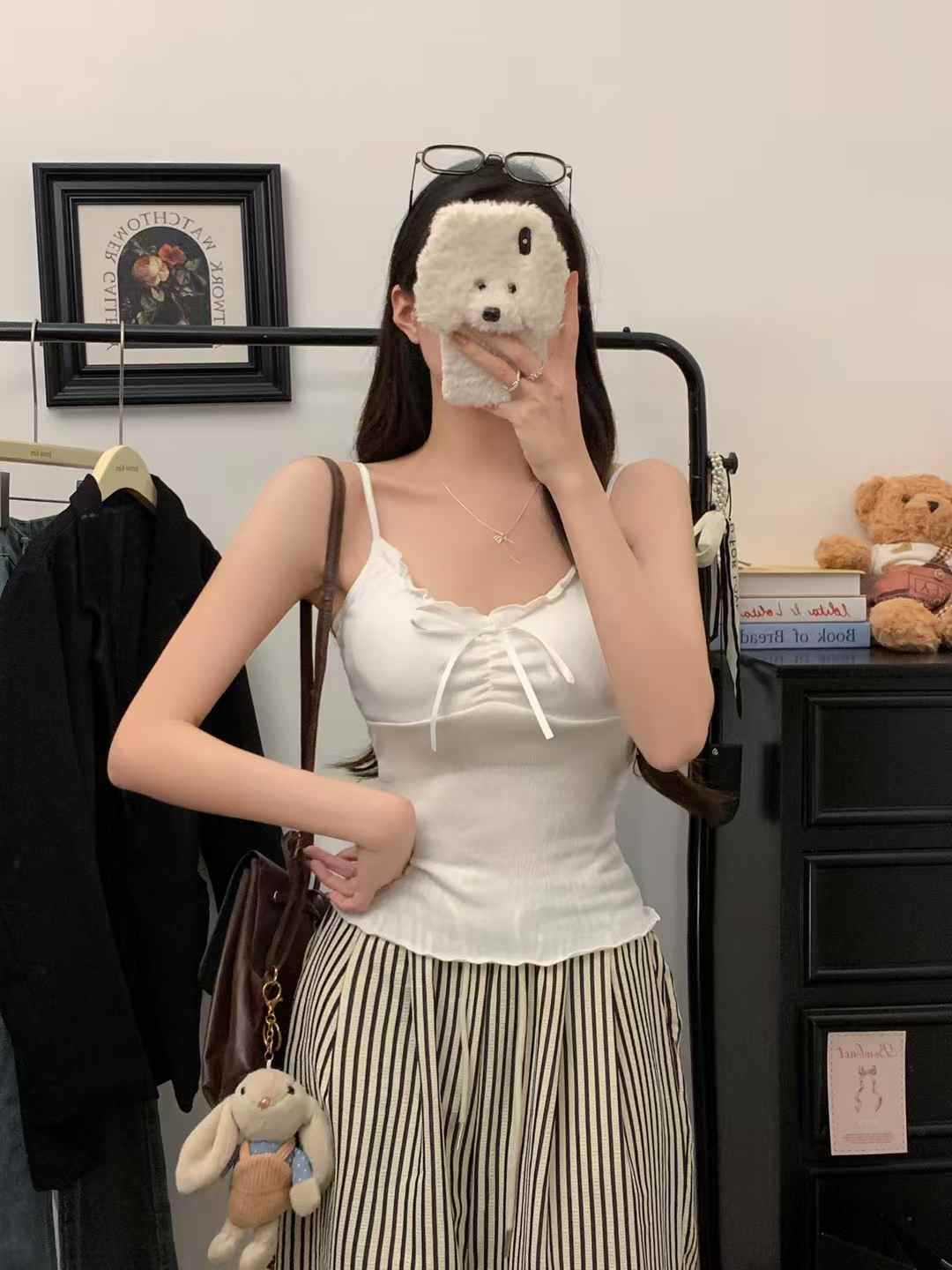 【纯欲天花板❗️蝴蝶结吊带背心】木耳边领口 + 胸前蝴蝶结设计,温柔又性感,轻松拿捏甜欲少女感,显瘦收腰完美勾勒腰腹线条,视觉上显瘦又显高,小背心女修身内衣百搭抹胸美背L
