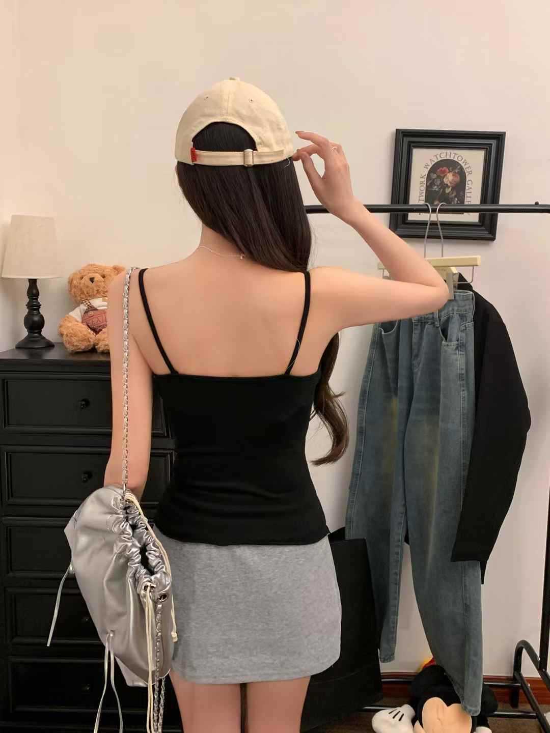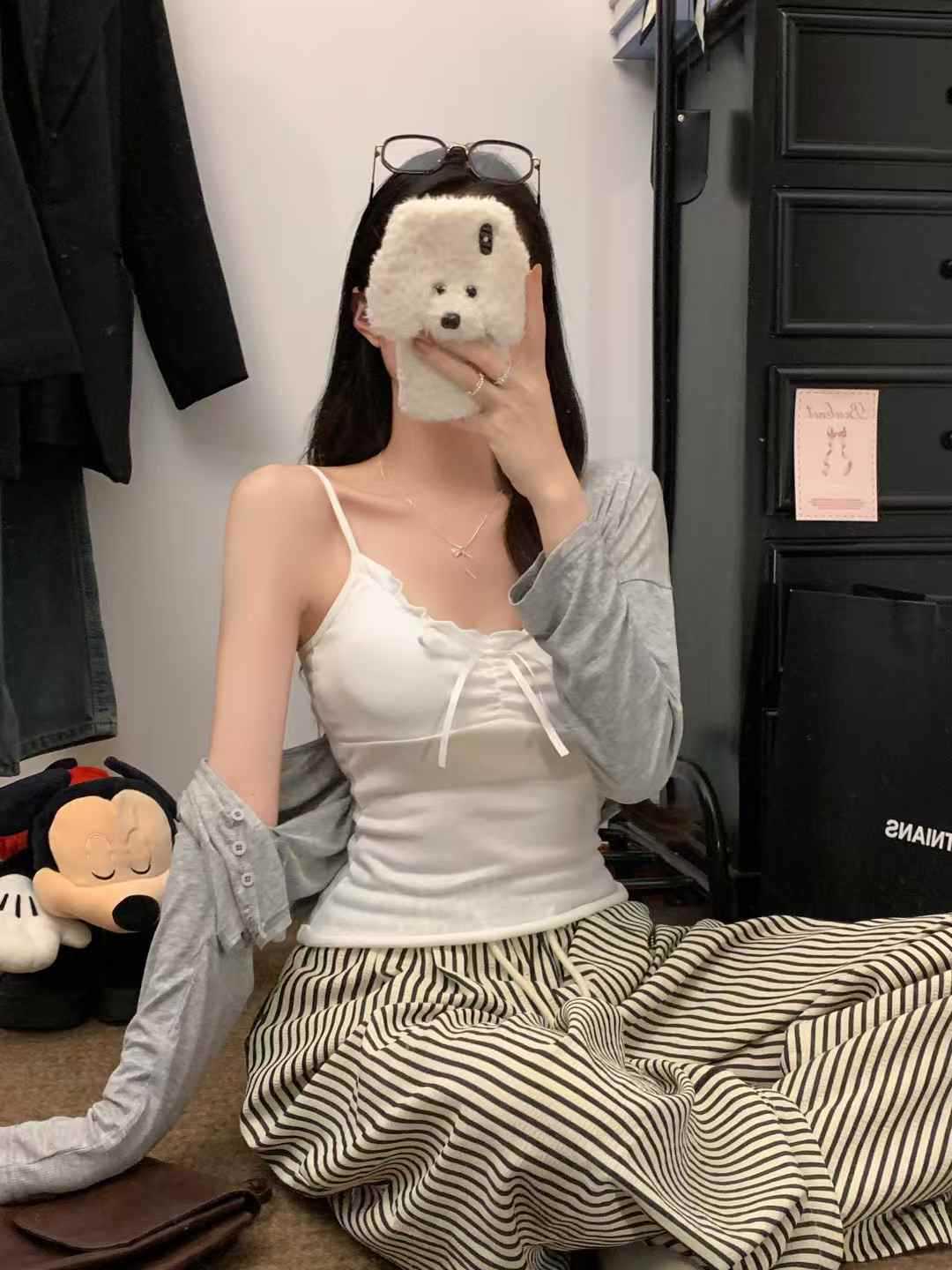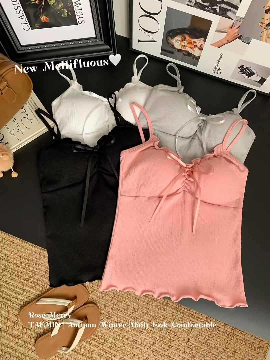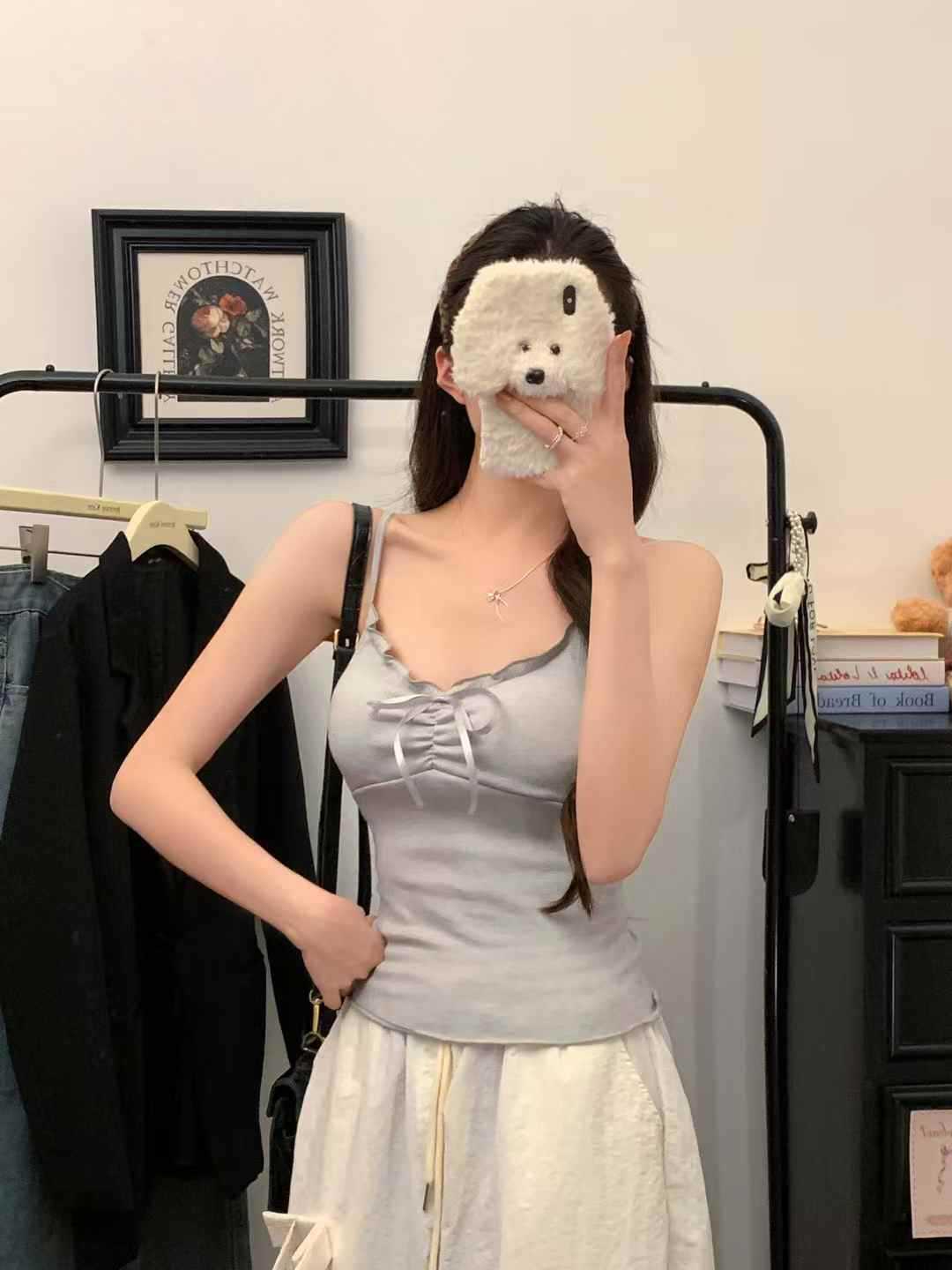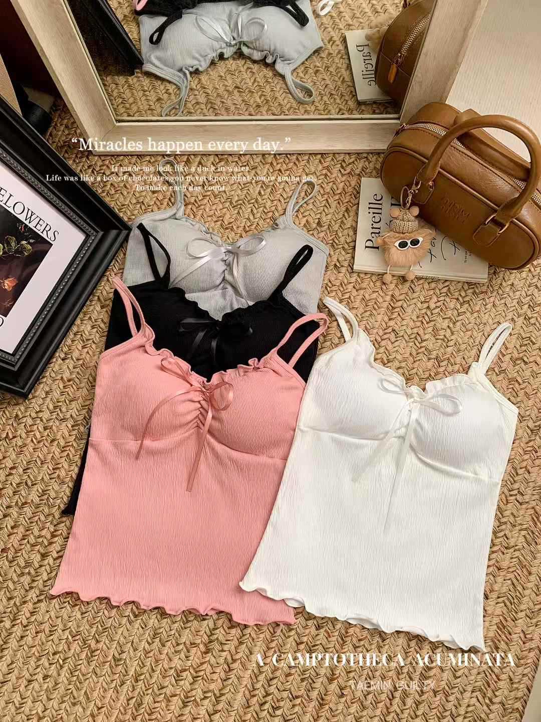 【纯欲天花板❗️蝴蝶结吊带背心】木耳边领口 + 胸前蝴蝶结设计,温柔又性感,轻松拿捏甜欲少女感,显瘦收腰完美勾勒腰腹线条,视觉上显瘦又显高,小背心女修身内衣百搭抹胸美背L